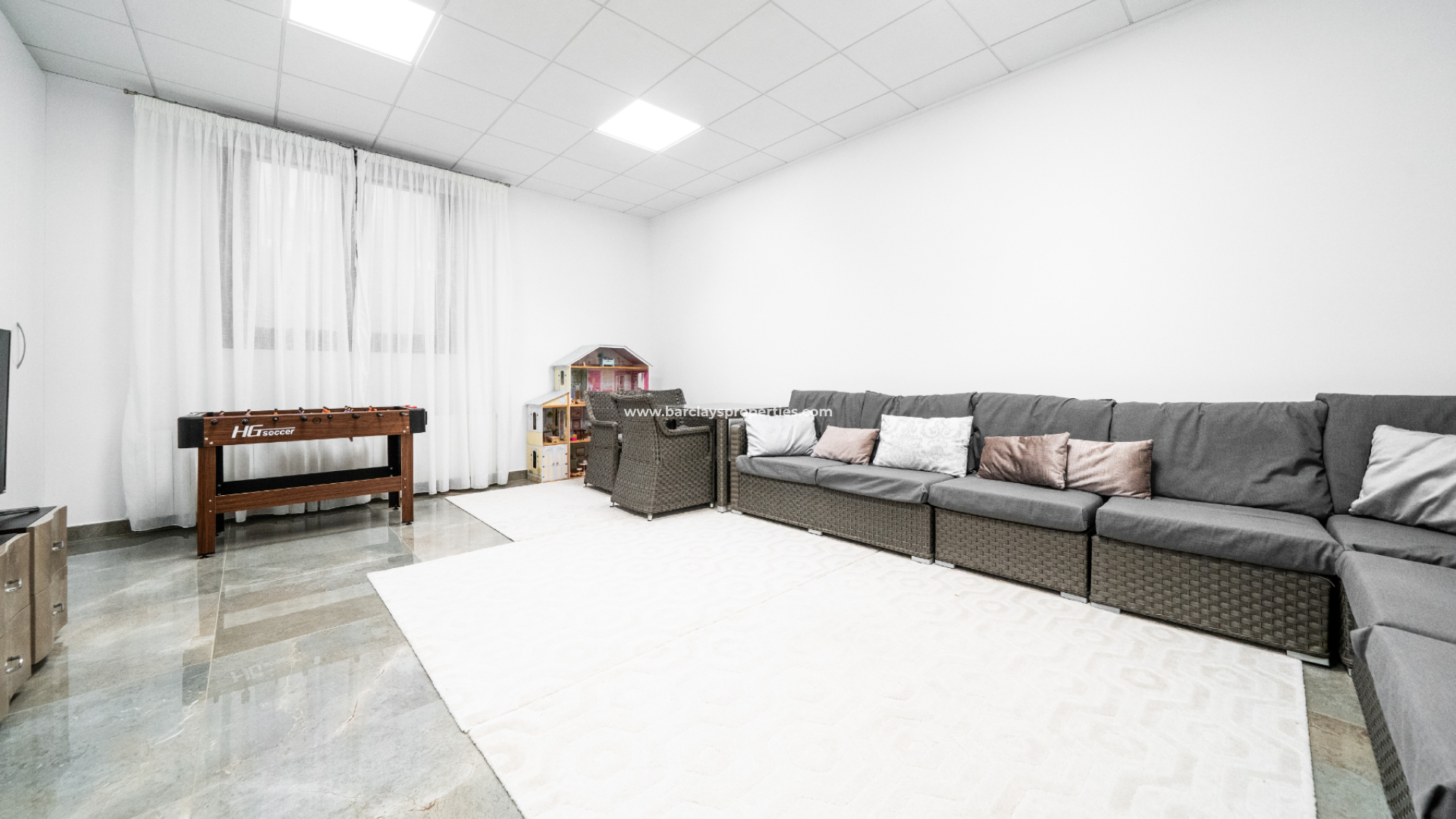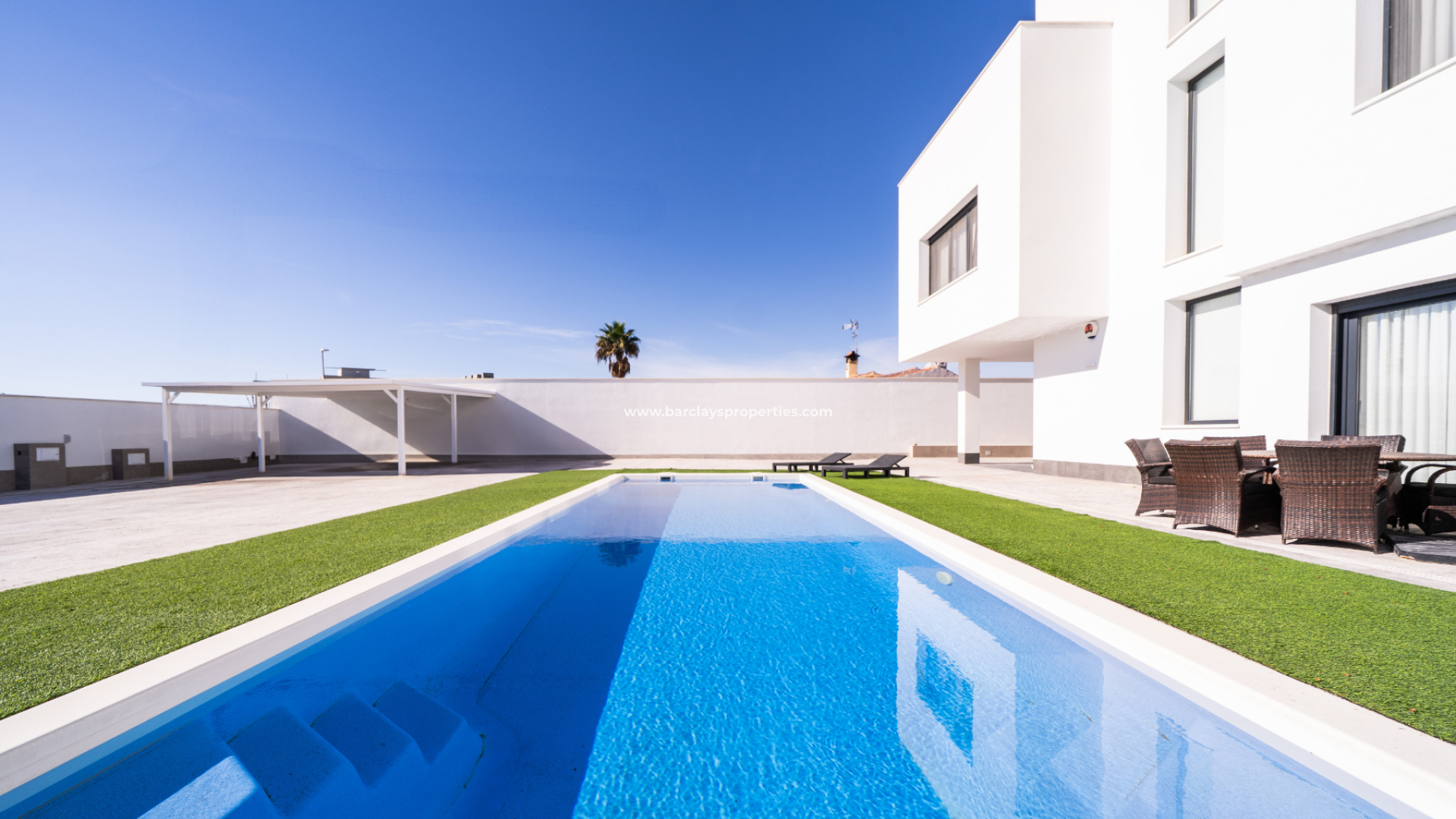 Diese eindrucksvolle, zeitgenössische Villa in der Urbanisation La Escuera, San Fulgencio, bietet die perfekte Kombination aus modernem Design, Großzügigkeit und Wohnkomfort – nur drei Autominuten vom Strand von La Marina und 25 Minuten vom Flughafen Alicante-Elche entfernt. ✅Erbaut im Jahr 2021 auf einem 826m² großen Grundstück, verfügt sie über eine beeindruckende Wohnfläche von 404m² sowie einen 10 x 4,25 Meter großen Swimmingpool, der von pflegeleichtem Kunstrasen umgeben ist – ideal zum Entspannen und für gesellige Stunden im Freien.
