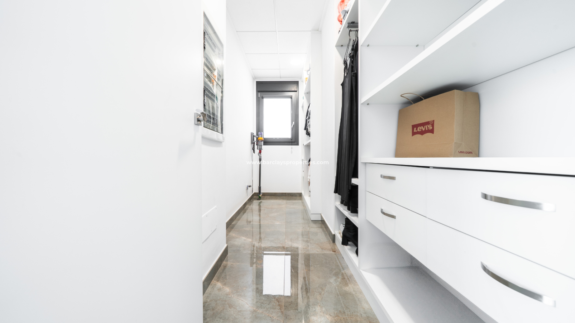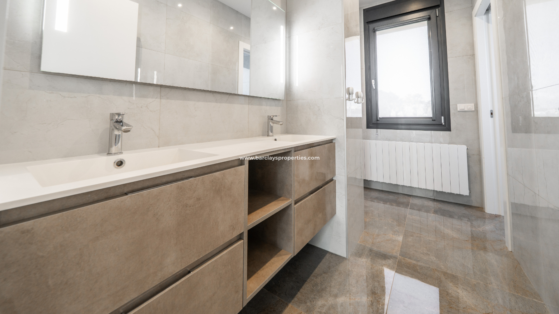 Ein zweites großes Doppelschlafzimmer mit Einbauschränken und Klimaanlage liegt in unmittelbarer Nähe. Das Hauptbadezimmer auf dieser Etage bietet einen Doppelwaschtisch, eine vollwertige Badewanne und ein separates WC.