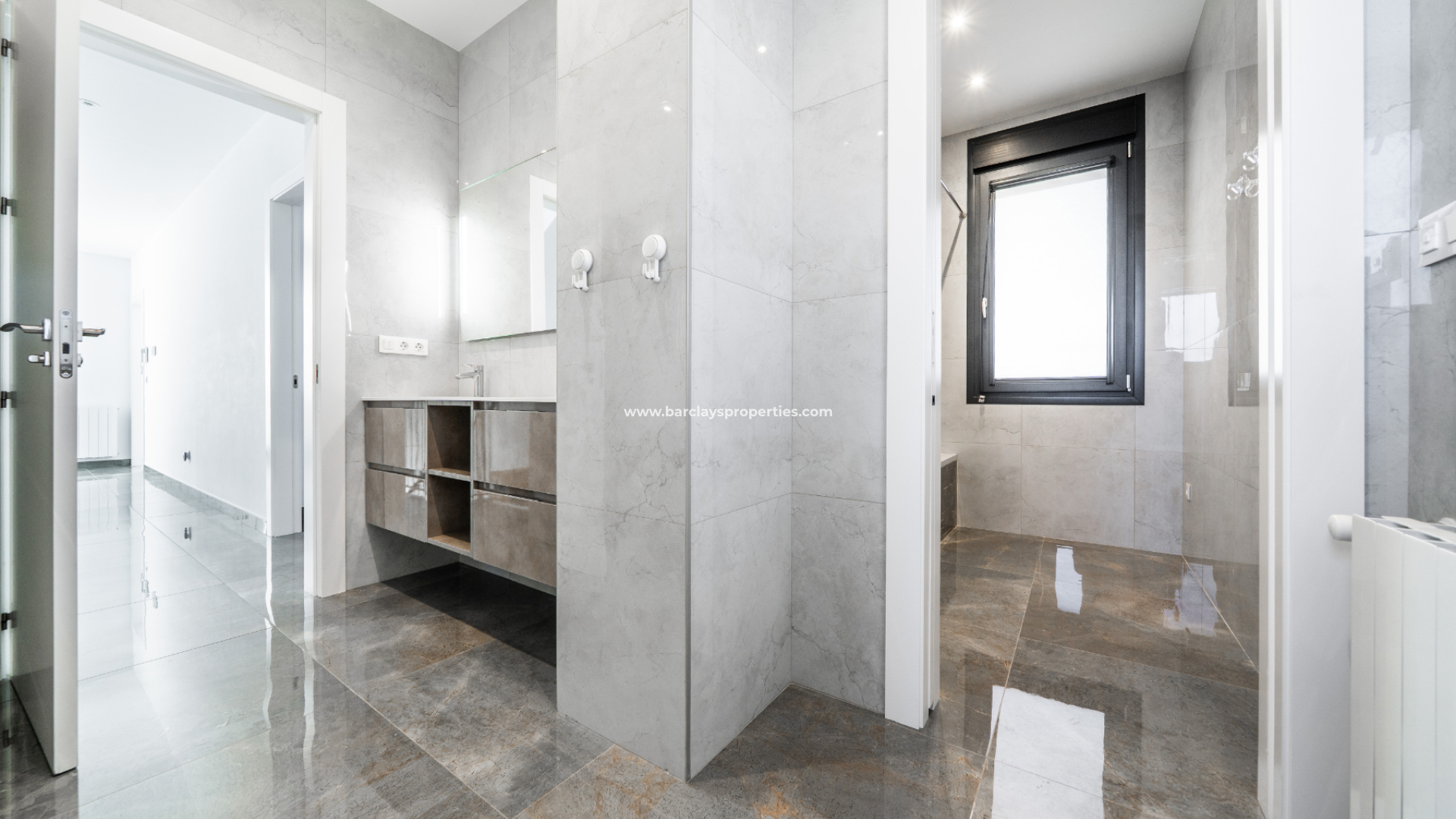 Die Master-Suite ist ein echtes Highlight: Sie verfügt über insgesamt zehn Einbauschränke, Klimaanlage sowie ein großes En-Suite-Badezimmer mit Walk-in-Dusche, Waschtisch und WC.