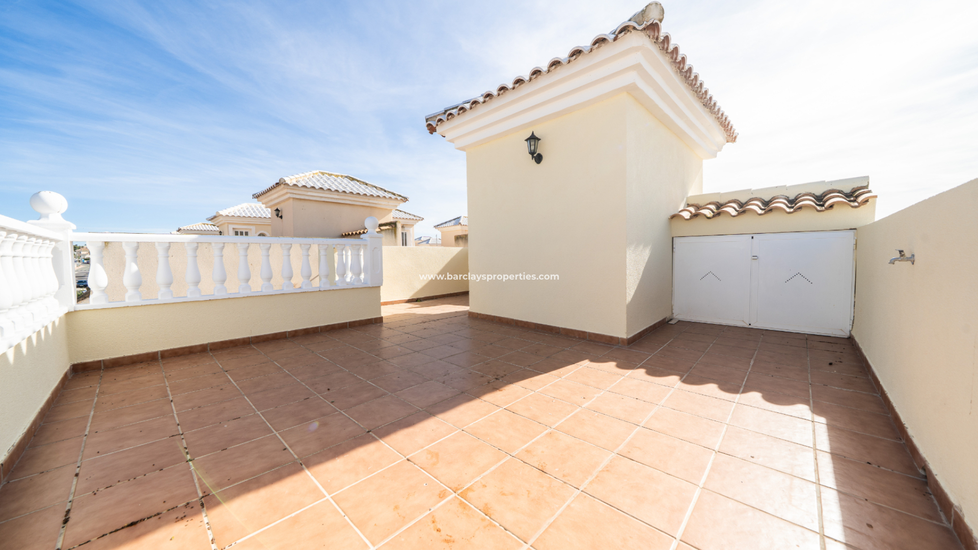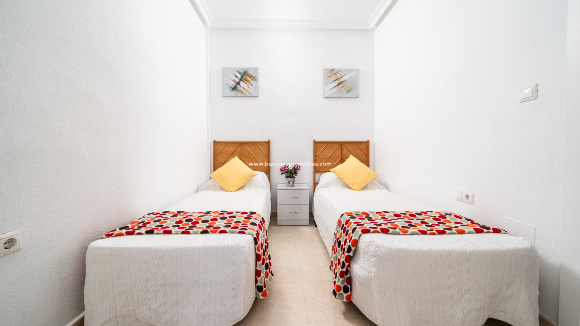 Im Obergeschoss befinden sich zwei weitere Schlafzimmer, jedes mit Zugang zu einem privaten Balkon, sowie ein zweites Badezimmer. Die Lage der Villa bietet viel Morgensonne und eine lichtdurchflutete Atmosphäre den ganzen Tag über. Die Bewohner profitieren von einem wunderschön gepflegten Gemeinschaftspool, der sich perfekt zum Entspannen oder Verbringen von Zeit mit Familie und Freunden in den wärmeren Monaten eignet. Diese Immobilie kombiniert eine friedliche Umgebung mit ausgezeichnetem Zugang zu Annehmlichkeiten und stellt auch eine fantastische Gelegenheit für eine Mietinvestition dar.