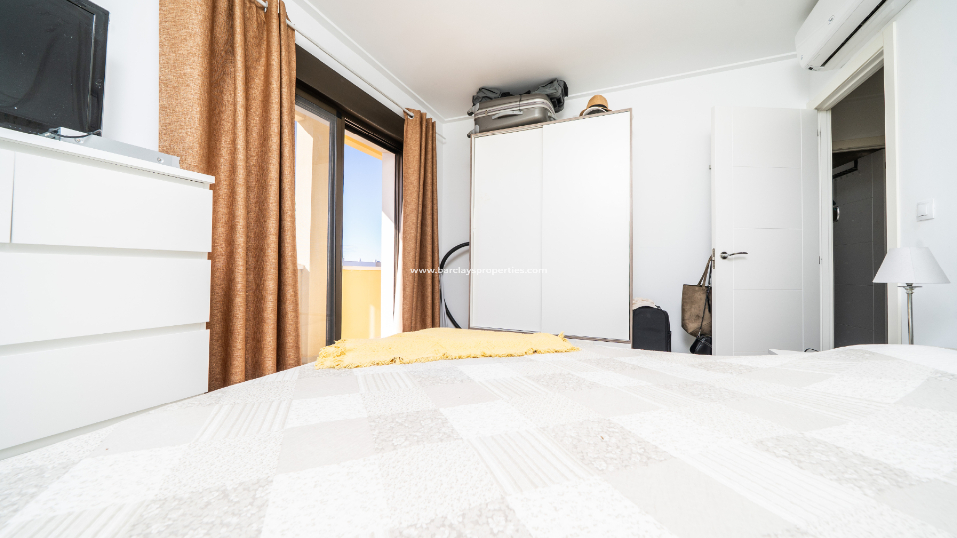 Dieses erweiterte "Fina"-Mittelreihenhaus in La Marina bietet ➡️ eine helle, nach Süden ausgerichtete Raumaufteilung mit einem durchgehend komfortablen und modernen Gefühl. Das Anwesen wurde renoviert und umfasst zwei neue Badezimmer, eine neue Küche und Klimaanlage in jedem Zimmer. Doppelt verglaste Fenster lassen viel natürliches Licht herein und machen den Innenraum leise und energieeffizient. Die Lage ist zentral und dennoch ruhig, mit Annehmlichkeiten nur fünf Gehminuten entfernt.
