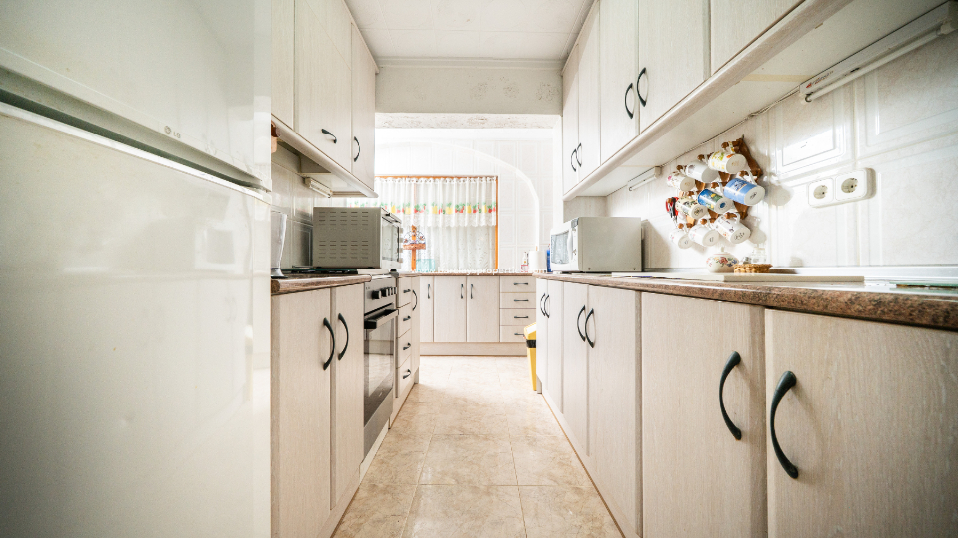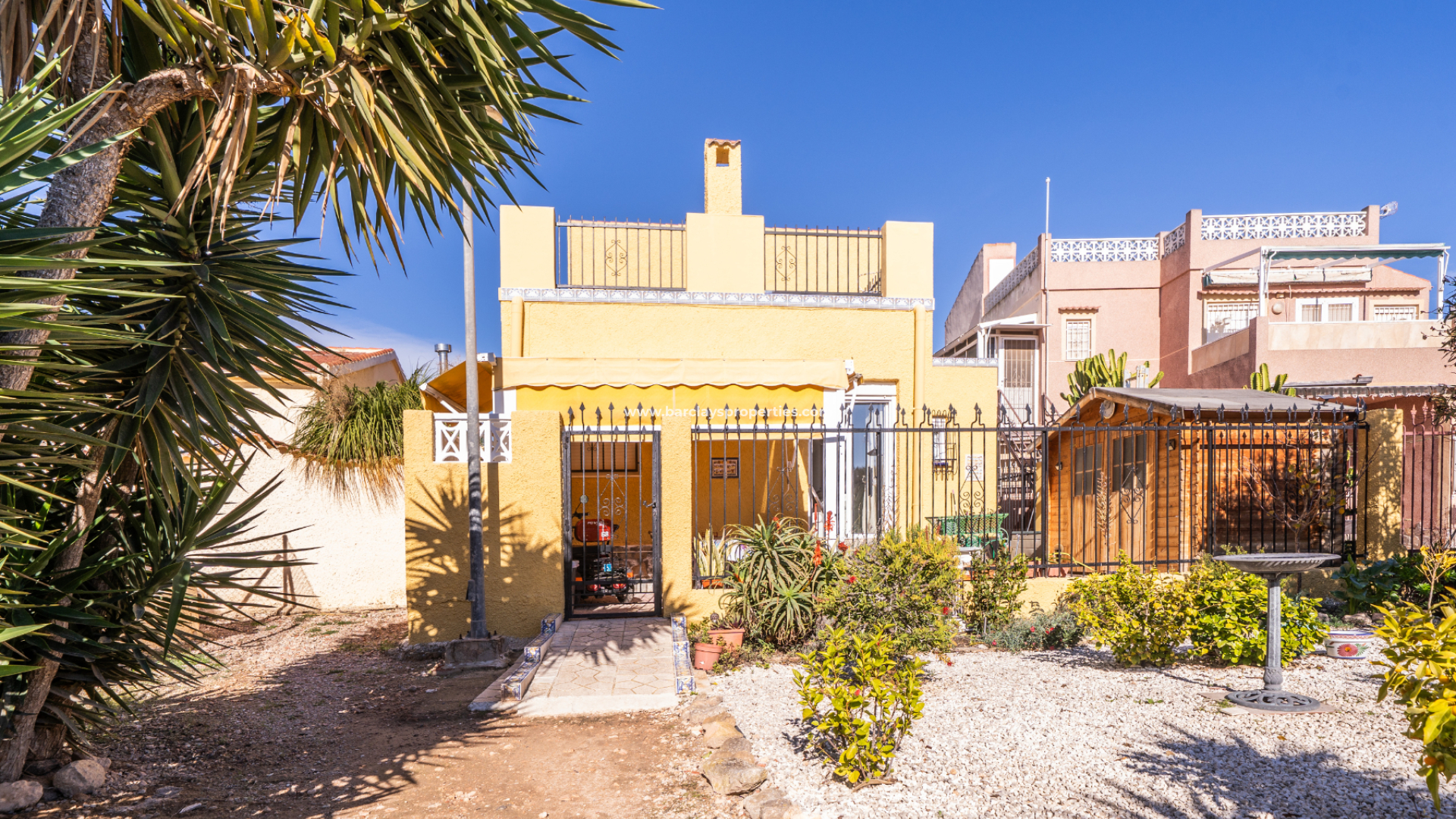 Der Außenbereich bietet geflieste, pflegeleichte Gärten, einen privaten Stellplatz mit Carport, einen Außenabstellraum sowie Markisen für schattige Außenbereiche. Die Solarpaneele helfen, die laufenden Kosten zu reduzieren, während hohe Mauern und ein elektrisches Tor für Privatsphäre sorgen. Der Blick auf die Landschaft und die Berge rundet das Angebot ab – alles gelegen in der beliebten Urbanisation La Marina, ideal als Dauerwohnsitz, Feriendomizil oder als Kapitalanlage zur Vermietung.