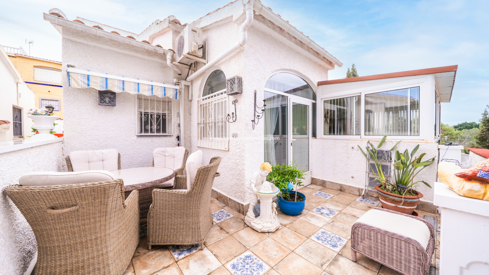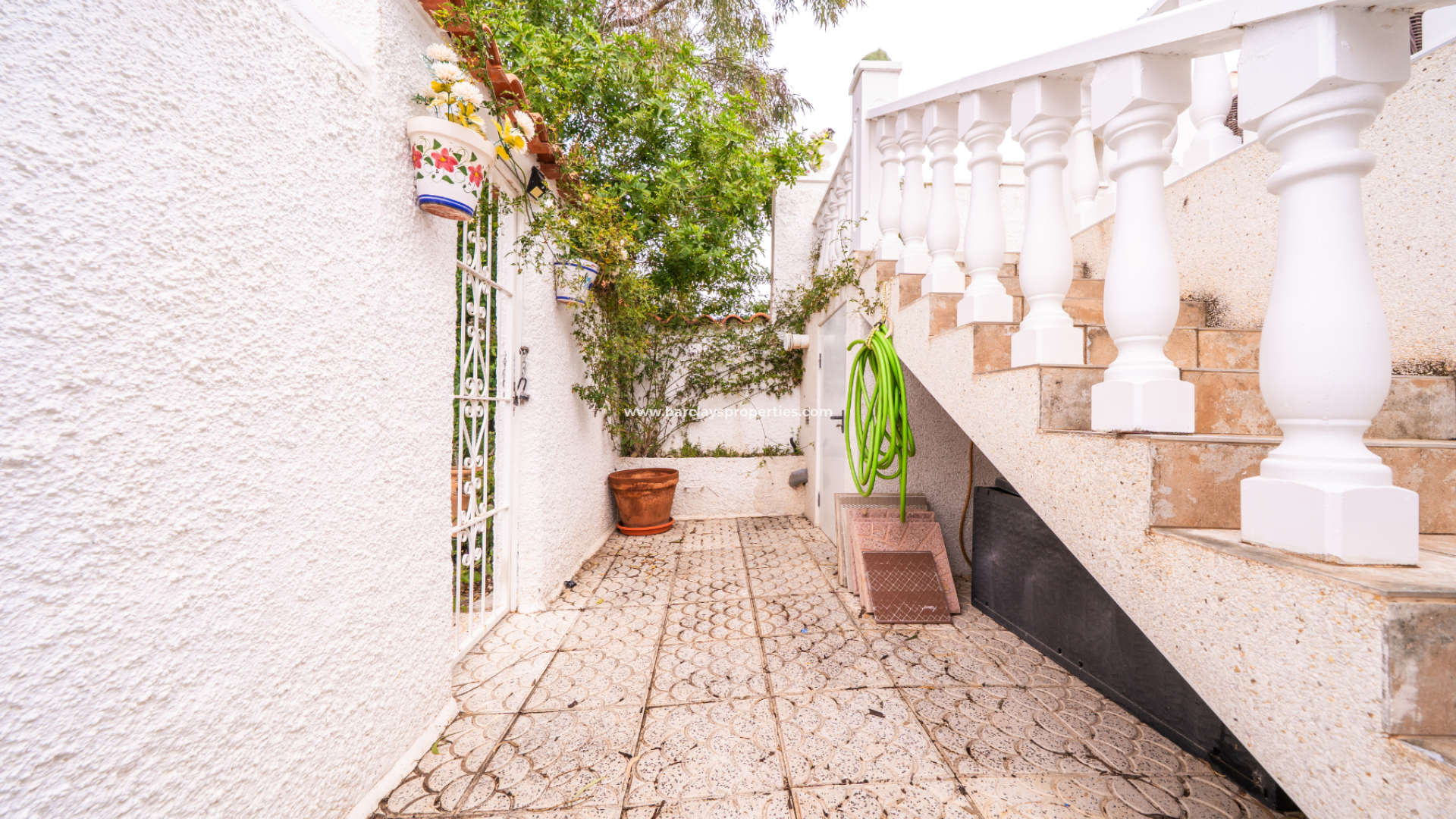 Im Außenbereich profitiert das Anwesen von einem privaten Swimmingpool, ideal zum Genießen des spanischen Klimas, sowie einem Barbereich, der einen tollen Raum für Geselligkeit schafft. Auf der Rückseite befindet sich eine erhöhte Sonnenterrasse mit Blick auf die Grünfläche. ➡️ Der Unterbau umfasst einen Hauswirtschaftsraum, der nützlichen Stauraum und zusätzliche Praktikabilität bietet. Zudem finden wir einen vielseitigen Raum, der derzeit als Mini-Fitnessstudio genutzt wird. Dies ist ein gut präsentiertes Haus in begehrter Lage mit flexiblem Wohnraum und hervorragendem Zugang zu örtlichen Annehmlichkeiten.