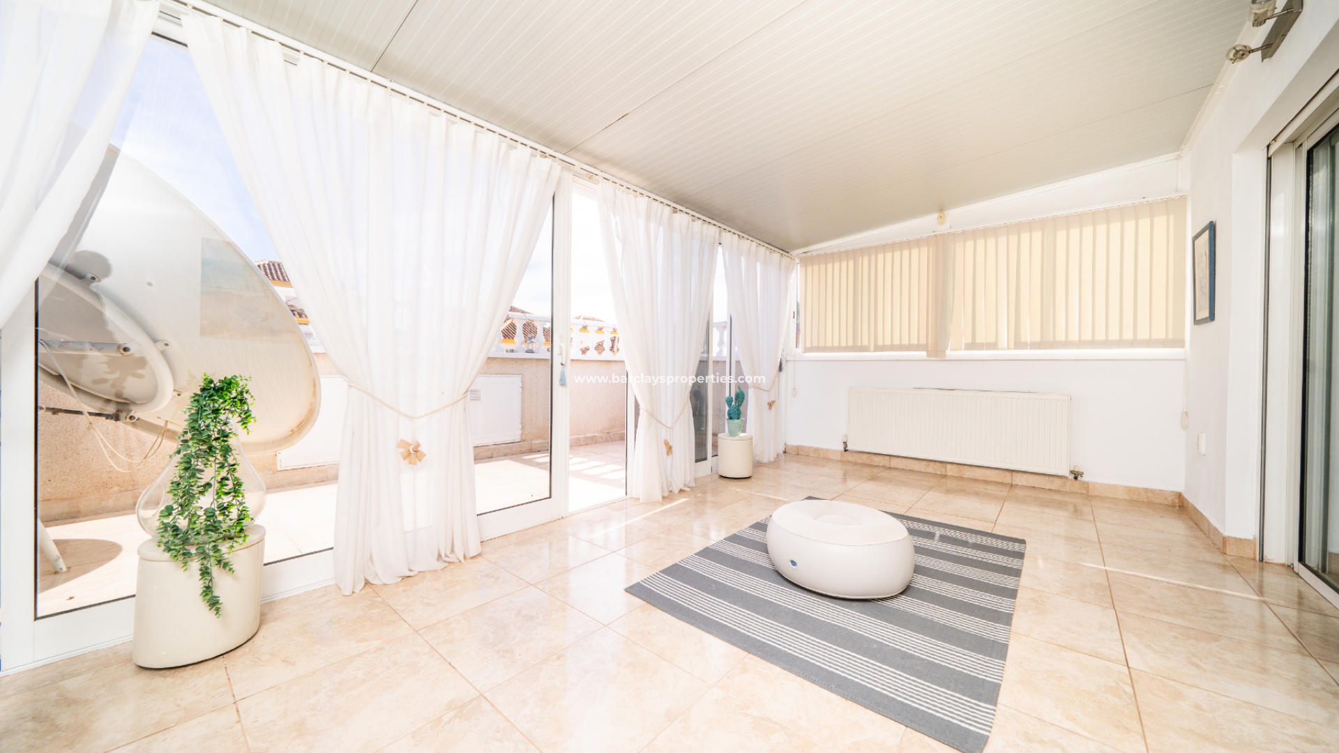 Auf dieser oberen Ebene finden Sie einen verglasten Wintergarten, der zusätzlichen vielseitigen Raum bietet – perfekt als Essbereich, Lounge oder entspannendes Sonnenzimmer.