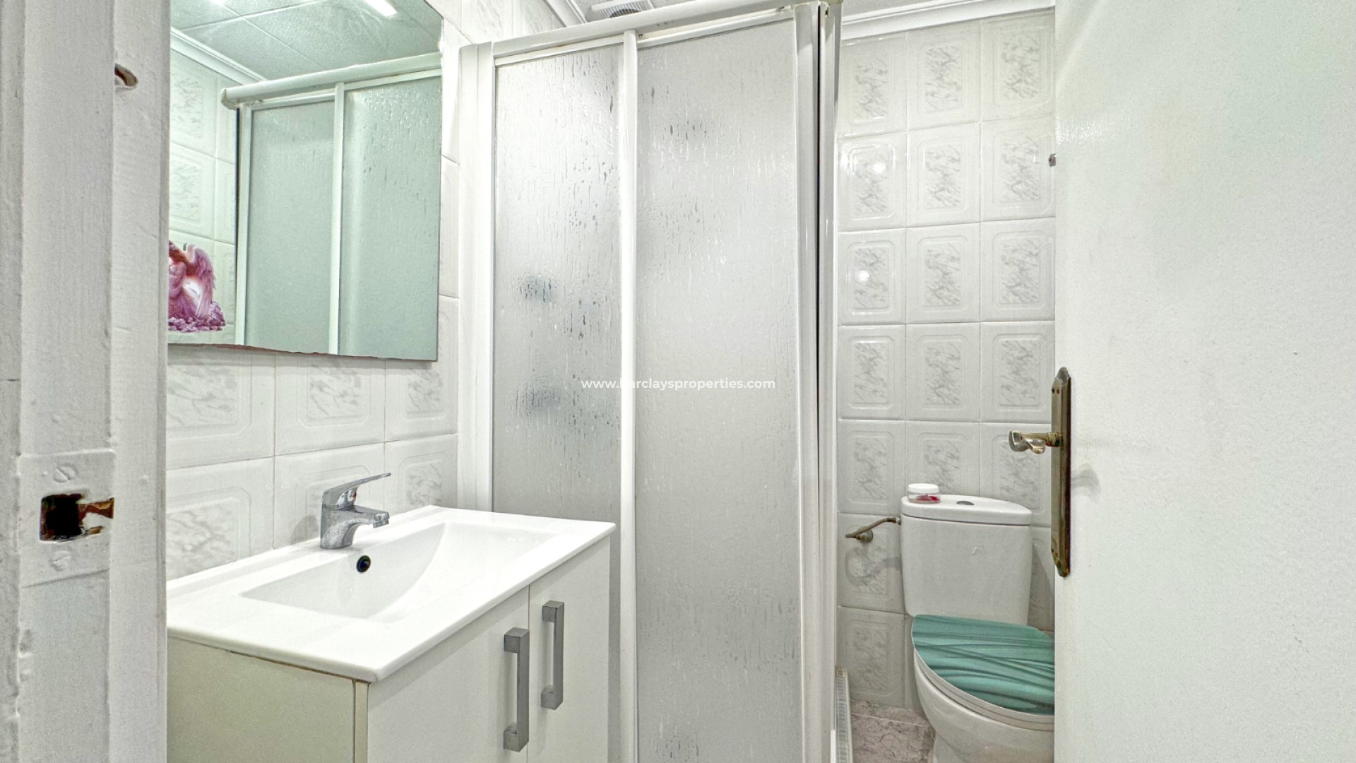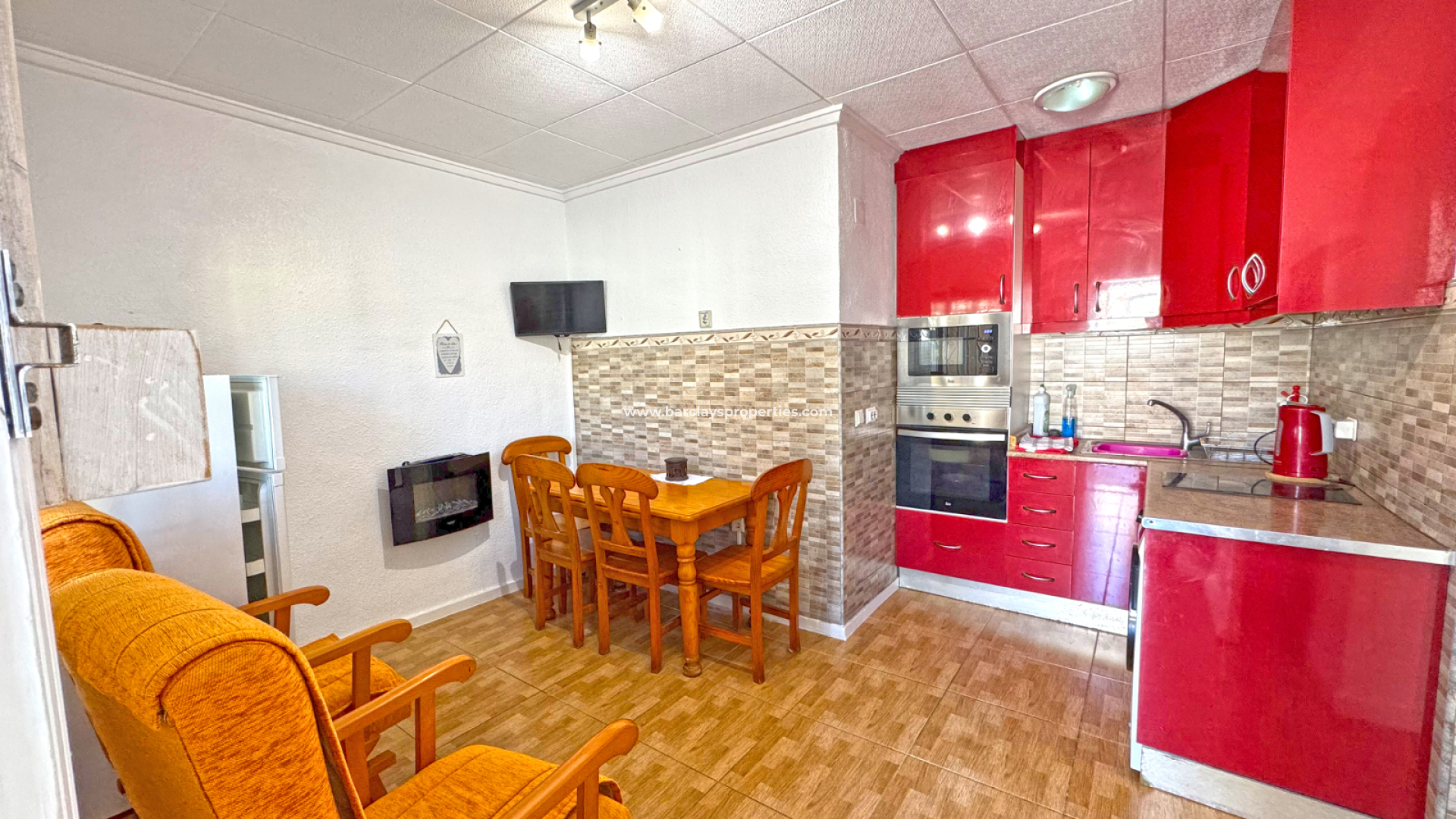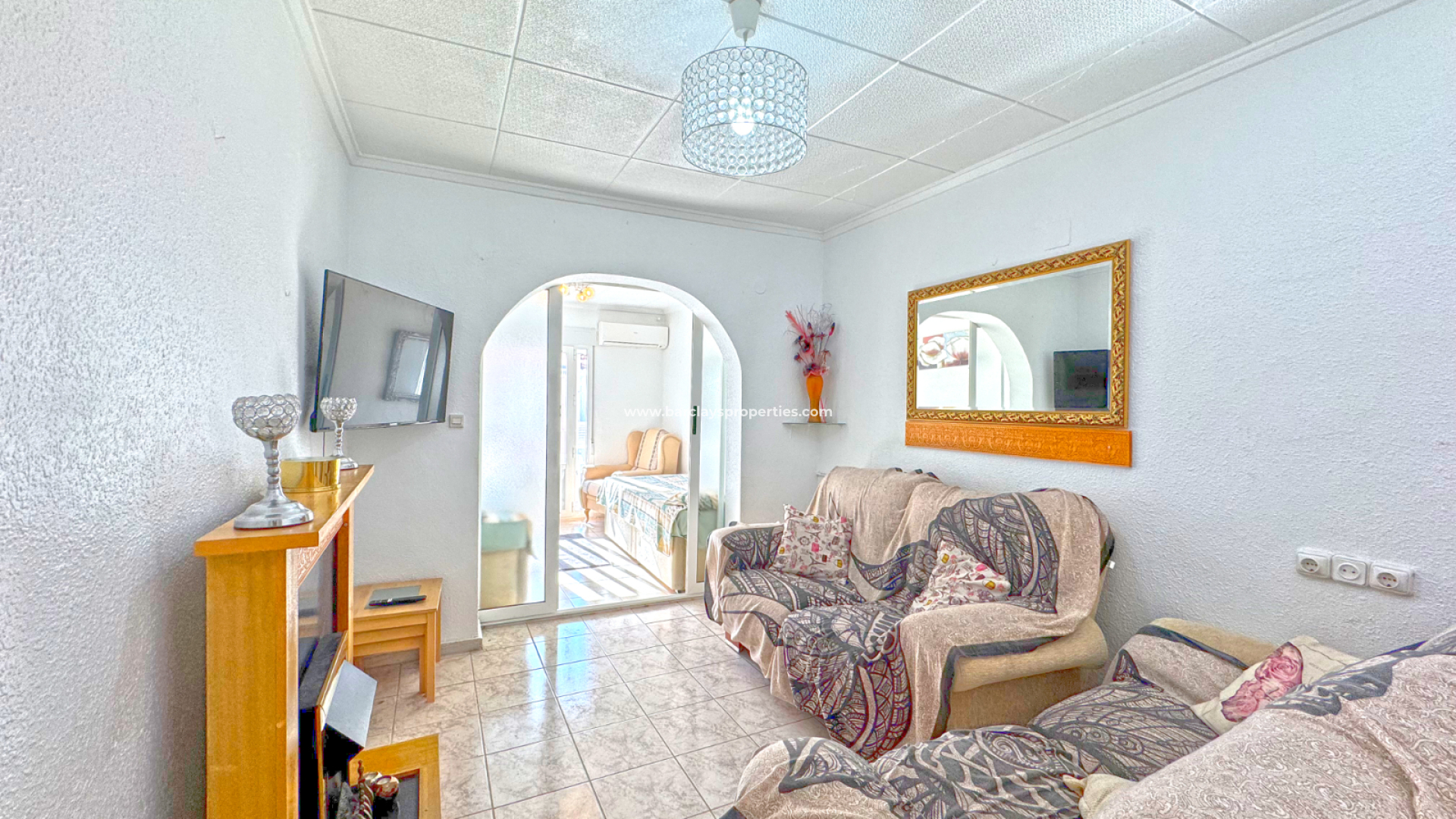 Diese Immobilie präsentiert sich in gutem Zustand mit einer Wohnfläche von 52m2, die sich komplett auf einer Etage befindet und so ein komfortables tägliches Wohnen ermöglicht. Wir betreten die private, geschlossene Terrasse mit Sonnenmarkise und Außen-Sitzbereich, die ins Innere führt. Dort finden wir ein Wohn-/Esszimmer mit einer stilvollen, modernen offenen Küche. Des Weiteren gibt es ein Wohnzimmer, zwei Schlafzimmer mit Klimaanlage sowie ein Badezimmer mit Waschbecken, Toilette und Dusche.
