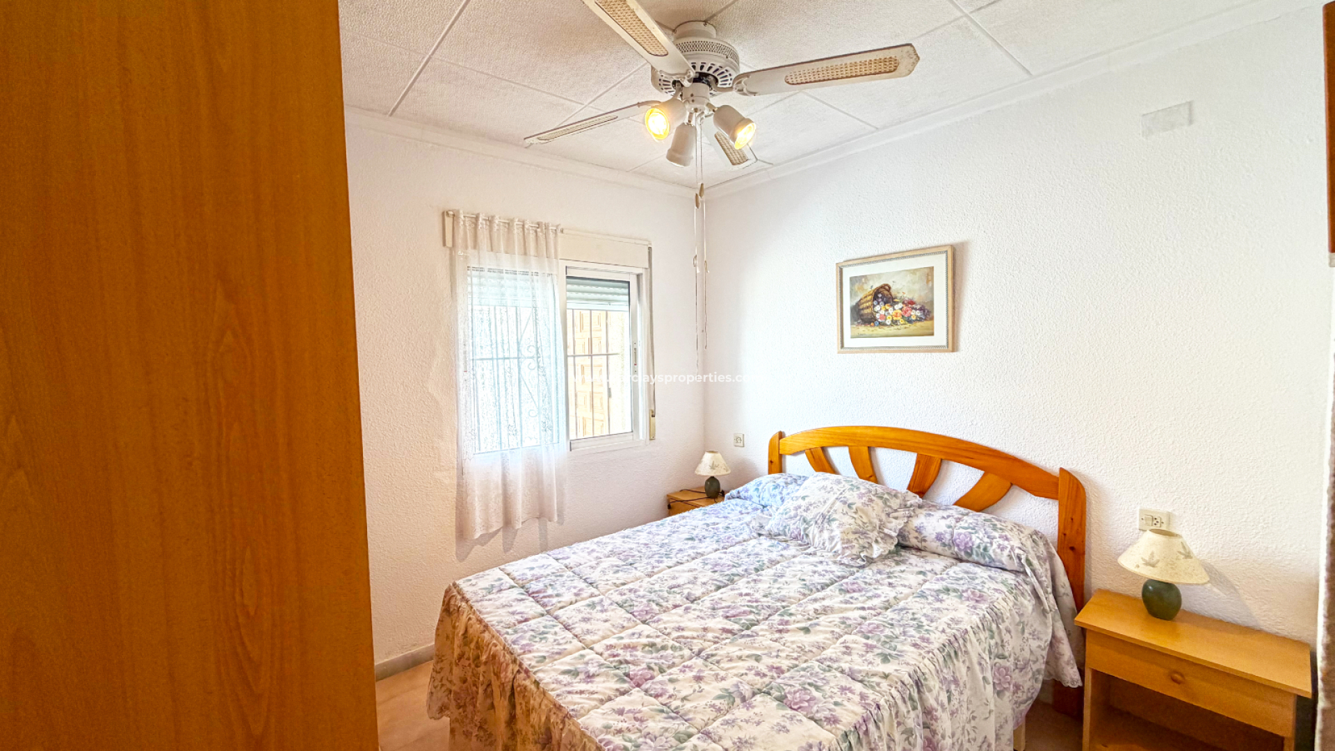 Die Küche ist voll elektrisch und verfügt über eine praktische Frühstücksbar, die einen funktionalen Raum für das Kochen und informelle Mahlzeiten schafft. Es gibt zwei Schlafzimmer, bestehend aus einem Zweibettzimmer und einem Doppelzimmer, beide mit Deckenventilatoren ausgestattet. Das Badezimmer ist mit einer begehbaren Dusche, WC und Waschbecken ausgestattet und auf Benutzerfreundlichkeit ausgelegt.