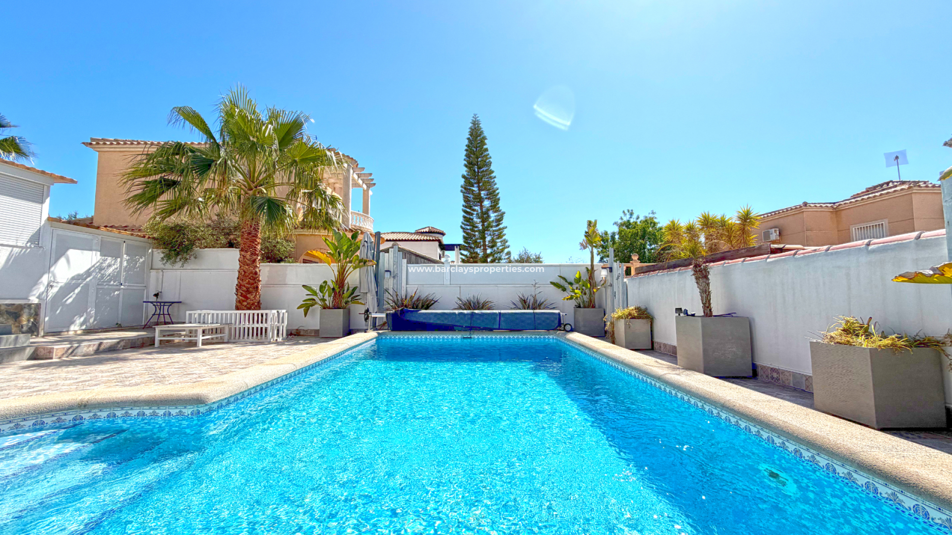 Auf einem großzügigen Grundstück von 506 m² gelegen, verfügt die Immobilie über eine bebaute Fläche von 130 m² und bietet viel Platz im Innen- und Außenbereich. Die Villa umfasst drei gut geschnittene Schlafzimmer und zwei Badezimmer und eignet sich ideal für Familien, Urlauber oder als Investition.