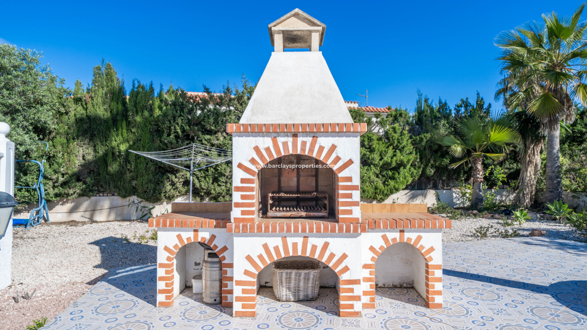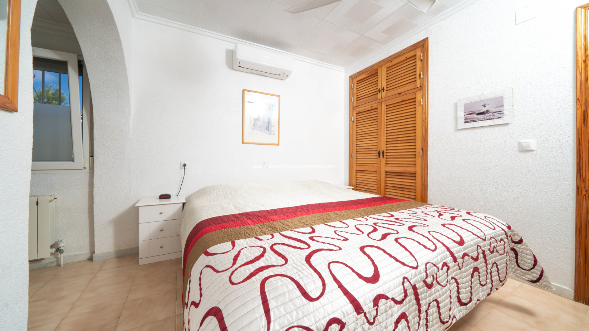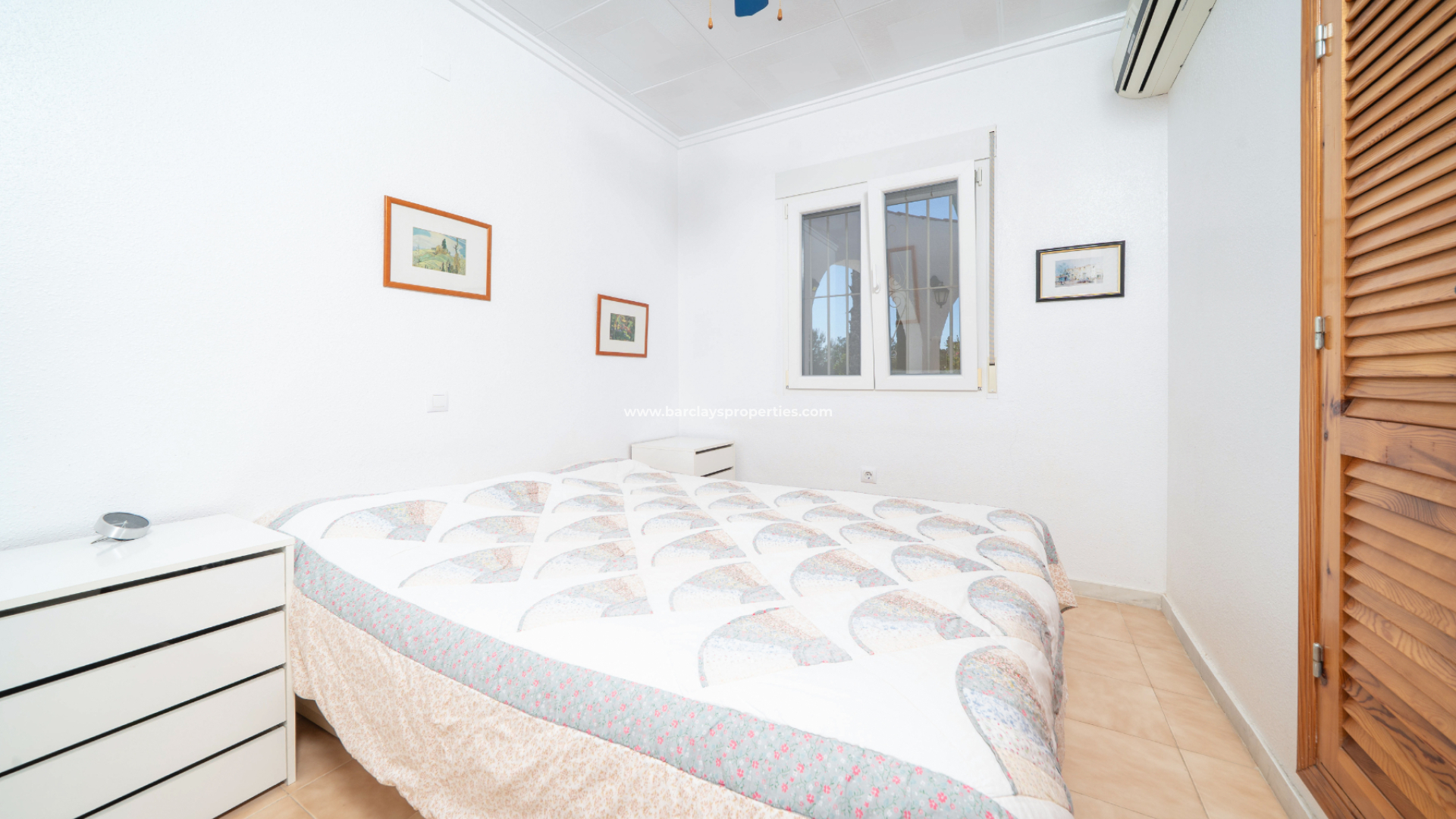 Die Villa verfügt über drei gut proportionierte Doppelzimmer, die alle mit Deckenventilatoren, Klimaanlage und Einbauschränken ausgestattet sind. Das Hauptschlafzimmer ist besonders geräumig und verfügt über einen großen Einbauschrank sowie ein eigenes Badezimmer mit Eckdusche, WC und Waschbecken. Die verbleibenden zwei Doppelzimmer werden von einem modernen Familienbad mit begehbarer Dusche, WC, Waschbecken und praktischem Stauraum bedient.