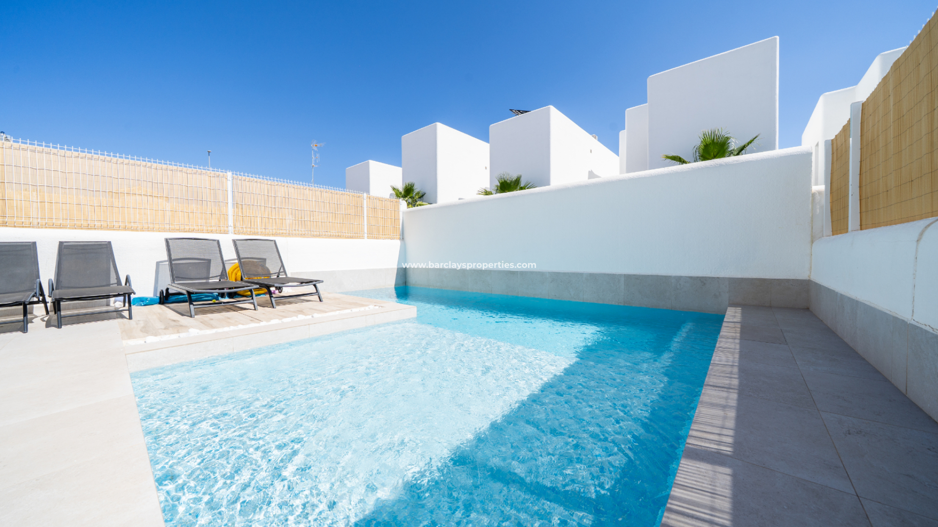 Wir freuen uns, Ihnen diese moderne Neubauvilla des Modells „Mykonos“ in der begehrten Urbanisation El Oasis, San Fulgencio, vorstellen zu dürfen! Einkaufsmöglichkeiten und Dienstleistungen finden Sie in der nahegelegenen Urbanisation La Marina, nur wenige Autominuten entfernt.
