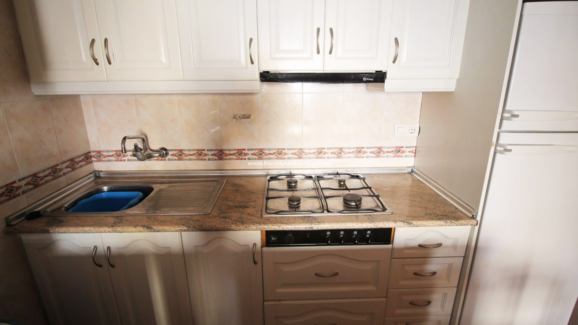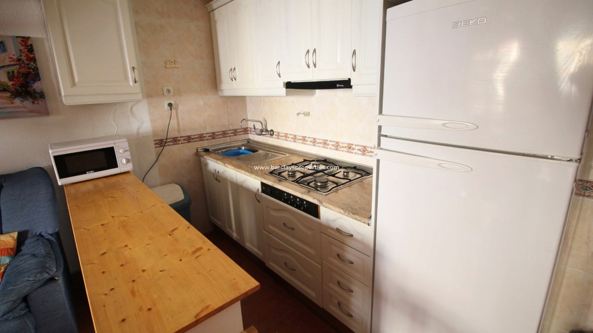 Wir freuen uns, Ihnen dieses nach Osten ausgerichtete Reihenhaus, ein Modell "Evita", das in zentraler und dennoch sehr ruhiger Lage der beliebten Urbanisation La Marina zum Verkauf steht, präsentieren zu können. Das nationale Straßennetz, das nach Valencia im Norden und Cartagena im Süden führt, ist nur wenige Autominuten entfernt.