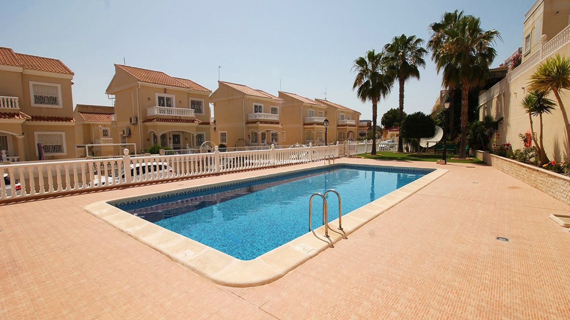 Der Garten ist gepflastert und wartungsarm und bietet Parkplätze abseits der Straße, einen Außenhahn mit Schlauch und Sitzbereiche, in denen man das spanische Klima genießen kann.