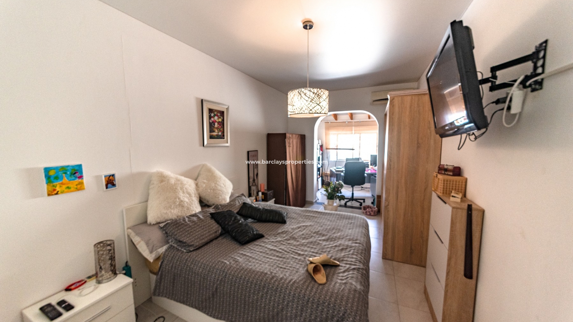 Diese makellos eingerichtete Unterkunft wurde renoviert und befindet sich in ausgezeichnetem Zustand. Der Eingang erfolgt über eine gepflasterte Terrasse mit hohen Wänden für zusätzliche Privatsphäre, Stauraum und einen Sitzbereich, um das spanische Wetter das ganze Jahr über zu genießen. Von der Terrasse aus betreten wir das helle und moderne Wohnzimmer mit einer neuen angrenzenden Küche, einem Hauptschlafzimmer mit kleinem Büro, einem renovierten Badezimmer mit begehbarer Wand-zu-Wand-Dusche und einem zweiten Schlafzimmer.