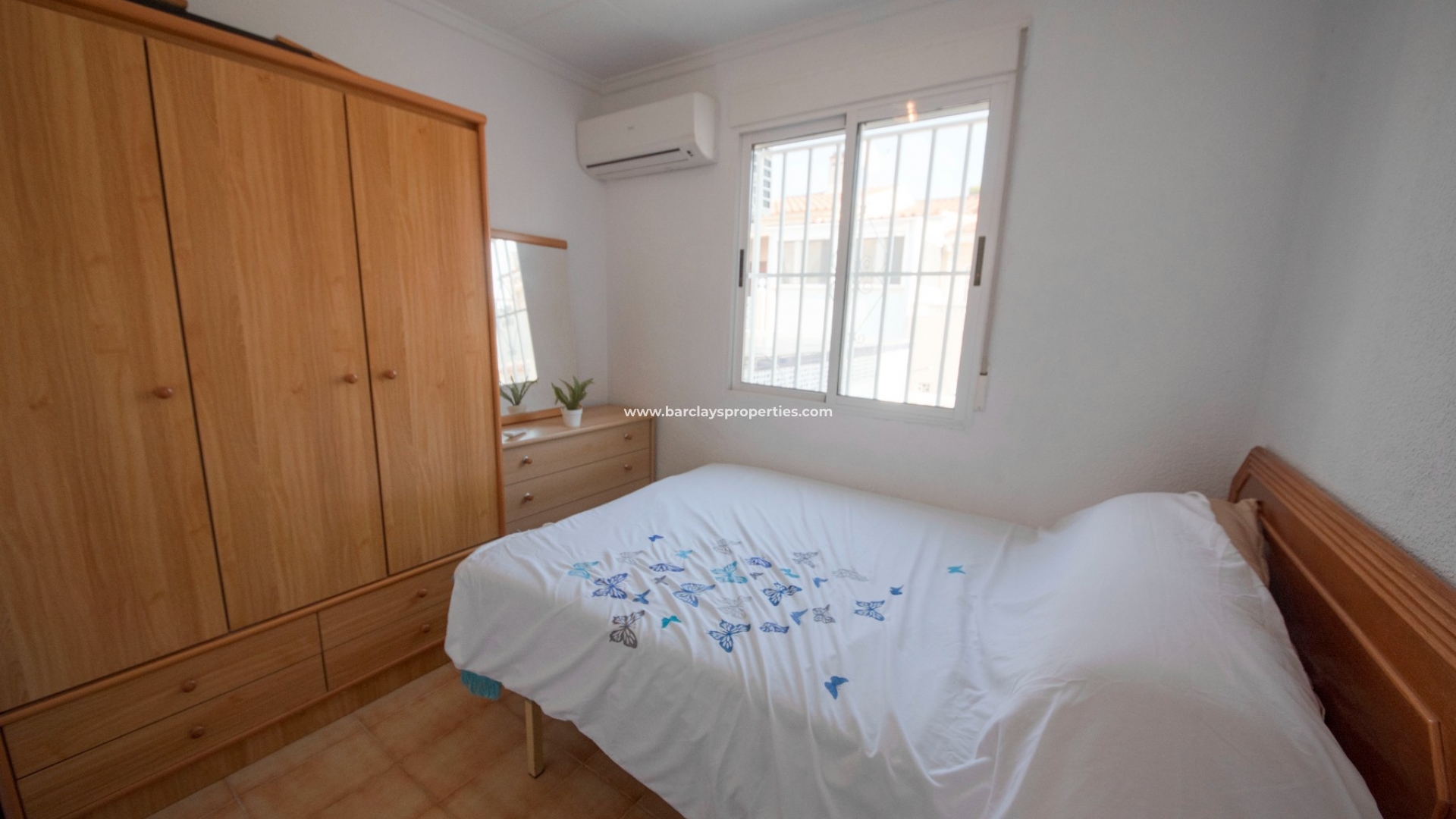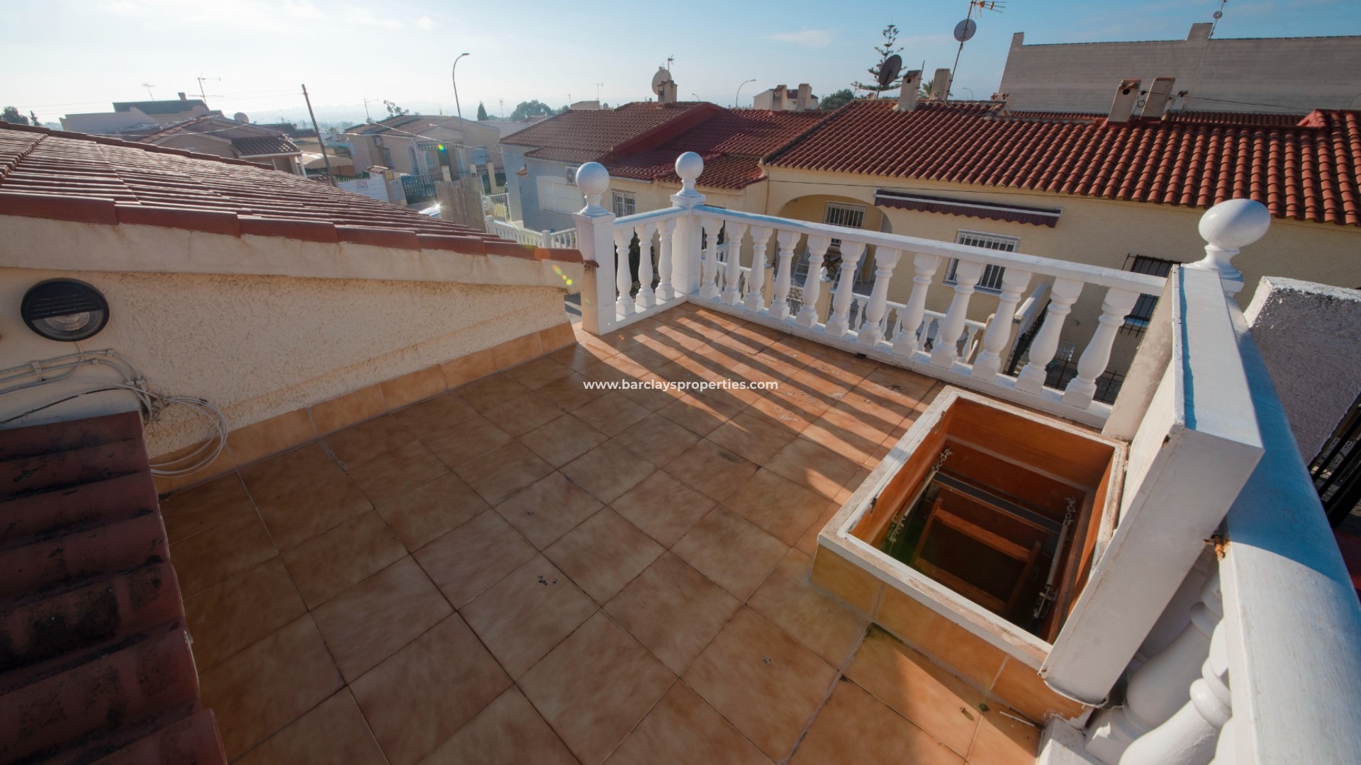 Der Zugang zum Anwesen erfolgt durch ein Fußgängertor, das zur vorderen Terrasse führt, die Stauraum und Platz für einen Sitz- oder Essbereich im Freien bietet, um die warmen sonnigen Tage und Abende zu genießen, die wir in der Region Vega Baja in der Provinz Alicante genießen. Wir werden von dem hellen und luftigen Wohnzimmer begrüßt, das erweitert wurde und neue Bodenfliesen mit offener neu ausgestatteter Küche hat, ein Doppelzimmer mit Klimaanlage, ein Badezimmer mit Eckdusche, ein zweites Doppelzimmer, das zu einem dritten Schlafzimmer mit Terrasse führt Türen zu einer hinteren Terrasse. Das Solarium ist von diesem Schlafzimmer aus über eine Innentreppe im Dachgeschoss-Stil zugänglich.