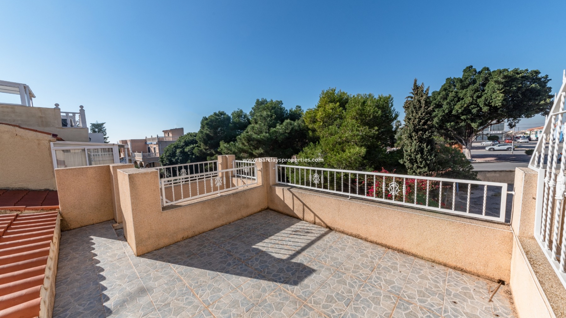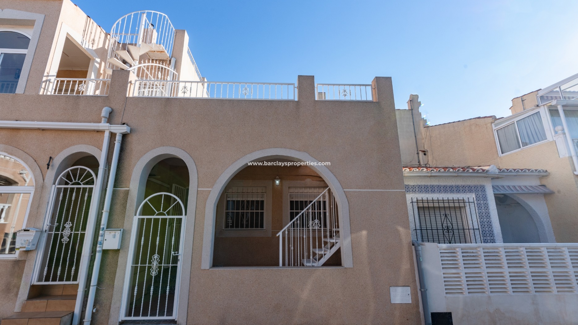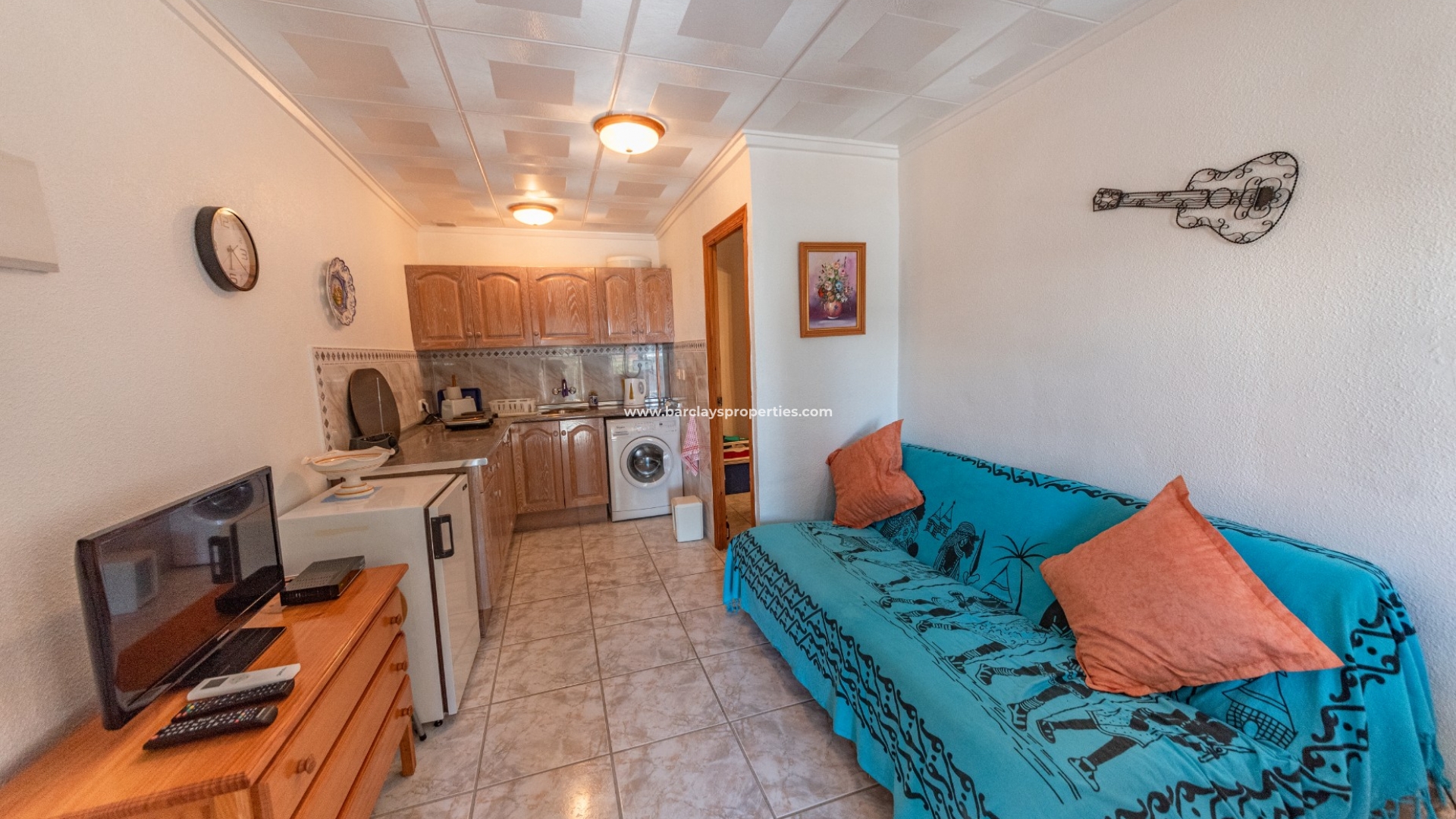 Diese hübsche und renovierte Immobilie befindet sich direkt vor einer grünen Parkanlage. Man betritt das Haus über eine überdachte Sonnenterrasse an der Vorderseite und kommt direkt in einen gemütlichen Wohn-/Essbereich mit einer komplett renovierten Küche im amerikanischen Stil. Auf der rechten Seite finden wir ein voll ausgestattetes Badezimmer mit Badewanne und danach ein großes Schlafzimmer. Das ganze Haus ist lichtdurchflutet und hat eine gemütliche, heimelige Atmosphäre. Im Außenbereich führt eine Treppe von der Veranda hinauf zu einer großen Sonnenterrasse mit Blick auf den grünen Park. Dies ist ein fantastischer Ort, um im Freien zu speisen und dabei ein Glas eines der köstlichen spanischen Weine zu genießen, entweder unter der warmen Wintersonne oder unter den Sternen in einer klaren Sommernacht.