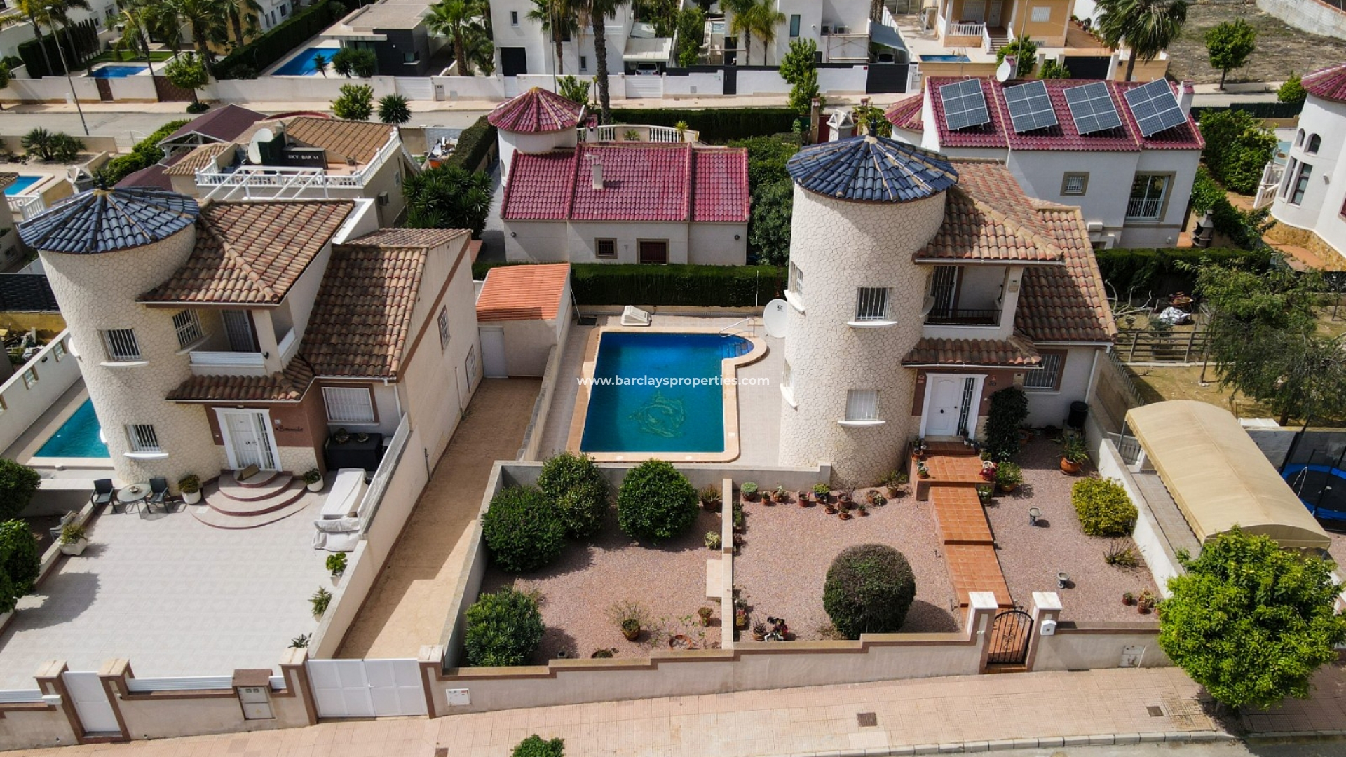 Zum Verkauf in der Urbanisation La Marina steht diese attraktive, freistehende Villa, ein Modell "Alicia", auf einem 500m2 großen Grundstück mit eigenem 9 x 4 großen privaten Swimmingpool. Die Immobilie befindet sich nur wenige Gehminuten vom nächsten Einkaufszentrum mit Geschäften, Supermarkt, Apotheke, Tierarzt, Arztpraxis, Rathaus, Fußpfleger, Bank und einer fantastischen Auswahl an Bars und Restaurants entfernt. Es gibt nur 4 "Alicia"-Modelle hier in der Urbanisation La Marina, so dass wir sie nur selten auf dem Markt sehen - dies ist eine fantastische Gelegenheit für potenzielle Käufer!