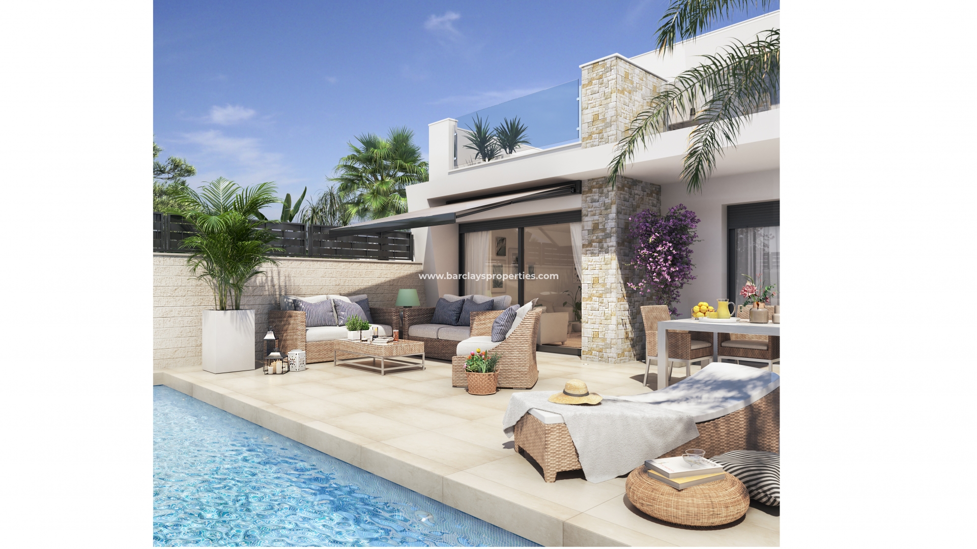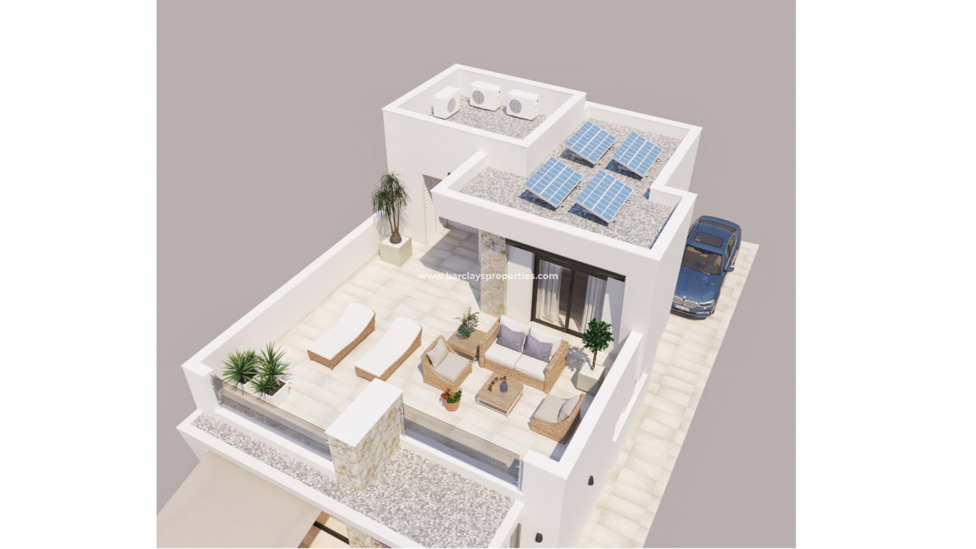 Eine fantastische Gelegenheit, in eine kleine Siedlung von nur 15 Villen zu investieren, die über drei Schlafzimmer, drei Badezimmer, ein riesiges 40m2 großes Solarium, große 7 x 2,5 Swimmingpools (im Preis inbegriffen) und einen 13m2 großen privaten Parkplatz verfügen.
