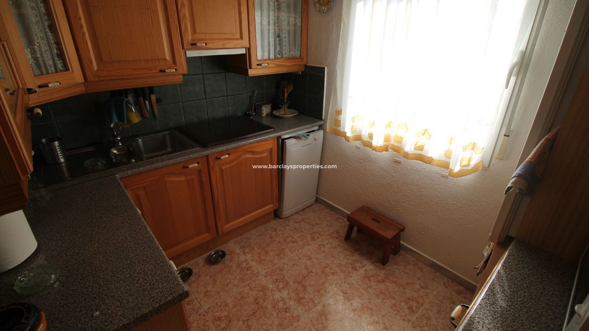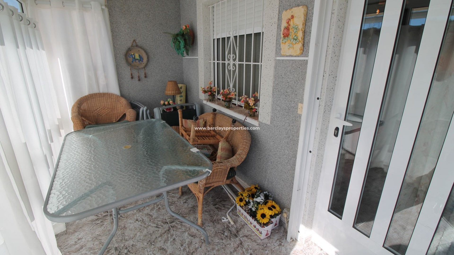 Dieses malerische Reihenhaus mit zwei Schlafzimmern, ein Modell 'Rosita', befindet sich in der Nähe der Pinienwälder der Urbanisation La Marina, wo Sie bei einem schönen Spaziergang oder einer Radtour die herrliche Landschaft genießen können. Vielleicht sehen Sie sogar ein rotes Eichhörnchen und wenn Sie weit genug fahren, finden Sie sogar den örtlichen 'Mirador', einen Aussichtspunkt, an dem zur Weihnachtszeit eine Krippe aufgestellt wird, die nachts beleuchtet wird. Die Wohnung befindet sich in einer zentralen und doch ruhigen Gegend, nur wenige Gehminuten von Supermärkten, Geschäften, Arztpraxen, Apotheken und einer Reihe von Bars und Restaurants entfernt. In unmittelbarer Nähe gibt es auch internationale Supermärkte für die kleinen Leckereien, die wir in unserem Heimatland vermissen. Der örtliche Straßenmarkt, der jeden Donnerstag stattfindet, ist nur einen kurzen Spaziergang entfernt, wo man von Wurst, Fleisch und Käse bis hin zu Blumen, Kleidung und Handtaschen alles finden kann. Die schönen Sandstrände von La Marina sind nur 5 Autominuten entfernt und der Flughafen Alicante-Elche ist in 25 Minuten mit dem Auto zu erreichen.
