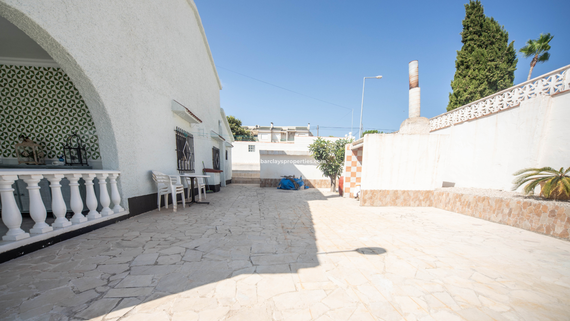 Dieses einzigartige Grundstück beherbergt drei geräumige Häuser, die als Gäste- oder Mietunterkünfte genutzt werden können. Das große Grundstück bietet Platz für Wohnmobile oder Wohnwagen sowie verschiedene Fahrzeuge, die lange Auffahrt führt zu drei Carports ermöglicht überdachte Parkplätze für ein paar Fahrzeuge. Die Lage ist perfekt am Rande der Urbanisation El Oasis, nur 2 Minuten zu Fuß zu allen Annehmlichkeiten und einer fabelhaften Auswahl an Bars, Cafés und Restaurants für jeden Geschmack. Außerdem sind die Sandstrände von La Marina Village nur 5 Minuten mit dem Auto entfernt und der Flughafen Alicante ist nur 25 Minuten entlang der Küstenstraße entfernt.