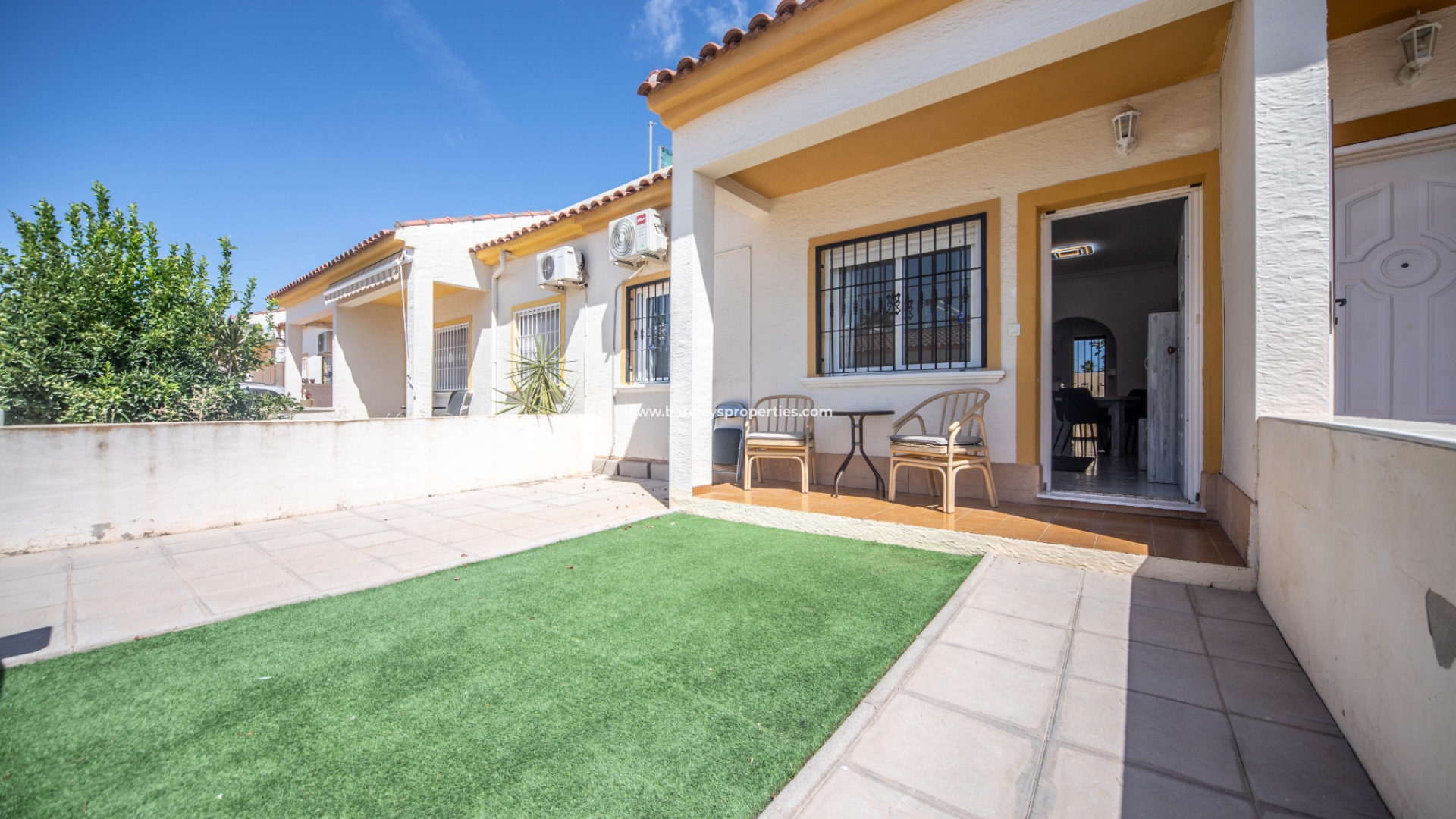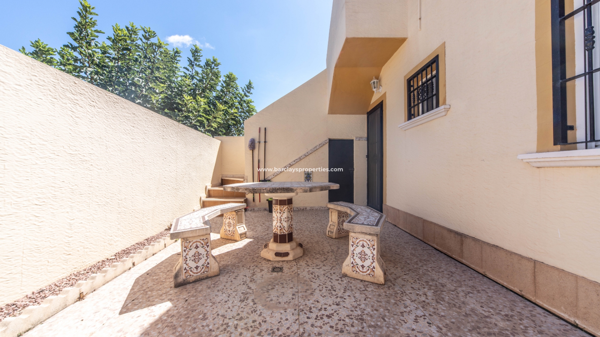 Dieses herrliche Anwesen liegt nur einen Steinwurf vom Gemeinschaftspool entfernt. Wir haben die Wahl, ob wir das Haus durch ein Fußgängertor oder durch ein Doppeltor betreten, das uns auf die Einfahrt führt, wo wir abseits der Straße parken können. Der Garten ist vollständig gepflastert und pflegeleicht.