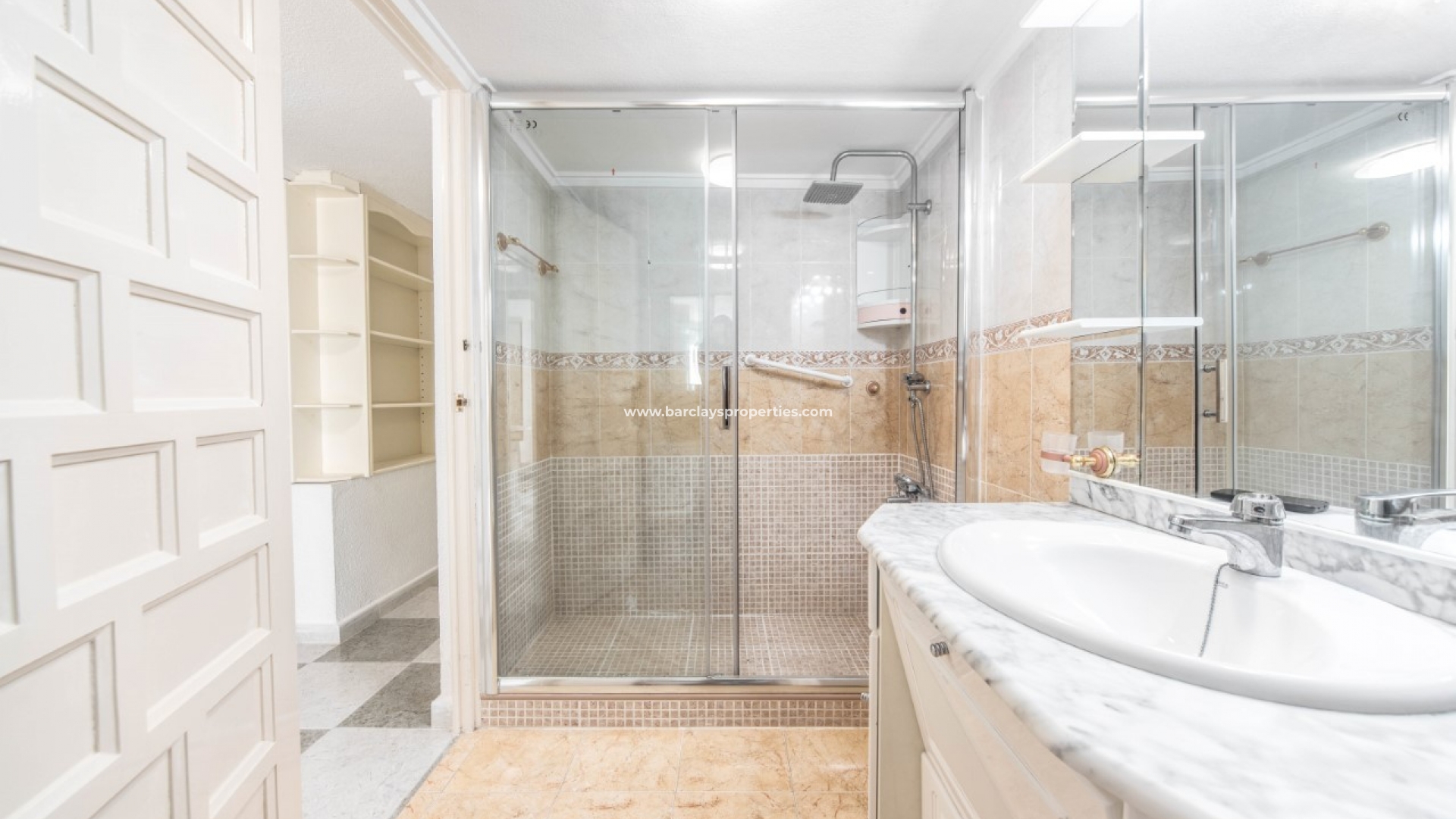 In einer zentralen und doch ruhigen Gegend der begehrten Urbanisation La Marina befindet sich diese fantastische, renovierte Immobilie. Es liegt direkt neben einem großen Hundepark und ist nur fünf Gehminuten von den nächsten Restaurants entfernt, in denen oft Karaoke-Abende, Quiz-Abende und Live-Musik angeboten werden. Ein paar Minuten weiter erreichen wir den beliebten Consum Square, wo sich das Leben abspielt. Hier gibt es zwei Supermärkte, einen Haushaltswarenladen, einen Hundefriseur, einen Optiker und eine Vielzahl von Bars und Restaurants mit einer vielseitigen Küche.