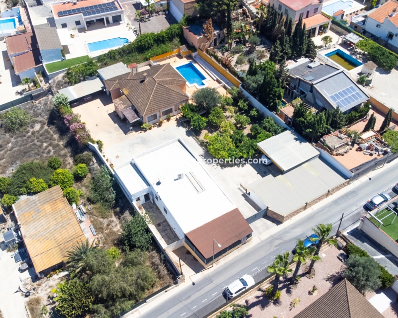 Im Erdgeschoss hat man von der Küche aus Zugang zu einem Innenhof mit Sonnenmarkise, der zu einem Nebengebäude mit großem Abstellraum und einer großen, voll ausgestatteten Küche/Ess-/Wohnzimmer mit Grill führt. Dies ist ein beeindruckender Raum mit Klimaanlage und einer Zugangstür zum Innenhof sowie zum Poolbereich. Eine Außentreppe führt zu einer Sonnenterrasse mit Sonnensegel und einem Hauswirtschaftsraum.