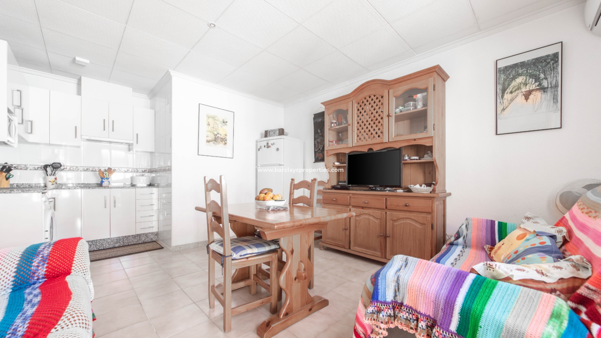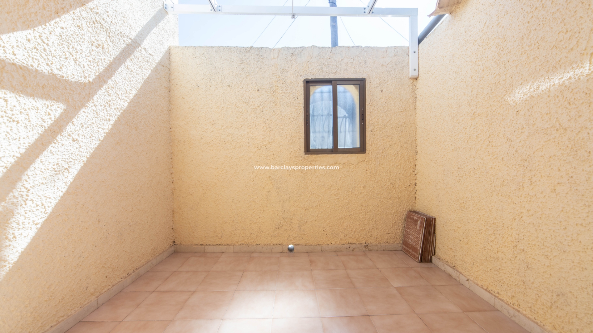 Zum Verkauf steht dieses charmante Reihenmittelhaus in zentraler Lage in der Urbanisation La Marina in der Gemeinde San Fulgencio. Es handelt sich um das Modell "Rosita", das zu einer einzigartigen Gemeinschaft gehört, die Zugang zu einem Gemeinschaftsschwimmbad hat. Dieser ist optional gegen eine geringe Gebühr, aber ideal für die wärmeren Monate, wenn man diese Option nutzen möchte, da der Pool ganz in der Nähe des Grundstücks liegt.