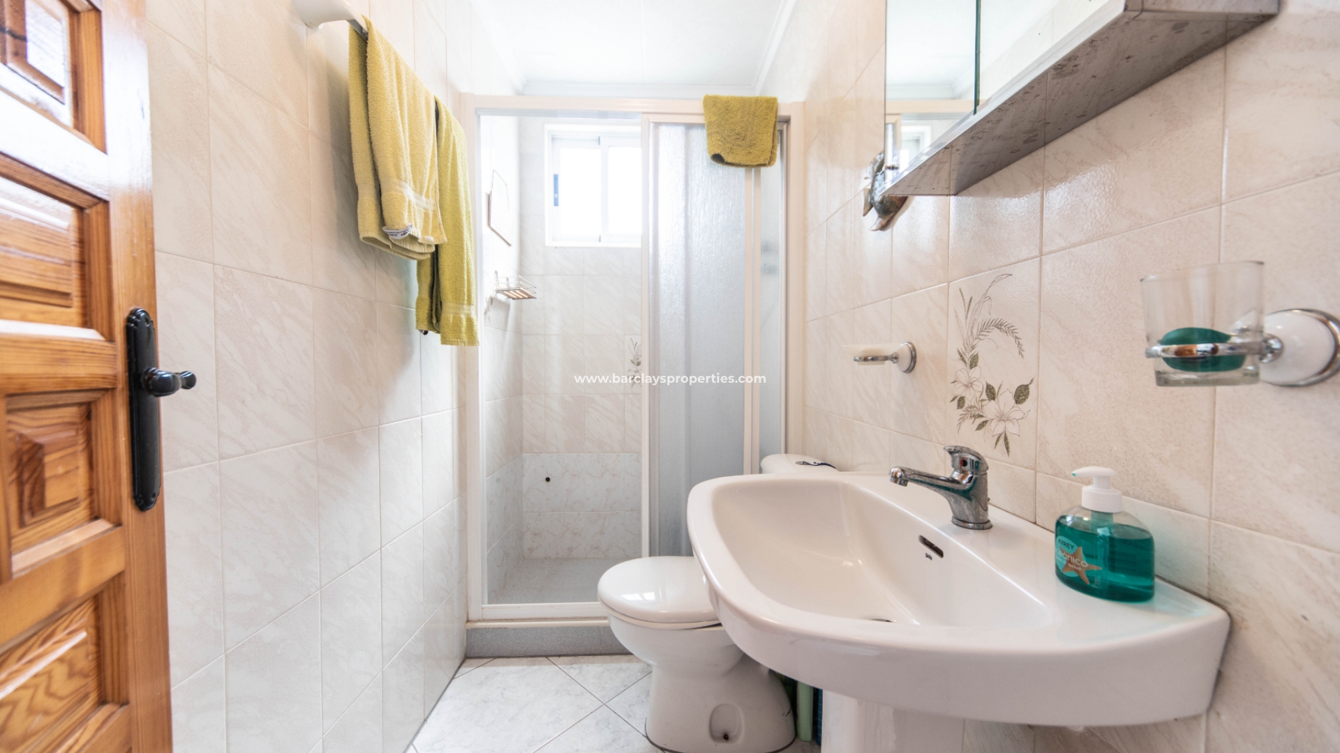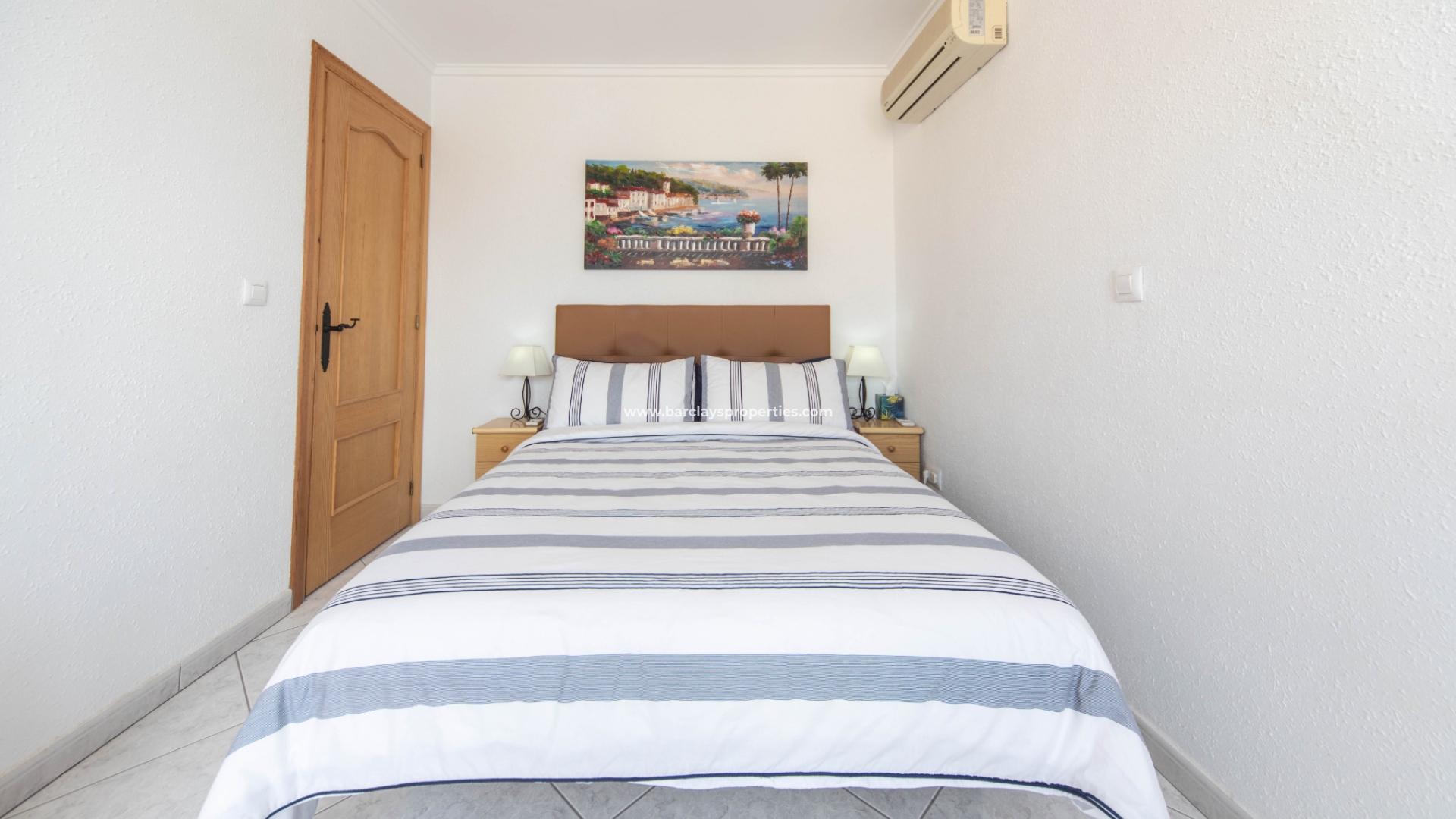 Im Obergeschoss befindet sich ein großes Doppelschlafzimmer mit großen Fenstern, die den Raum mit natürlichem Licht durchfluten. Es hat sowohl eine Klimaanlage als auch einen Deckenventilator. Es gibt ein zweites Schlafzimmer sowie ein voll ausgestattetes Badezimmer mit einer Wand-zu-Wand-Dusche.