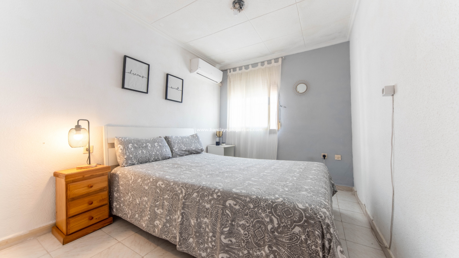 Die Immobilie wird teilmöbliert angeboten und verfügt über Extras wie Sicherheitsgitter, Einbauschränke, Abstellmöglichkeiten und Klimaanlage.