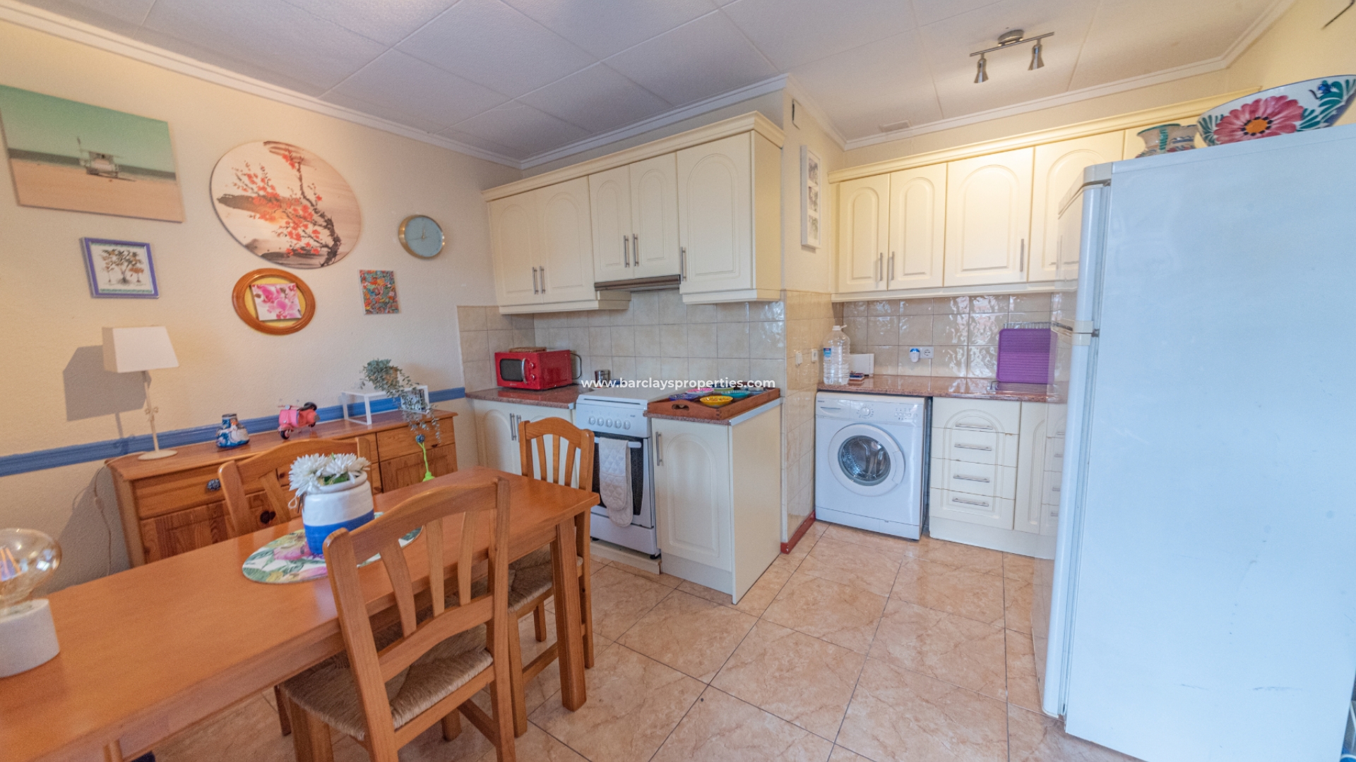 Diese nach Süden ausgerichtete Immobilien in La Marina zu verkaufen hat eine außergewöhnlich gute Lage. Obwohl es sich in einer ruhigen Gegend der Urbanisation La Marina befindet, sind die nächsten Einkaufsmöglichkeiten wie Restaurants, Bars und ein großer Supermarkt in nur zwei Minuten zu Fuß zu erreichen. Auch der wöchentliche Straßenmarkt, der jeden Donnerstag stattfindet, ist nur fünf Gehminuten entfernt. Die farbenfrohen spanischen Straßenmärkte sind voller Leben, und wenn Sie durch die auffälligen Gänge schlendern, werden Sie die typischen mediterranen Düfte wahrnehmen, die in der Brise wehen, wie z. B. gemischte Kräuter und Gewürze, Wurst und Käse sowie leckere Speisen, die in den mobilen Lokalen frisch zubereitet werden. Hier kann man frisches Obst und Gemüse, Kleidung, Accessoires, Taschen, Pflanzen und vieles mehr kaufen.