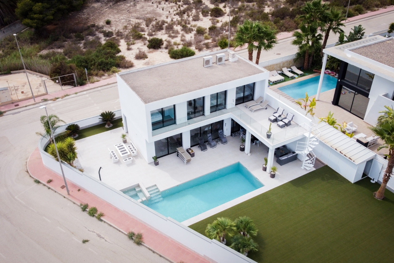 Esta lujosa propiedad incluye tres baños y una cocina de concepto abierto, ➡️ todo dentro de 249 m² de espacio habitable meticulosamente diseñado. ✅ La villa está equipada con comodidades modernas como ventanas de doble acristalamiento, persianas eléctricas, aire acondicionado en toda la casa y un avanzado sistema de alarma de seguridad.