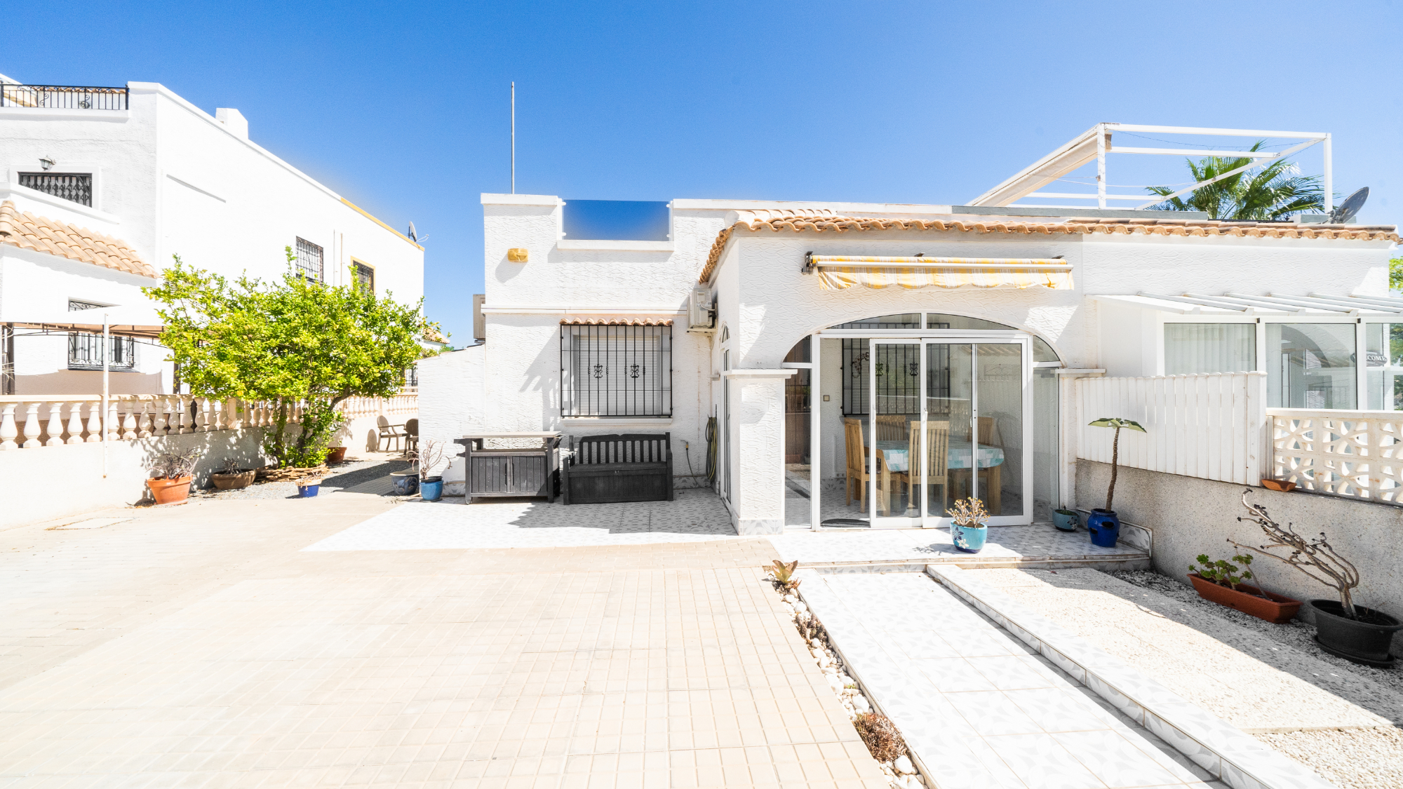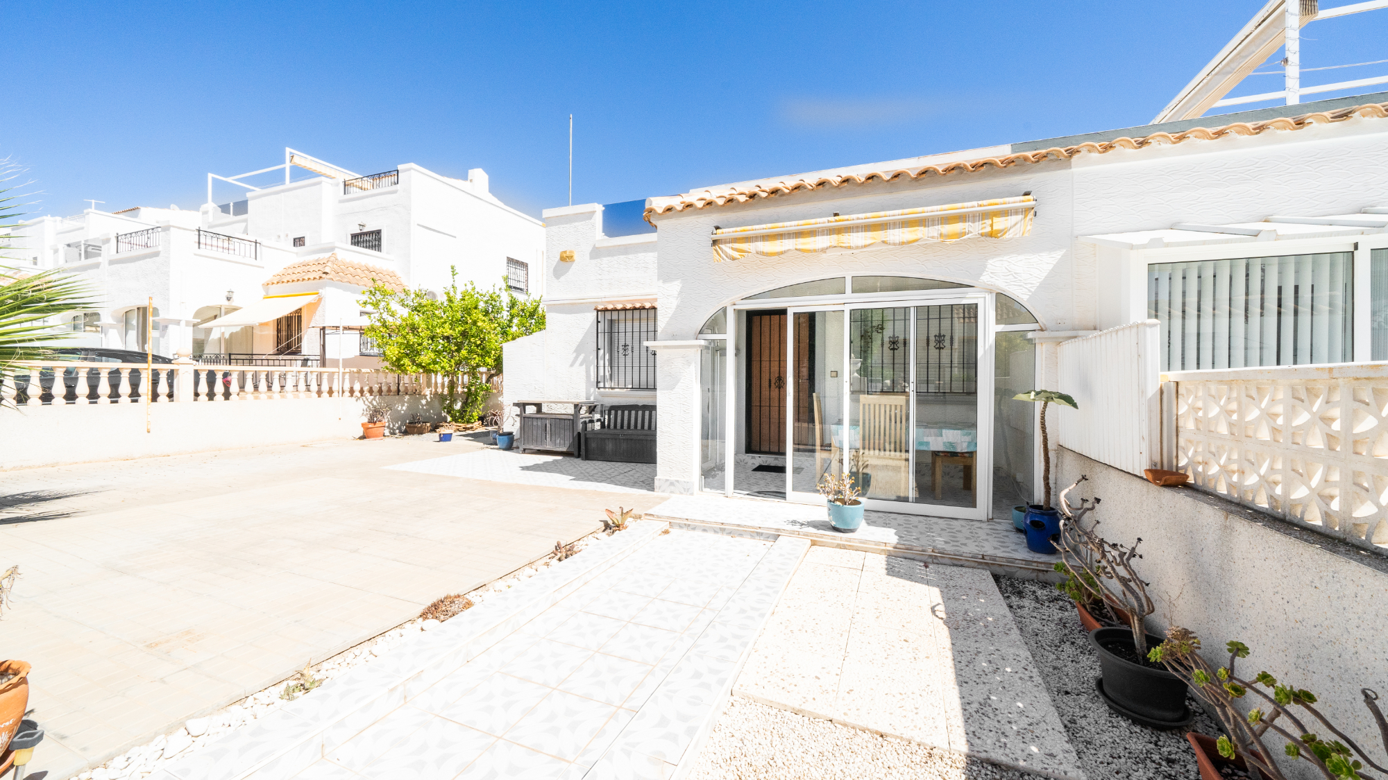 Esta espaciosa villa cuádruple en la urbanización La Marina ofrece un cómodo acceso a una piscina comunitaria y jardines bien cuidados, a solo unos pasos de la propiedad. Está idealmente ubicada, a tan solo diez minutos a pie de una variedad de bares y restaurantes, y situada entre dos zonas comerciales muy concurridas.