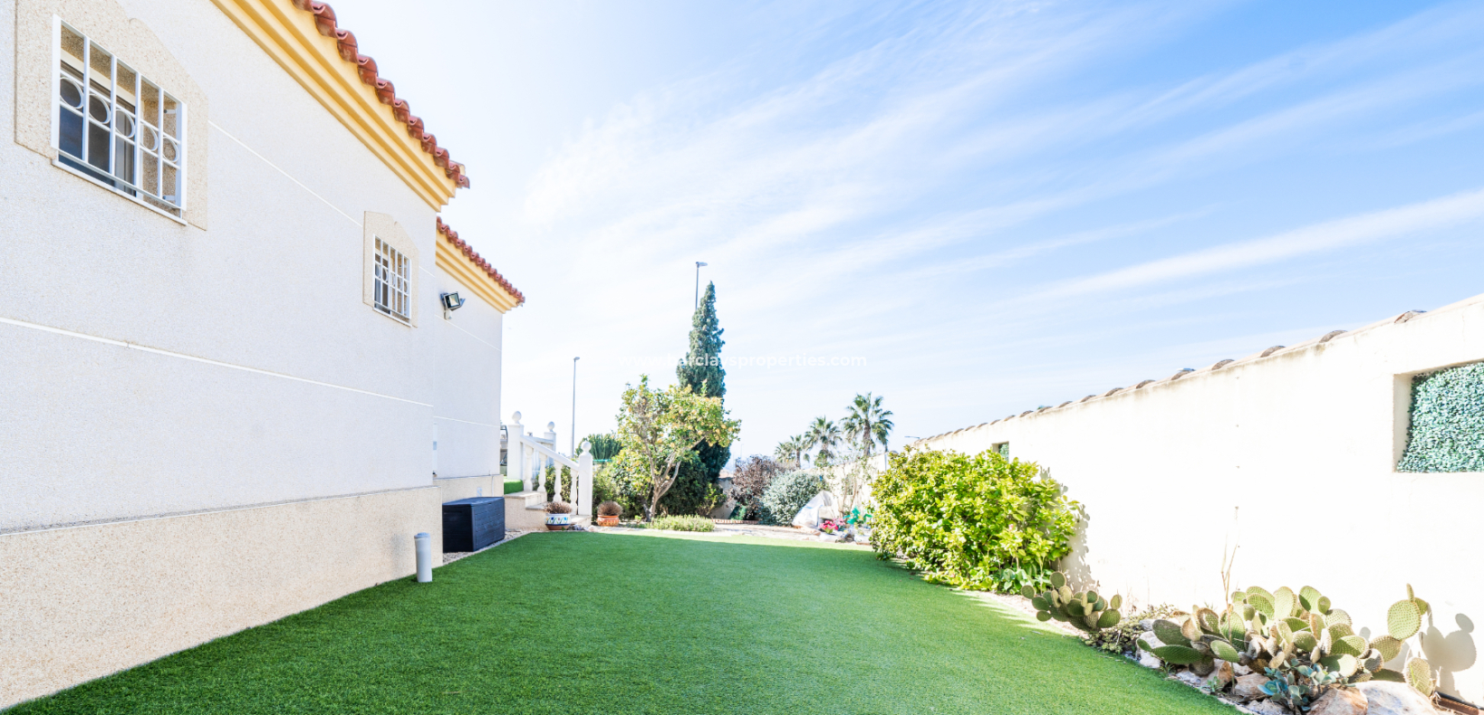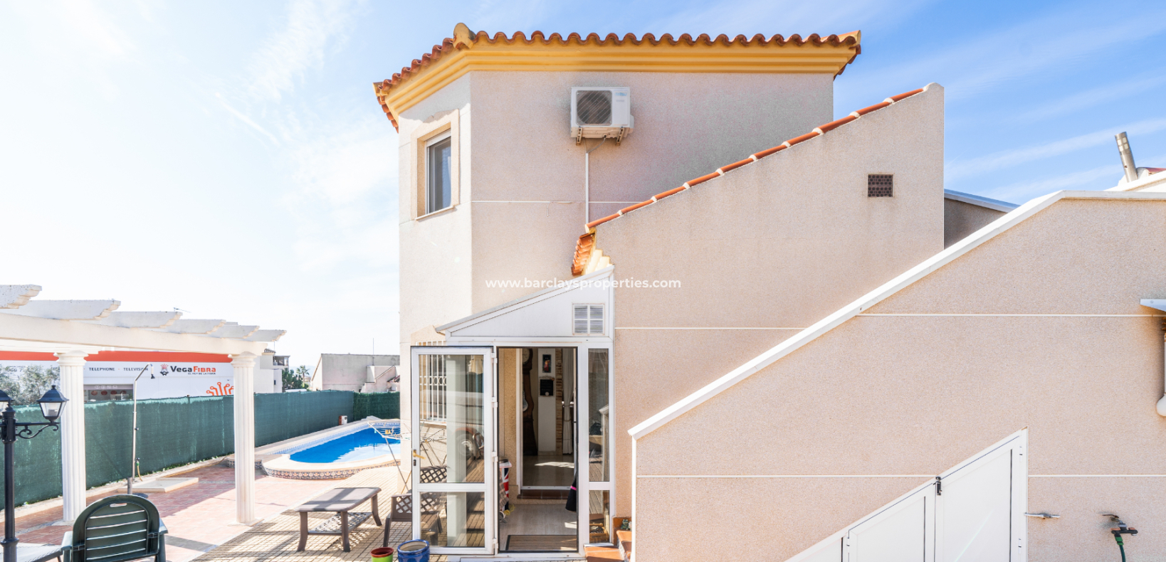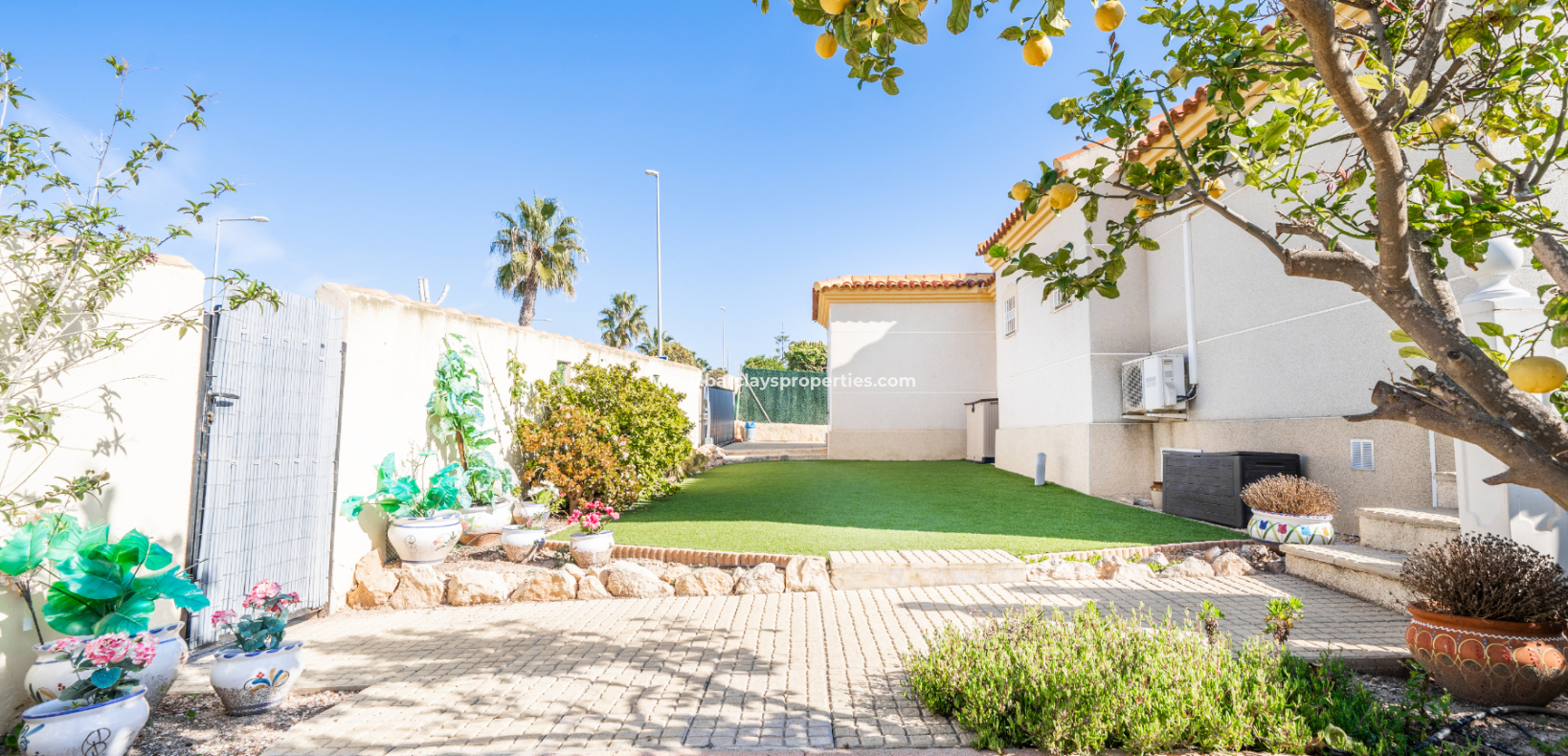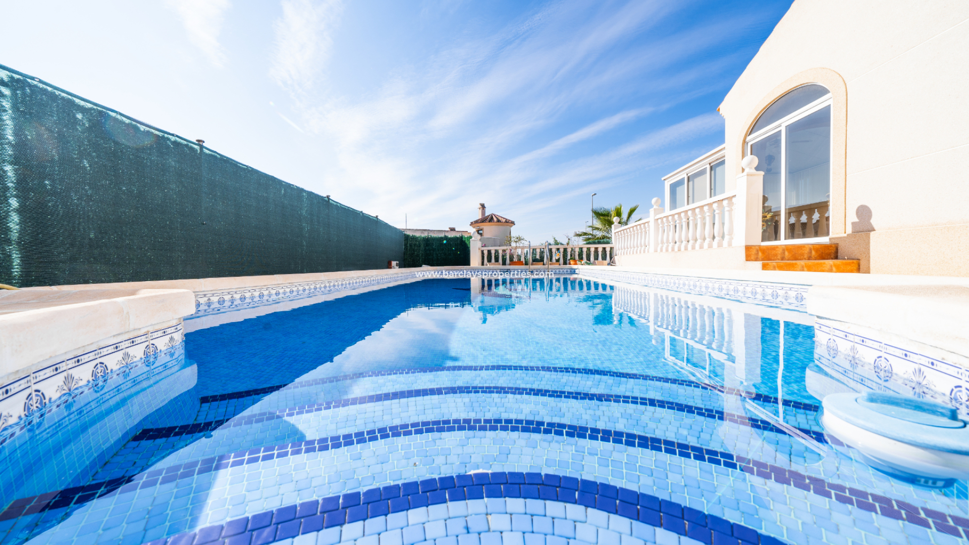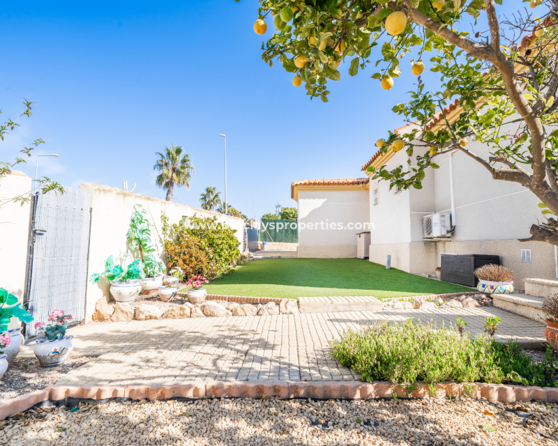 Esta espaciosa villa en Urb. La Marina, San Fulgencio, situada en una gran parcela de esquina, ofrece una vida cómoda donde las comodidades están a solo 2 minutos a pie de la propiedad. La villa cuenta con una fantástica ✅piscina privada de 8 x 4, un garaje privado con un área de lavandería y una puerta eléctrica corrediza, complementada por una caldera para calefacción central. El jardín está bien establecido con arbustos y árboles y tiene muchas zonas sombreadas y soleadas para disfrutar del clima español durante todo el año.
