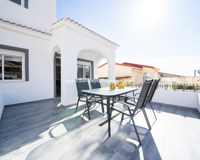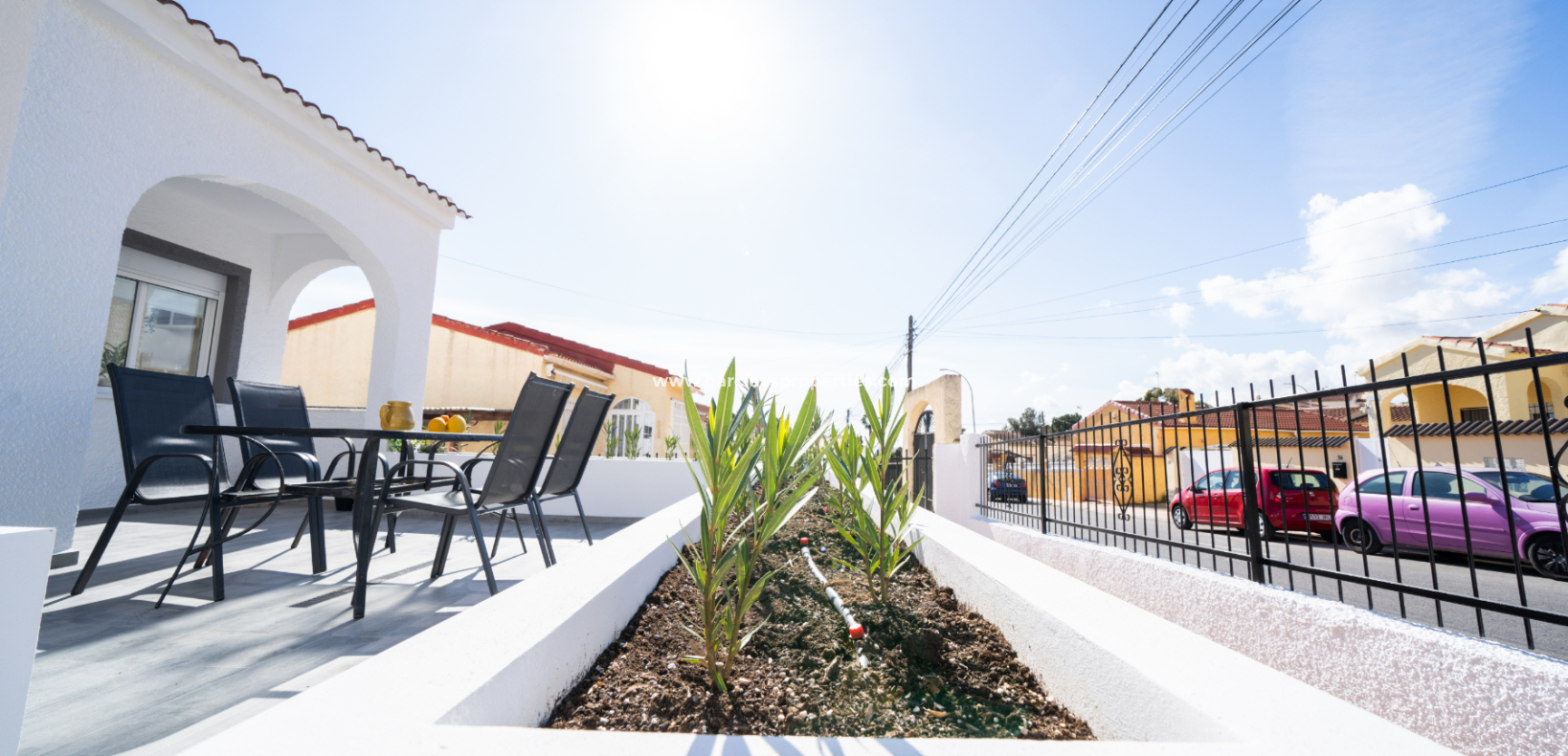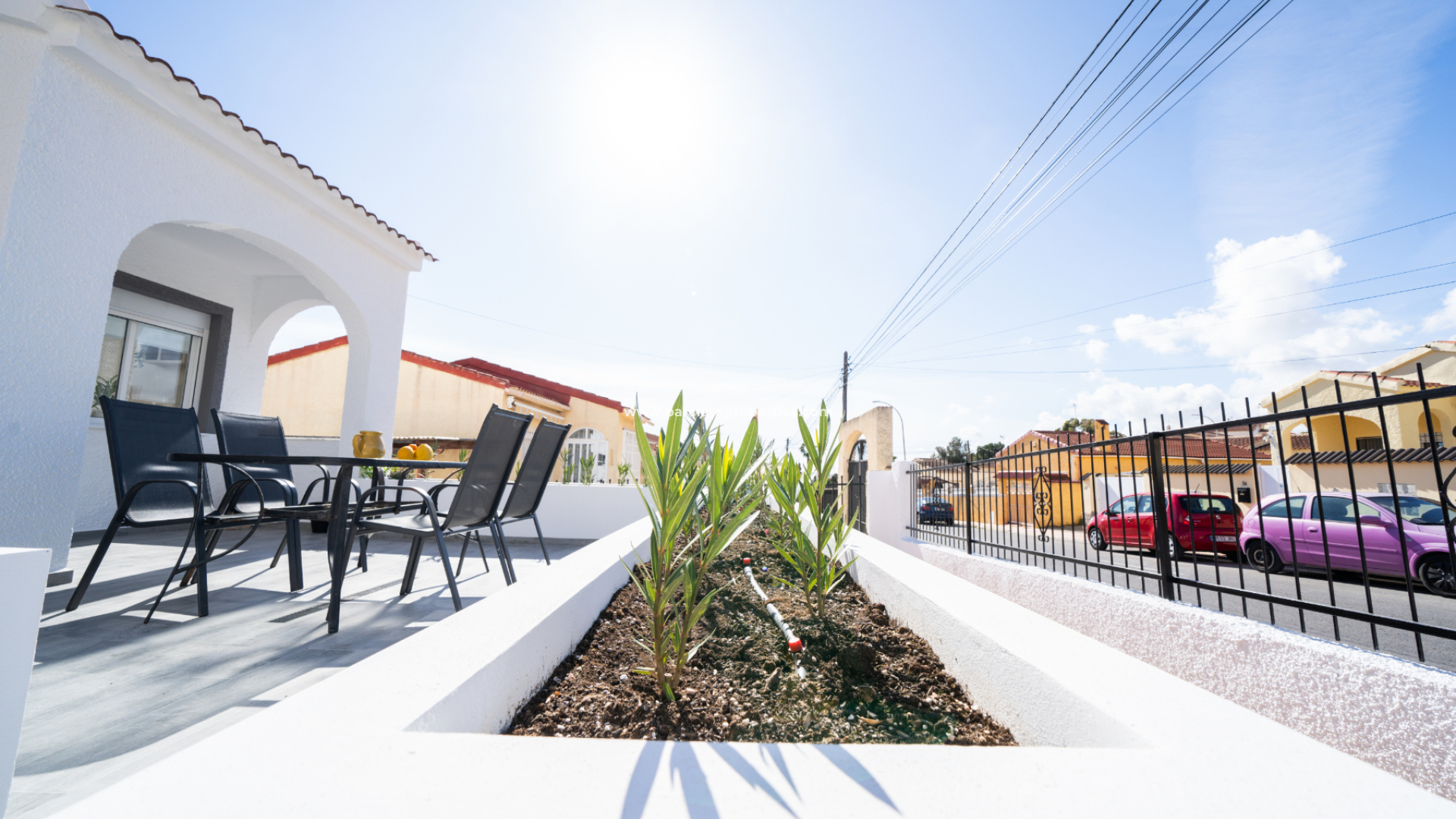 Los espacios exteriores son igualmente impresionantes, con terrazas recién alicatadas, un sistema de riego para el jardín y mucha privacidad. El jardín trasero tiene acceso directo a una tranquila zona verde y ofrece impresionantes vistas hacia la vecina localidad de Guardamar del Segura.