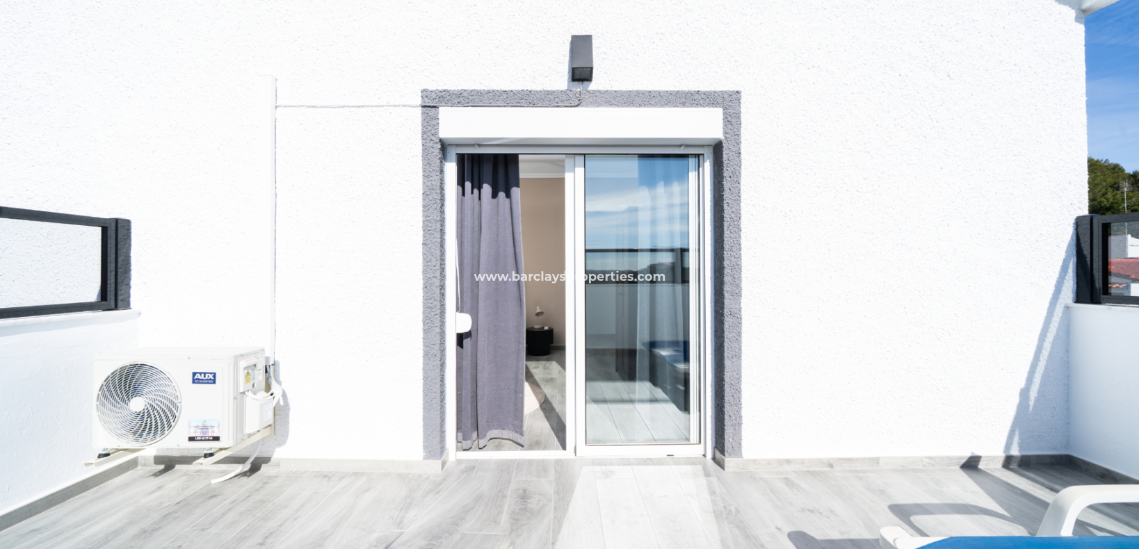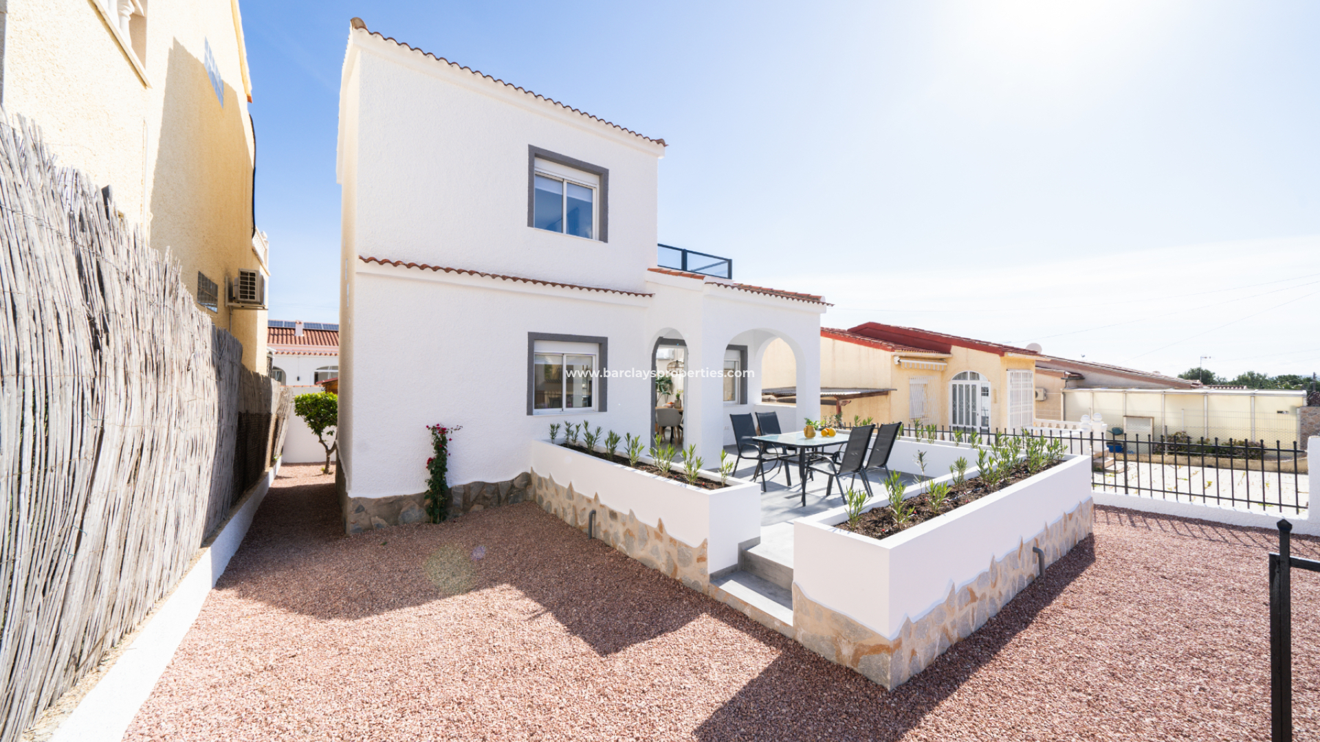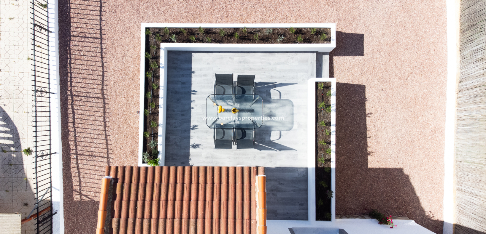 Los espacios exteriores son igualmente impresionantes, con terrazas recién alicatadas, un sistema de riego para el jardín y mucha privacidad. El jardín trasero tiene acceso directo a una tranquila zona verde y ofrece impresionantes vistas hacia la vecina localidad de Guardamar del Segura.