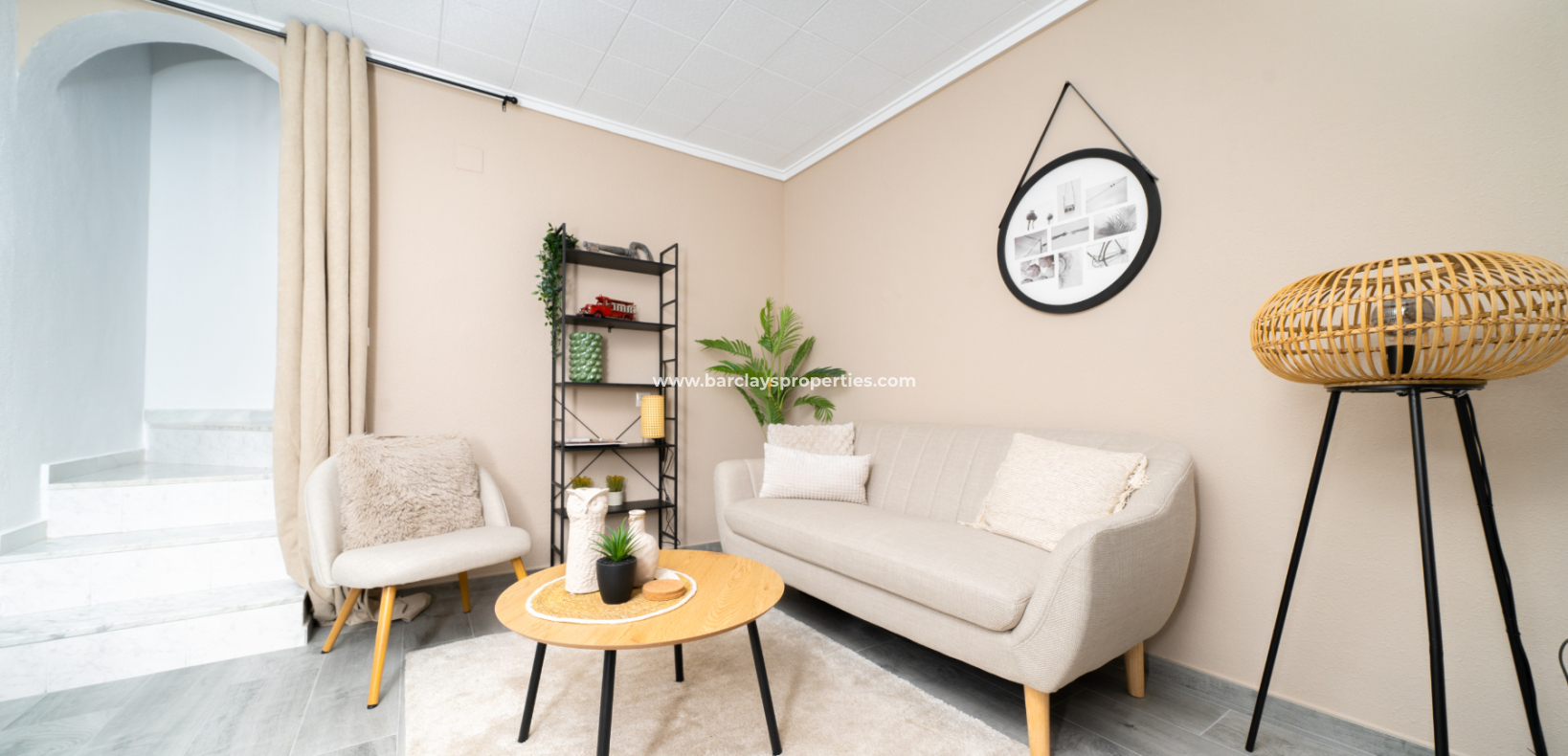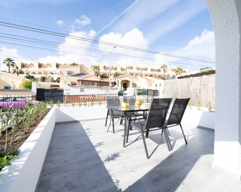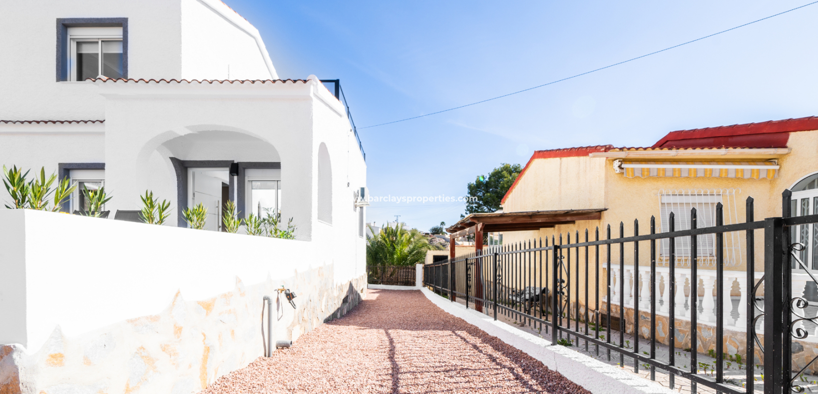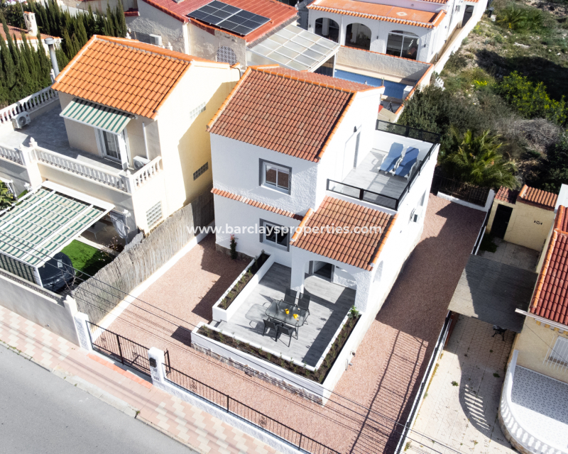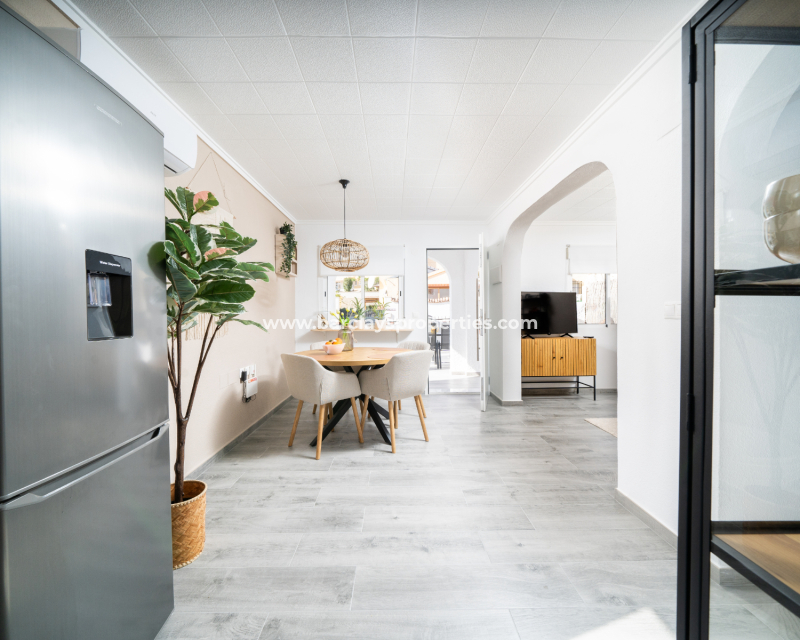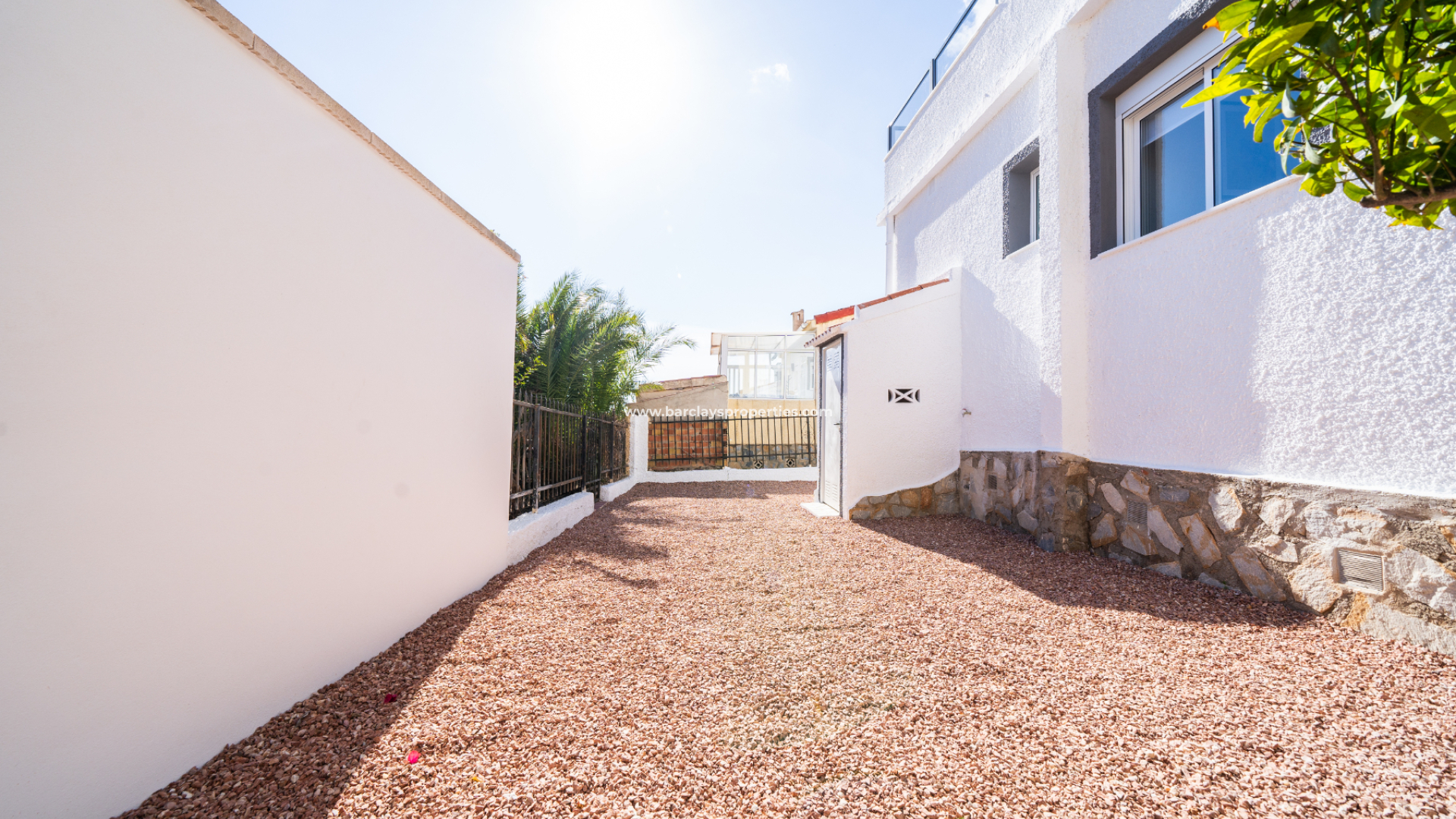 Esta hermosa propiedad "Lola", renovada y ampliada, ofrece una orientación al oeste en la parte delantera y al este en la parte trasera, lo que le garantiza sol durante todo el día y características excepcionales, convirtiéndola en una propiedad destacada tanto para vivir como para invertir. Ubicada cerca de la playa de "la Marina Village" (a 5 minutos en coche), del popular bar/restaurante Hillside y la piscina al aire libre, así como de todos los servicios, esta casa con estilo combina belleza natural con comodidad, lo que la convierte en una joya rara.