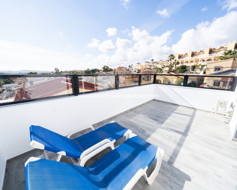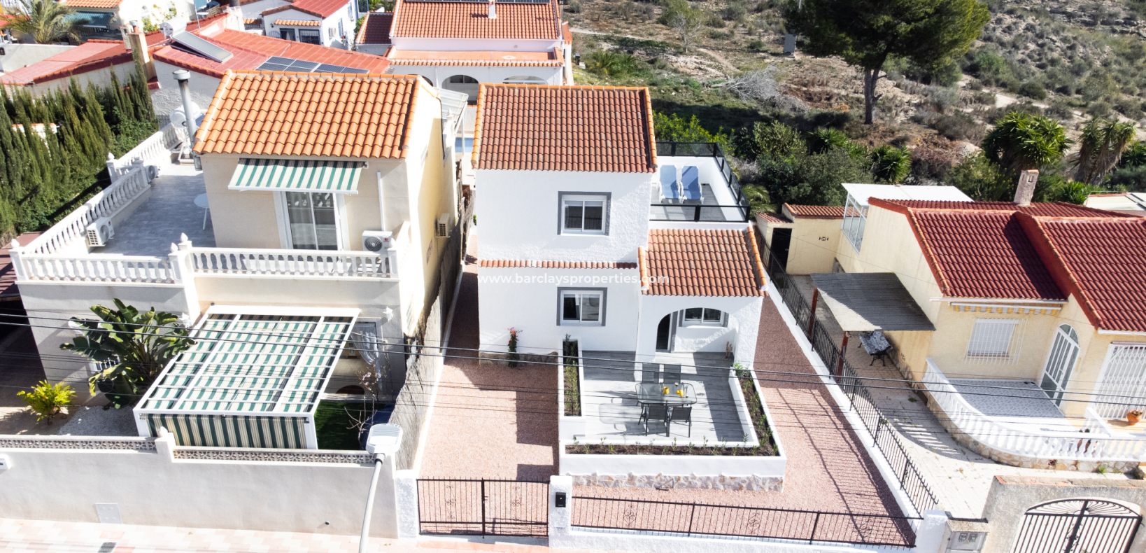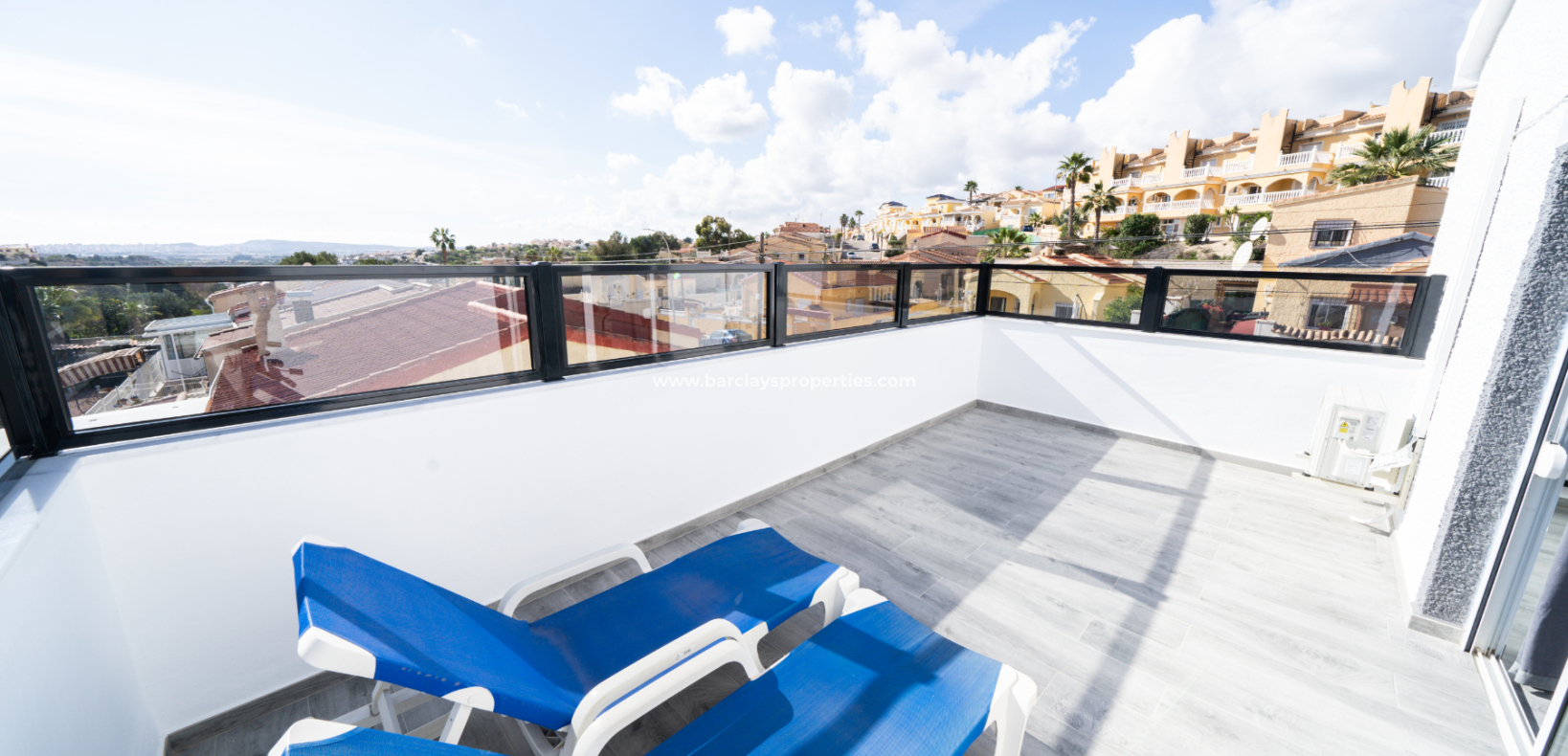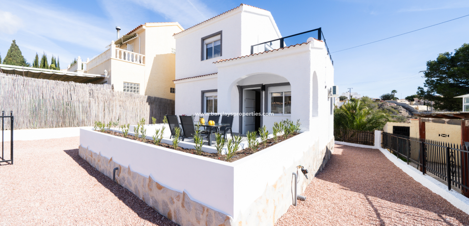 Esta hermosa propiedad "Lola", renovada y ampliada, ofrece una orientación al oeste en la parte delantera y al este en la parte trasera, lo que le garantiza sol durante todo el día y características excepcionales, convirtiéndola en una propiedad destacada tanto para vivir como para invertir. Ubicada cerca de la playa de "la Marina Village" (a 5 minutos en coche), del popular bar/restaurante Hillside y la piscina al aire libre, así como de todos los servicios, esta casa con estilo combina belleza natural con comodidad, lo que la convierte en una joya rara.