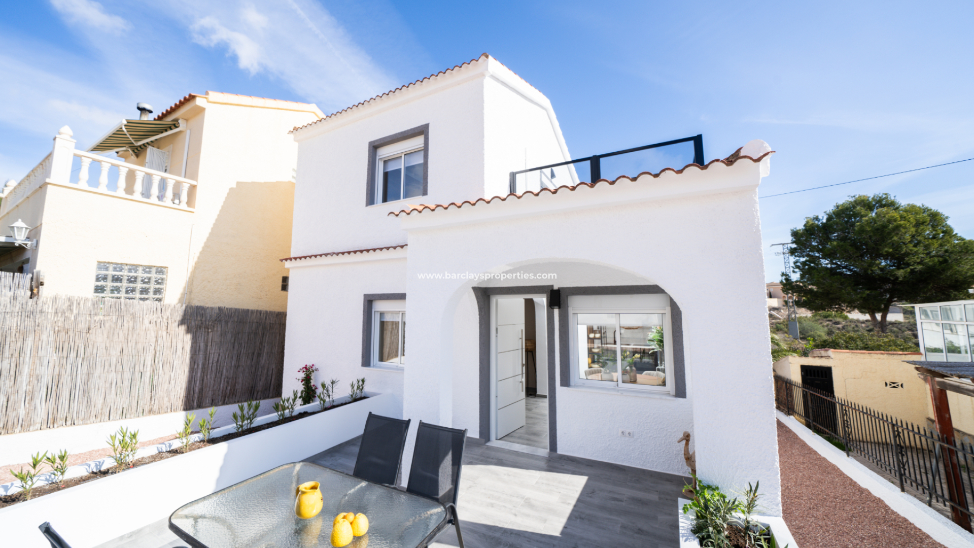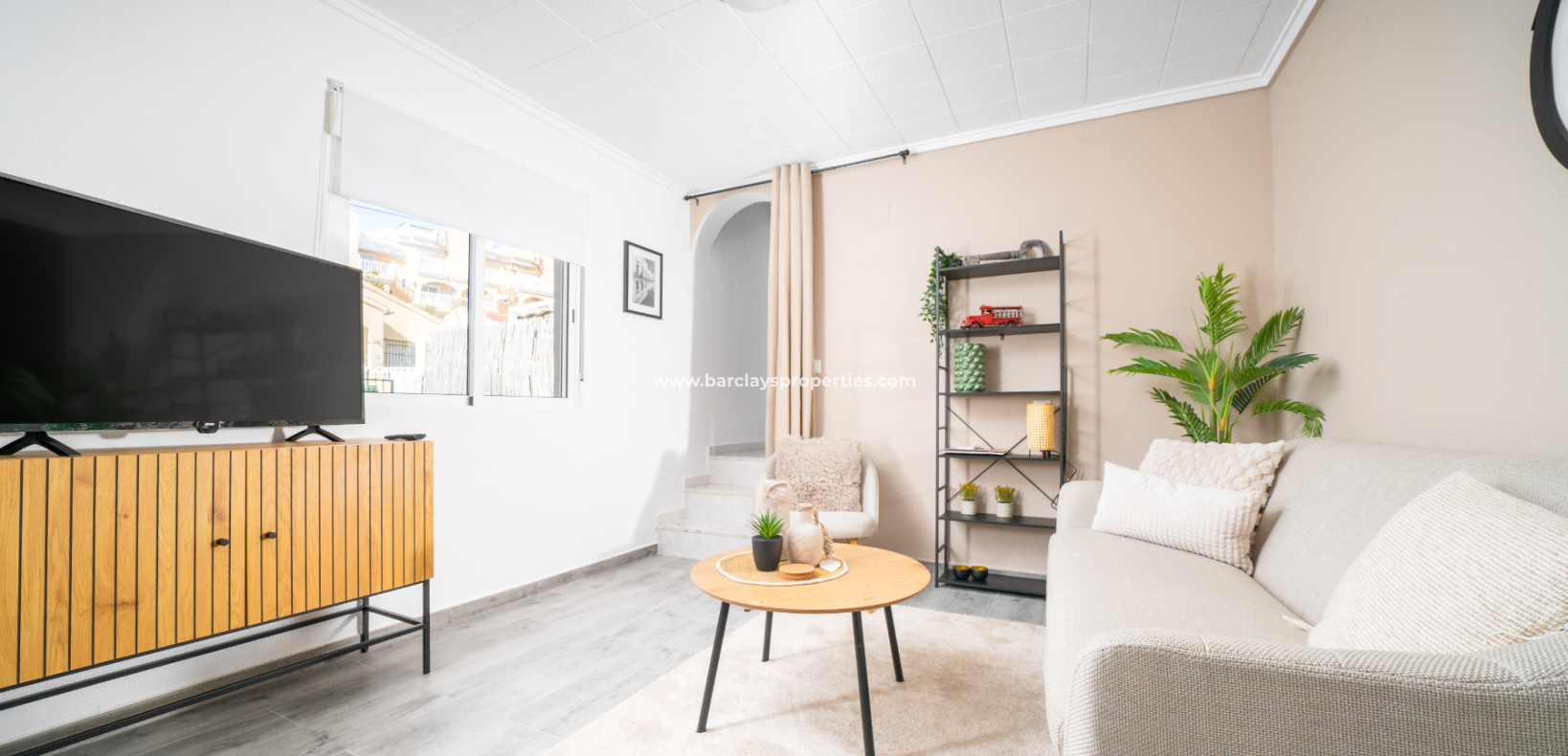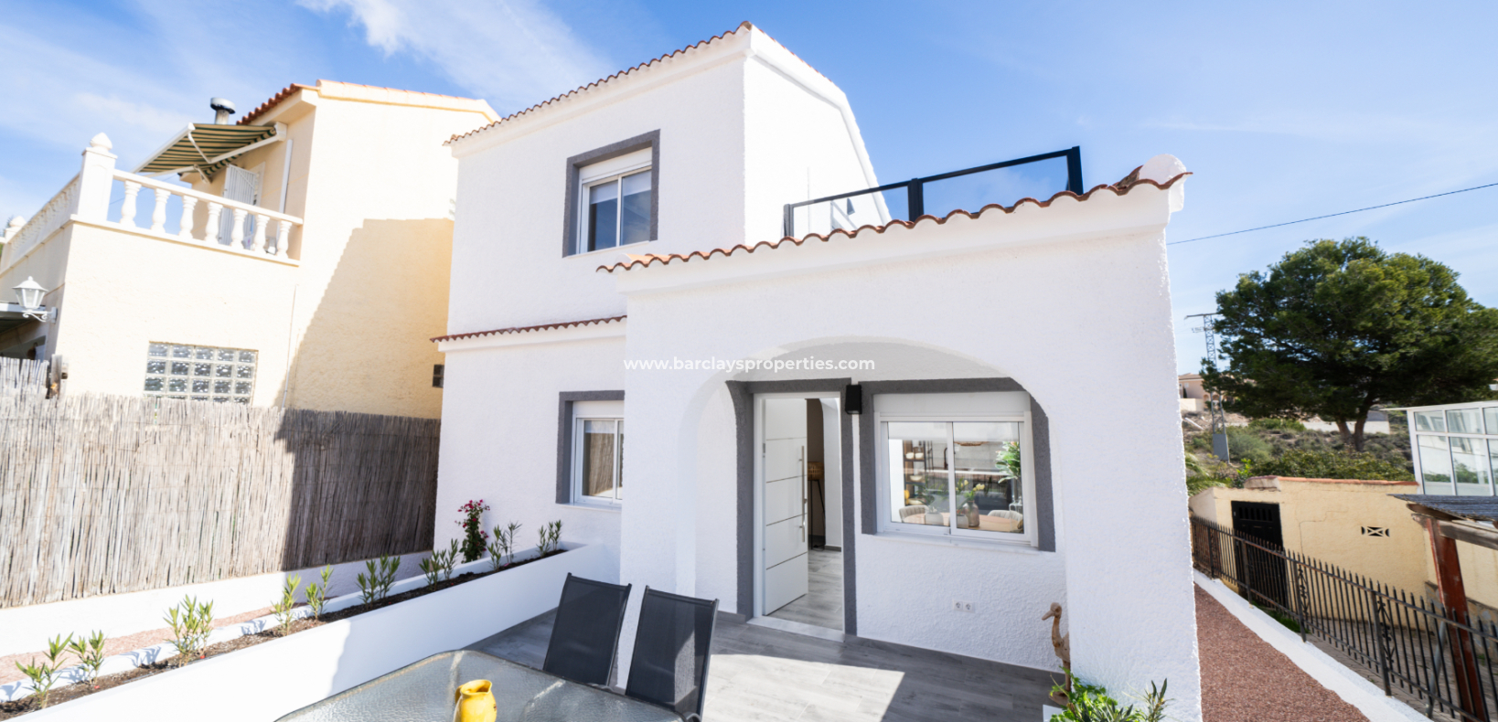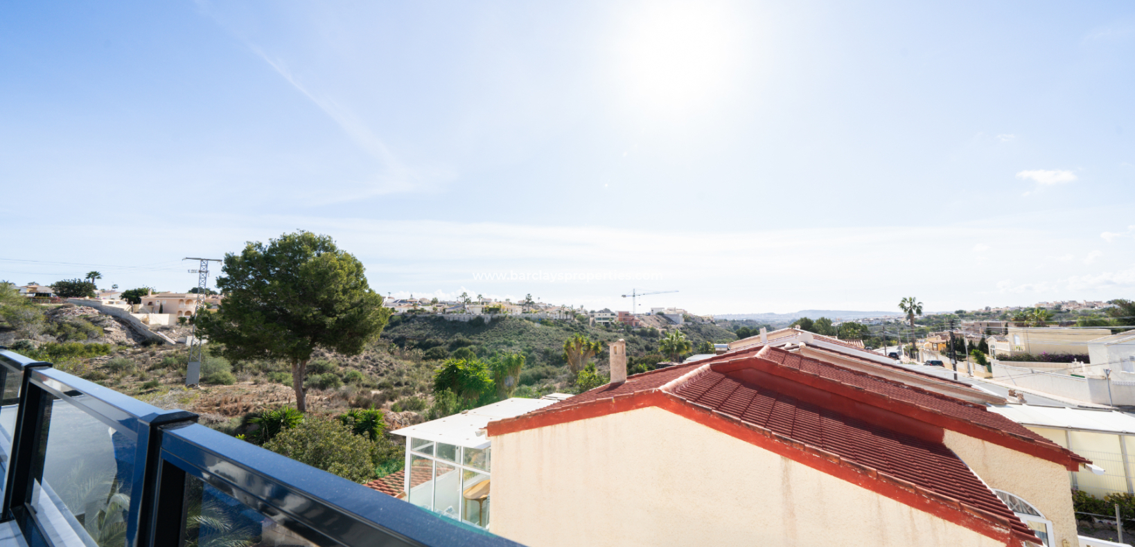 Esta hermosa propiedad "Lola", renovada y ampliada, ofrece una orientación al oeste en la parte delantera y al este en la parte trasera, lo que le garantiza sol durante todo el día y características excepcionales, convirtiéndola en una propiedad destacada tanto para vivir como para invertir. Ubicada cerca de la playa de "la Marina Village" (a 5 minutos en coche), del popular bar/restaurante Hillside y la piscina al aire libre, así como de todos los servicios, esta casa con estilo combina belleza natural con comodidad, lo que la convierte en una joya rara.