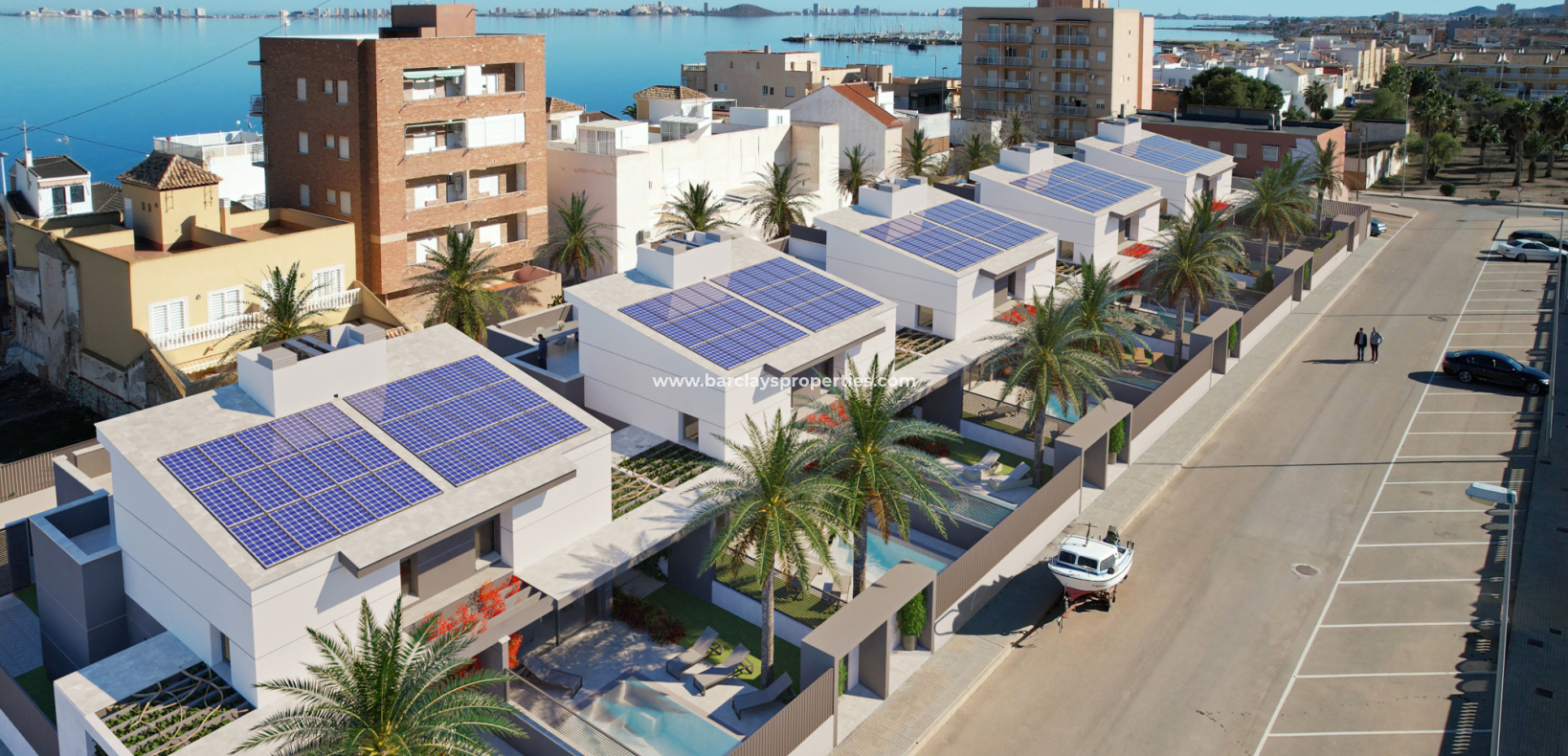 Impresionantes villas de 3 dormitorios y 3 baños a la venta en la codiciada zona del Mar Menor. Estas modernas casas de dos plantas cuentan con ➡️ una construcción espaciosa de 128 m² en una parcela de 229 m², con piscina privada y aparcamiento en superficie. La cocina de concepto abierto y el solárium en la azotea con cocina de verano ofrecen los espacios ideales para disfrutar de la vida al aire libre. Disfrute de todas las comodidades con paneles solares, un sistema aerotérmico de calefacción de agua y preinstalación para aire acondicionado. ➡️ Ubicadas a solo 150 metros de la playa, 500 metros de los servicios locales y a solo 42 km del aeropuerto, estas viviendas son perfectas tanto para relajarse como para invertir, con un gran potencial de alquiler. Puerta de seguridad reforzada, ventanas de doble acristalamiento y una garantía de 10 años ofrecen tranquilidad en una ubicación tranquila pero conveniente.