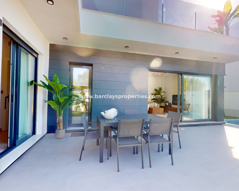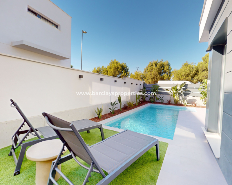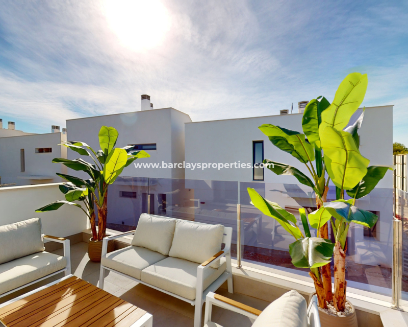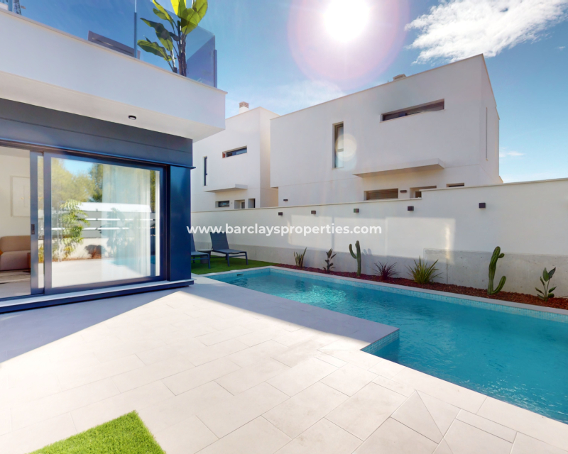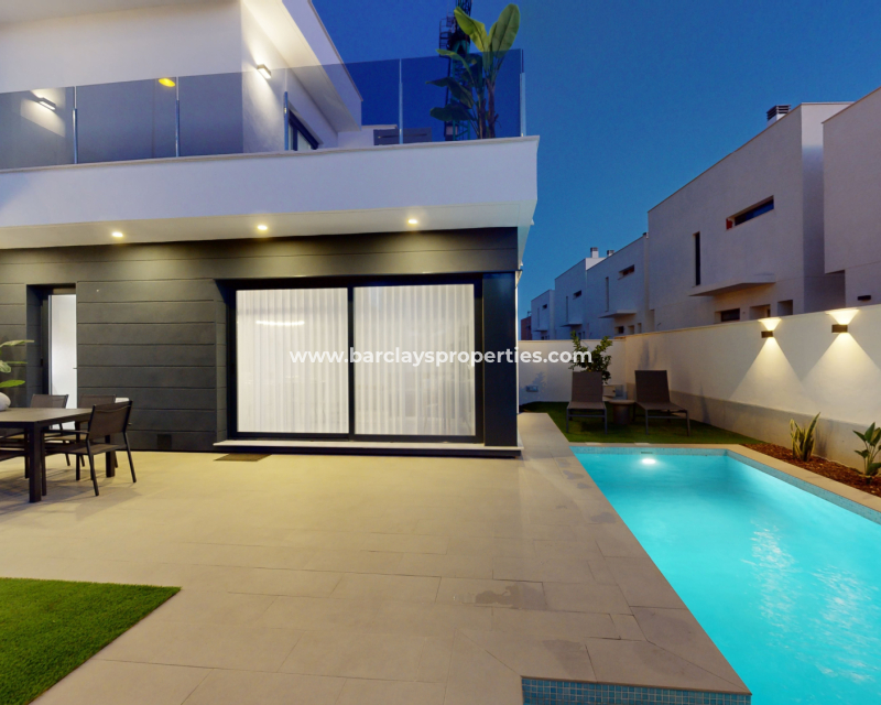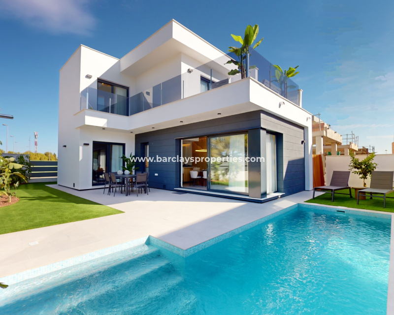 Descubre estas impresionantes villas de dos plantas en venta en Murcia, ➡️ con 3 dormitorios, 2 baños y 127m² de espacio habitable cuidadosamente diseñado en una parcela de 175m². Disfruta de una cocina de concepto abierto, interiores espaciosos y acabados de alta calidad, incluyendo calefacción por suelo radiante en los baños, ventanas de doble acristalamiento y puerta de seguridad reforzada. Cada vivienda cuenta con piscina privada, persianas eléctricas, puerta automática y preinstalación de aire acondicionado. ➡️ Con una garantía de 10 años y electrodomésticos incluidos, estas propiedades ofrecen tranquilidad y un gran potencial de alquiler. Situadas en una zona tranquila pero bien conectada, están a solo 5 km de la playa, 3 km de todos los servicios, 36 km del aeropuerto y a solo 500 metros del campo de golf más cercano. Un solárium privado está disponible como extra opcional.