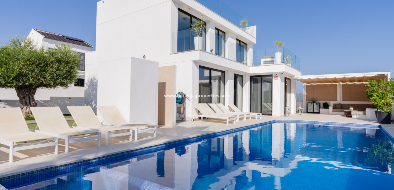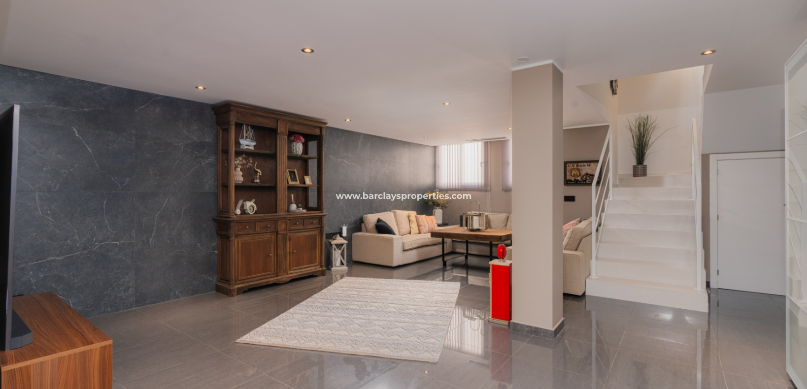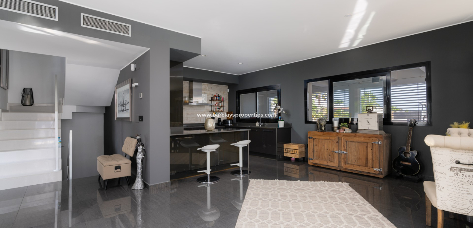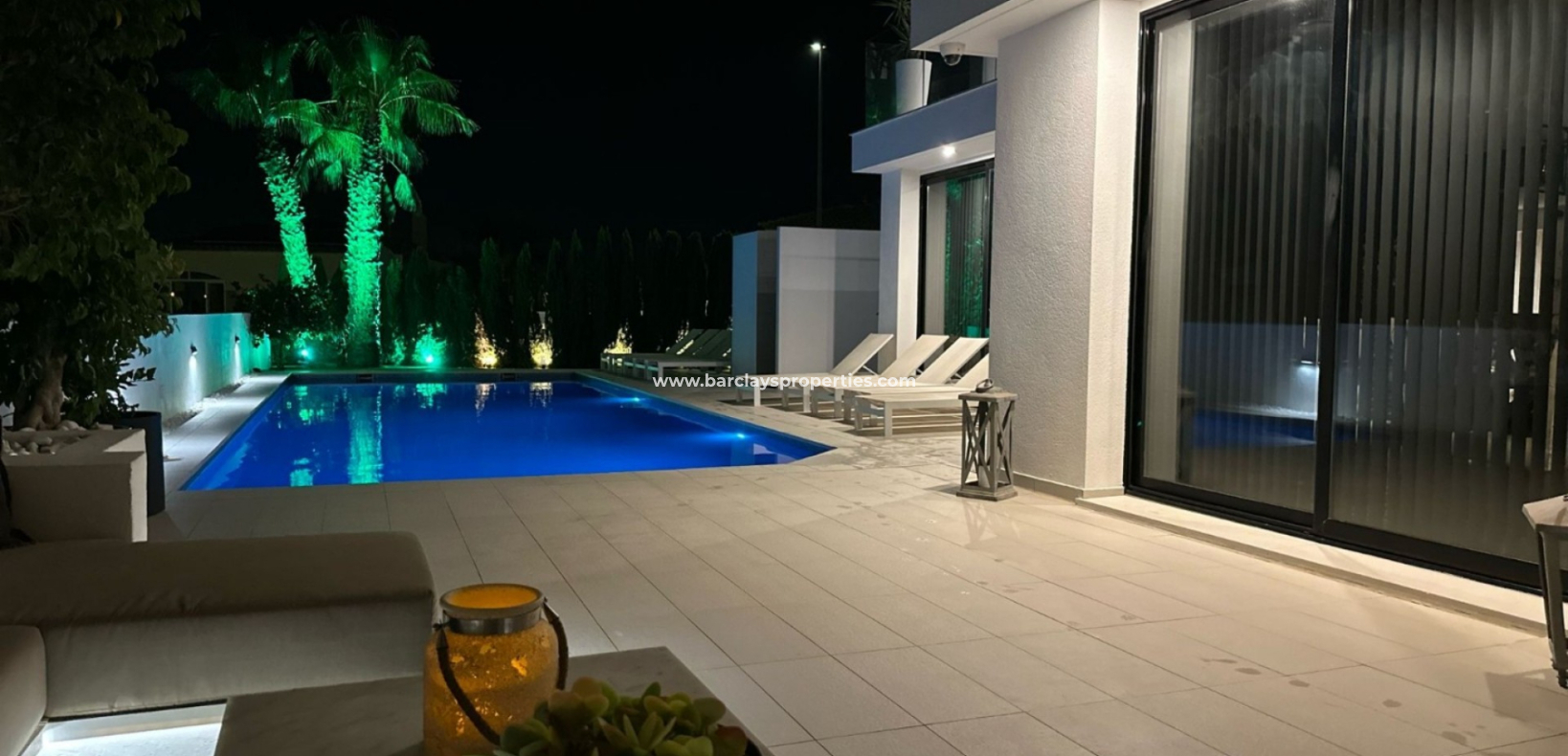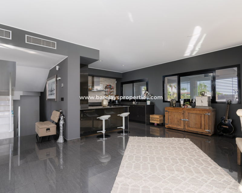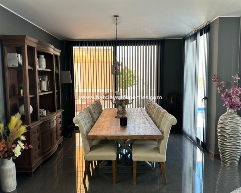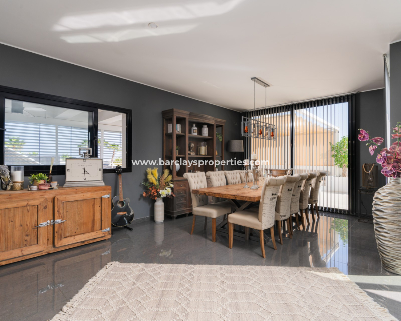 Ubicada en la codiciada Urbanización La Marina, esta exquisita villa se encuentra ➡️ en una generosa parcela de 500 m² y ofrece 7 amplios dormitorios y 4 baños, combinando a la perfección lujo y confort. La luminosa cocina de concepto abierto, junto con el comedor y la sala de estar, se conecta sin esfuerzo con la terraza exterior, donde una piscina privada y una acogedora zona de estar crean el espacio ideal para el relax y el entretenimiento. En la planta baja hay un baño conveniente, mientras que en la planta superior, tres dormitorios tienen acceso a una amplia terraza, destacando la suite principal con su propio baño en suite. Una terraza en la azotea ofrece ➡️ impresionantes vistas panorámicas, perfectas para desconectar o celebrar reuniones. ➡️ El sótano cuenta con un gran salón adicional, cuatro dormitorios extra, un baño compartido y una zona de lavandería/almacenamiento, ideal para invitados o familia extensa. Un sistema inteligente centralizado controla el aire acondicionado y la calefacción por suelo radiante, garantizando confort durante todo el año. En el exterior, una cocina dedicada, un comedor y exuberantes alrededores realzan el estilo de vida mediterráneo. ➡️ Con un garaje privado en el sótano, amplias terrazas y espacios interiores y exteriores refinados, esta propiedad es una oportunidad excepcional para quienes buscan una vivienda exclusiva en la Costa Blanca.