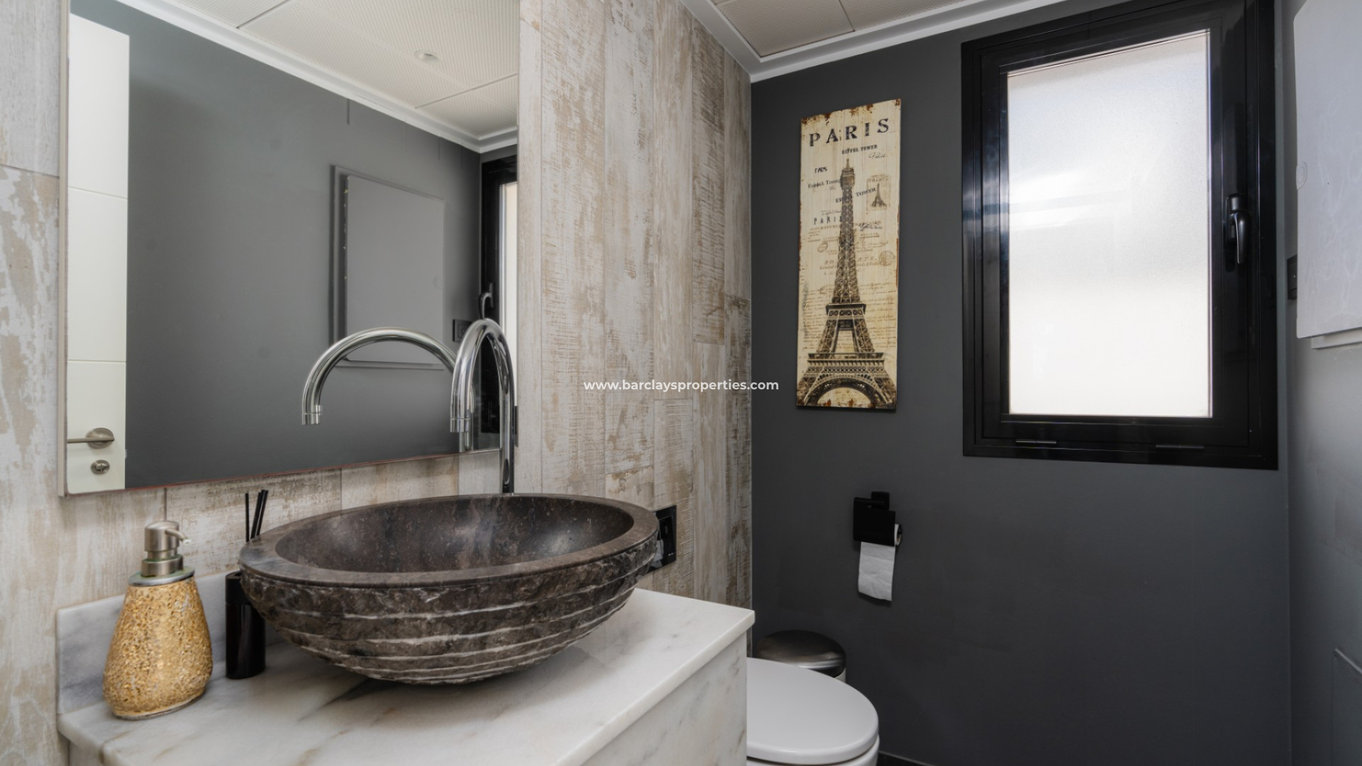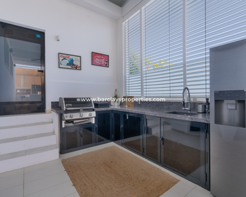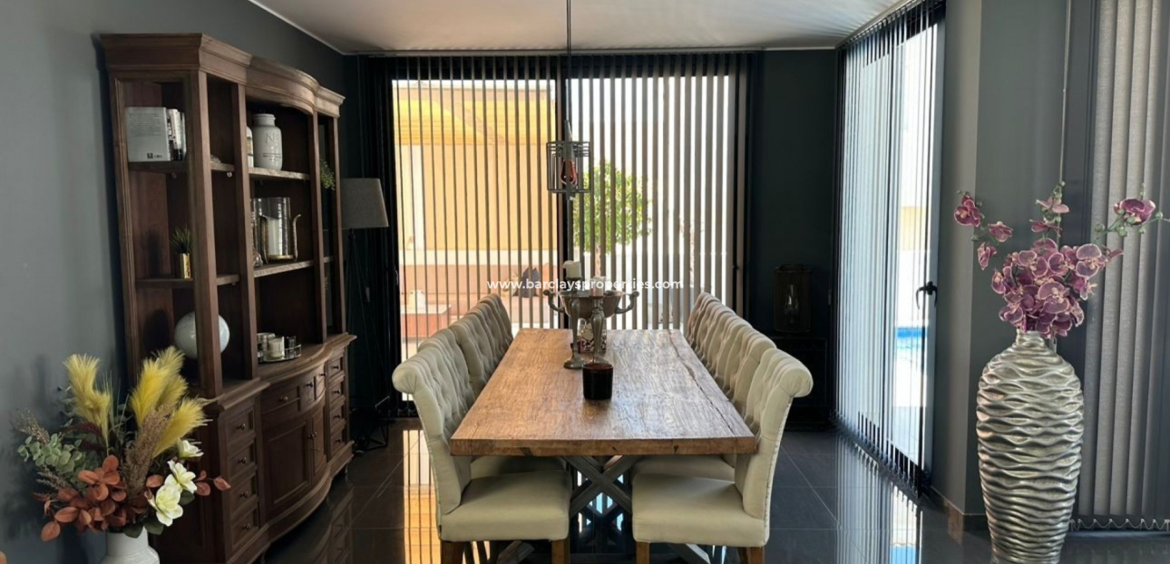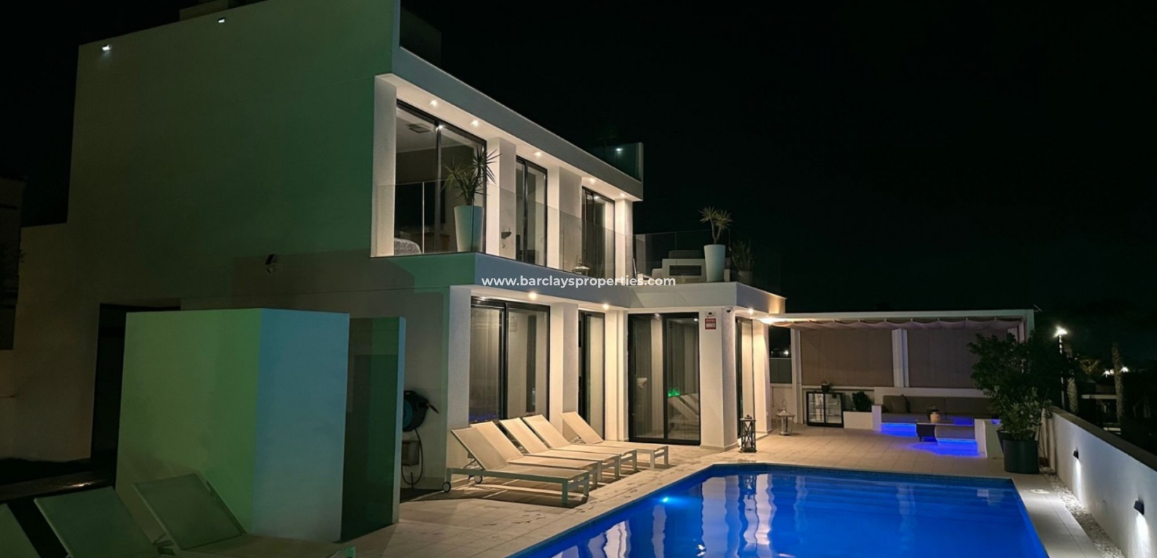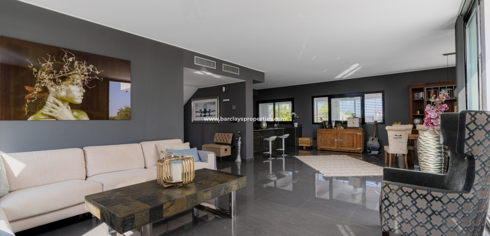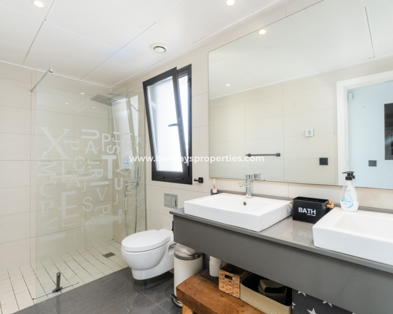 Ubicada en la codiciada Urbanización La Marina, esta exquisita villa se encuentra ➡️ en una generosa parcela de 500 m² y ofrece 7 amplios dormitorios y 4 baños, combinando a la perfección lujo y confort. La luminosa cocina de concepto abierto, junto con el comedor y la sala de estar, se conecta sin esfuerzo con la terraza exterior, donde una piscina privada y una acogedora zona de estar crean el espacio ideal para el relax y el entretenimiento. En la planta baja hay un baño conveniente, mientras que en la planta superior, tres dormitorios tienen acceso a una amplia terraza, destacando la suite principal con su propio baño en suite. Una terraza en la azotea ofrece ➡️ impresionantes vistas panorámicas, perfectas para desconectar o celebrar reuniones. ➡️ El sótano cuenta con un gran salón adicional, cuatro dormitorios extra, un baño compartido y una zona de lavandería/almacenamiento, ideal para invitados o familia extensa. Un sistema inteligente centralizado controla el aire acondicionado y la calefacción por suelo radiante, garantizando confort durante todo el año. En el exterior, una cocina dedicada, un comedor y exuberantes alrededores realzan el estilo de vida mediterráneo. ➡️ Con un garaje privado en el sótano, amplias terrazas y espacios interiores y exteriores refinados, esta propiedad es una oportunidad excepcional para quienes buscan una vivienda exclusiva en la Costa Blanca.