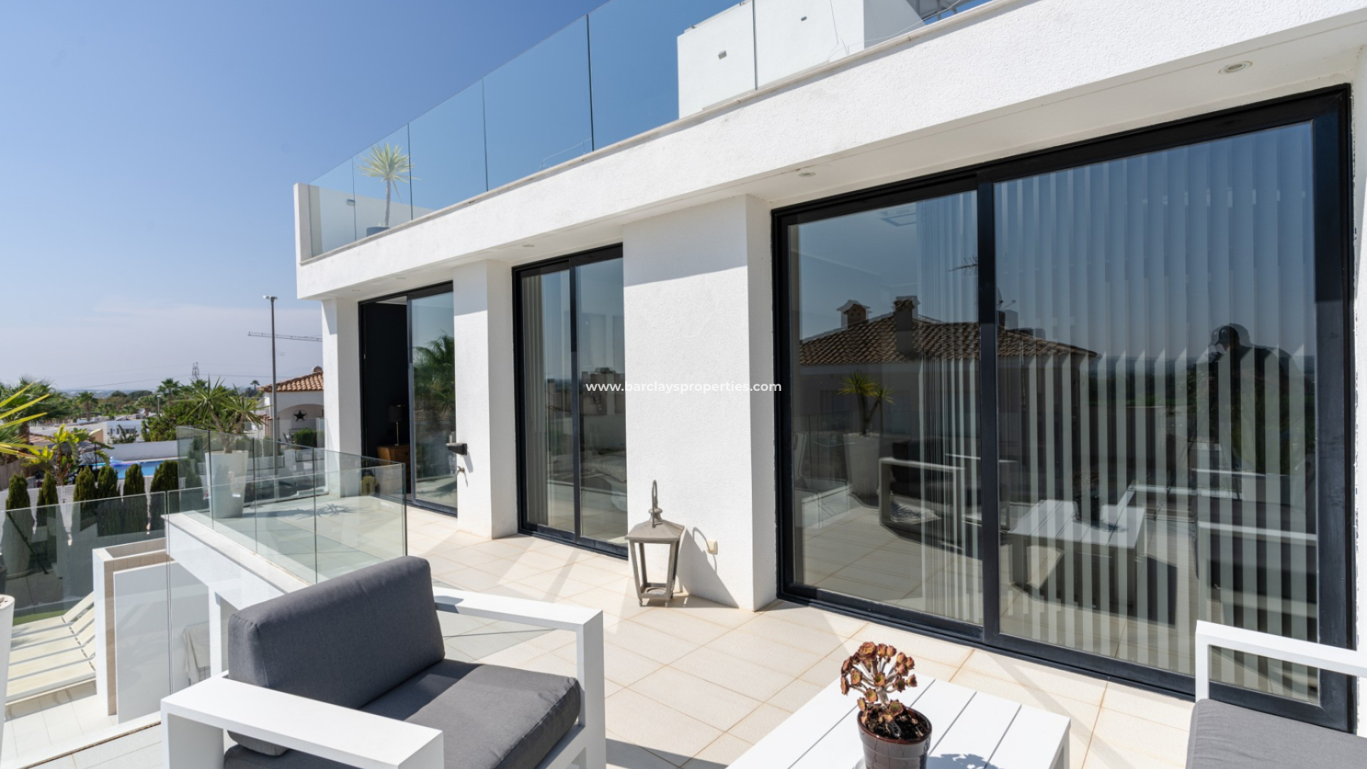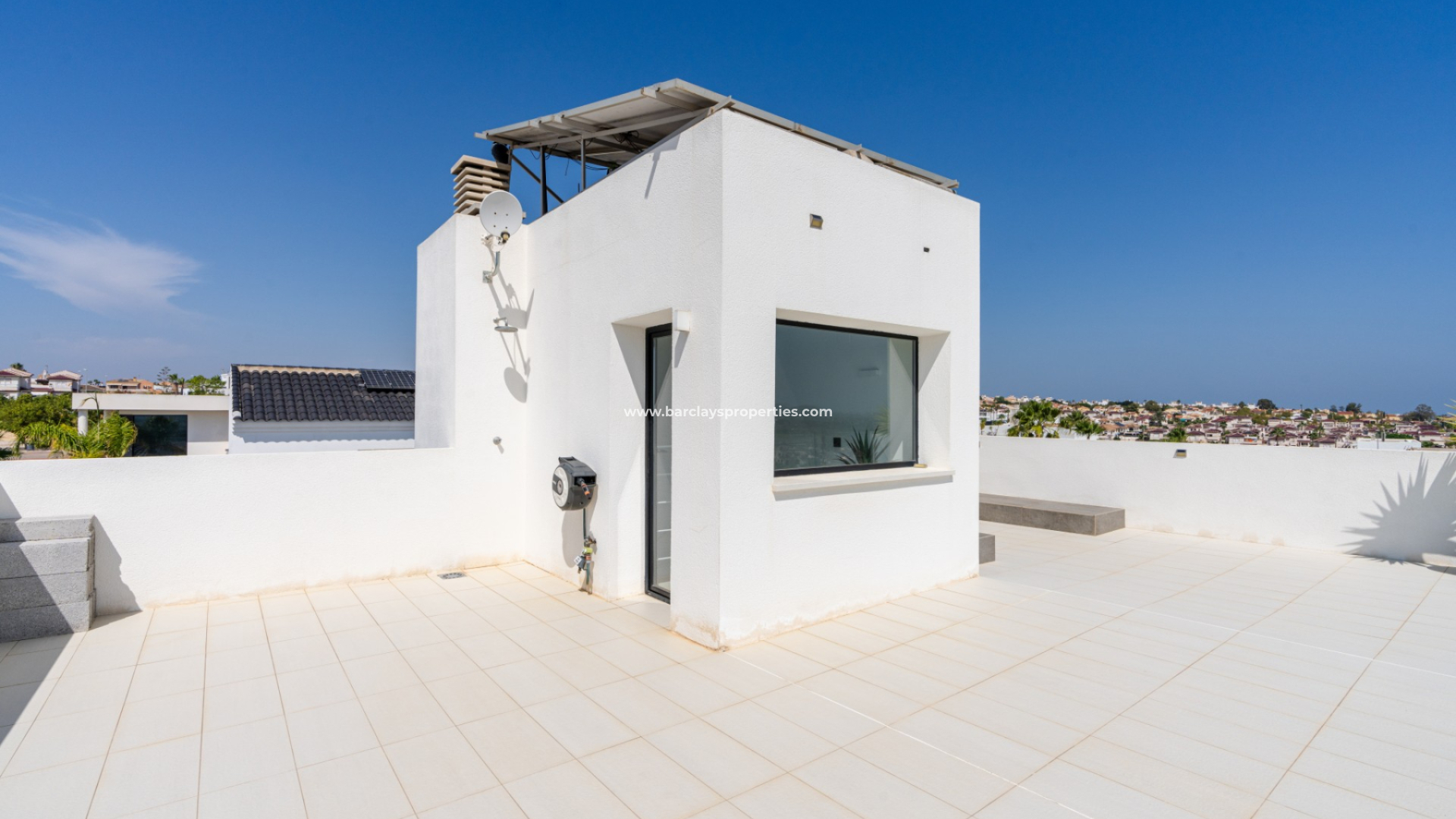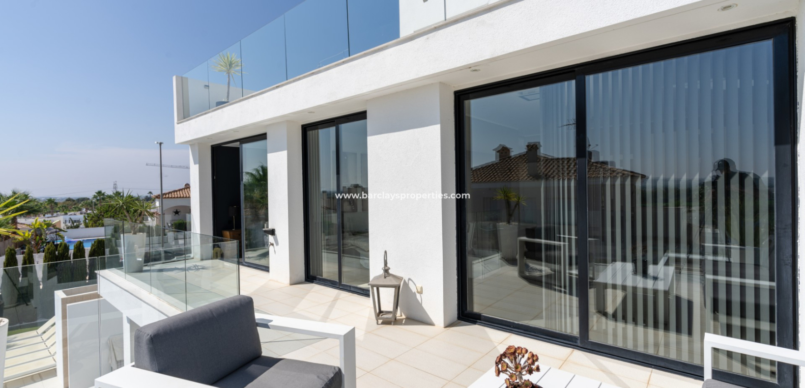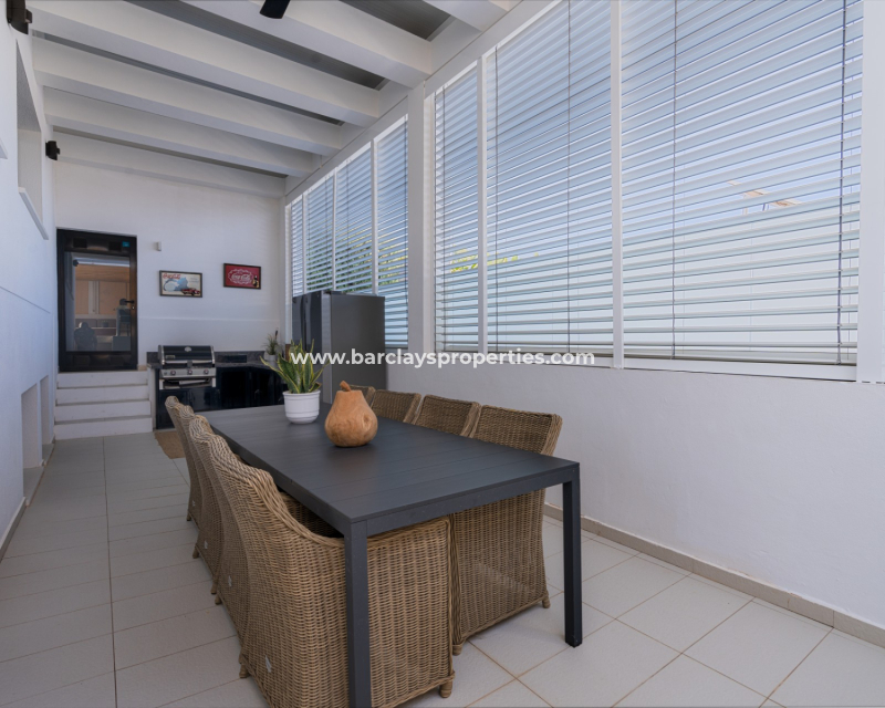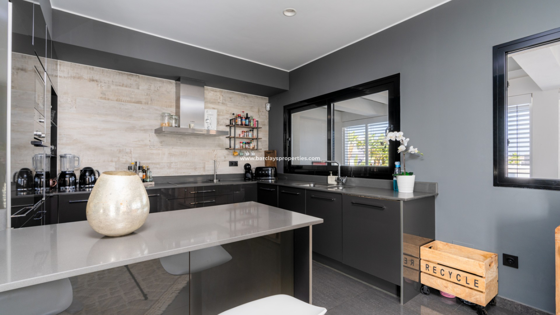 Ubicada en la codiciada Urbanización La Marina, esta exquisita villa se encuentra ➡️ en una generosa parcela de 500 m² y ofrece 7 amplios dormitorios y 4 baños, combinando a la perfección lujo y confort. La luminosa cocina de concepto abierto, junto con el comedor y la sala de estar, se conecta sin esfuerzo con la terraza exterior, donde una piscina privada y una acogedora zona de estar crean el espacio ideal para el relax y el entretenimiento. En la planta baja hay un baño conveniente, mientras que en la planta superior, tres dormitorios tienen acceso a una amplia terraza, destacando la suite principal con su propio baño en suite. Una terraza en la azotea ofrece ➡️ impresionantes vistas panorámicas, perfectas para desconectar o celebrar reuniones. ➡️ El sótano cuenta con un gran salón adicional, cuatro dormitorios extra, un baño compartido y una zona de lavandería/almacenamiento, ideal para invitados o familia extensa. Un sistema inteligente centralizado controla el aire acondicionado y la calefacción por suelo radiante, garantizando confort durante todo el año. En el exterior, una cocina dedicada, un comedor y exuberantes alrededores realzan el estilo de vida mediterráneo. ➡️ Con un garaje privado en el sótano, amplias terrazas y espacios interiores y exteriores refinados, esta propiedad es una oportunidad excepcional para quienes buscan una vivienda exclusiva en la Costa Blanca.
