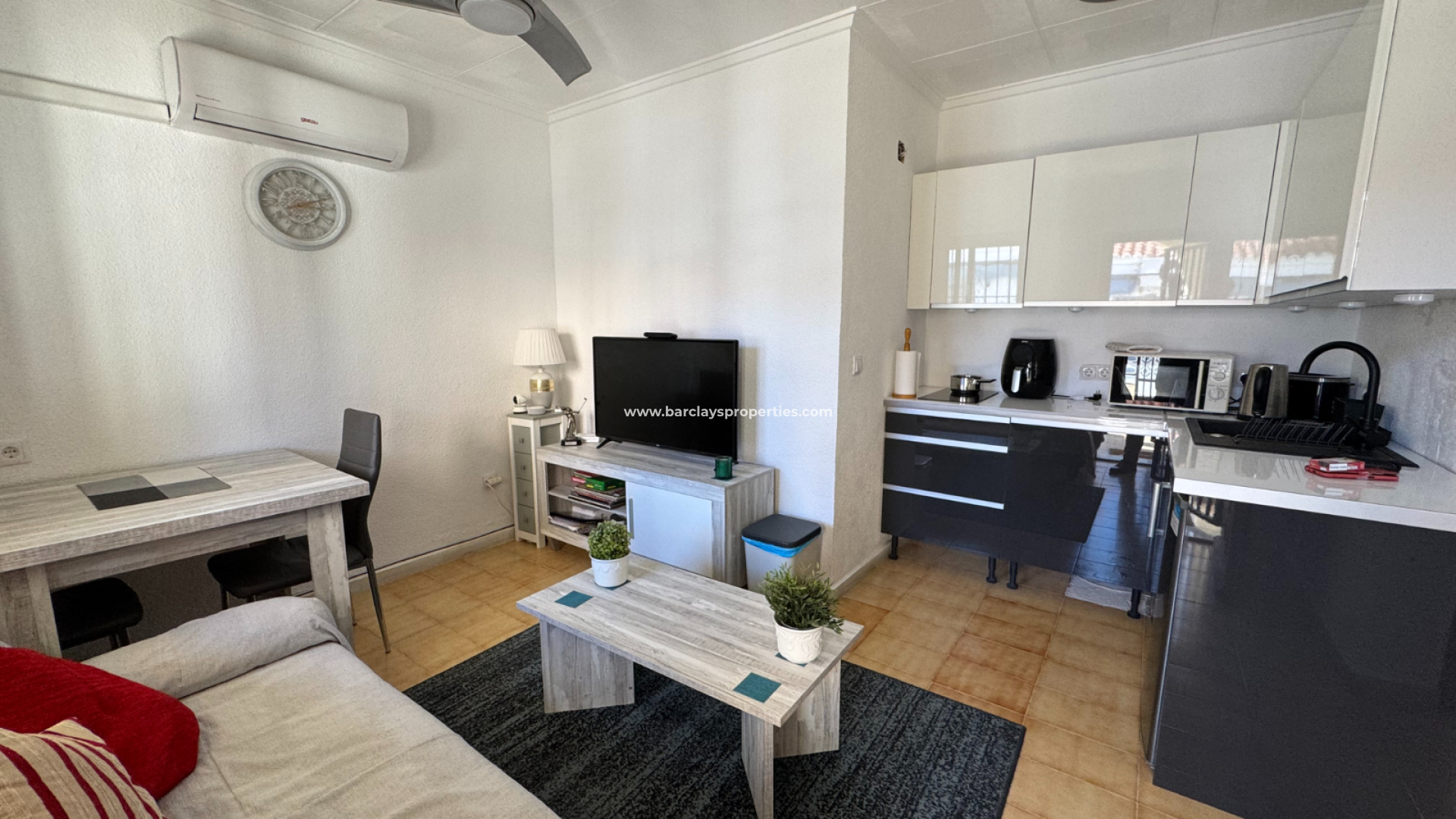 Este ➡️bungalow orientado al sur en venta en La Marina disfruta de sol durante todo el día. Ofrece una terraza elevada en la parte delantera con acceso a la propiedad, donde encontrará una amplia sala de estar con una cocina moderna recientemente renovada, dos dormitorios, un ➡️baño completamente reformado y una zona de almacenamiento.
