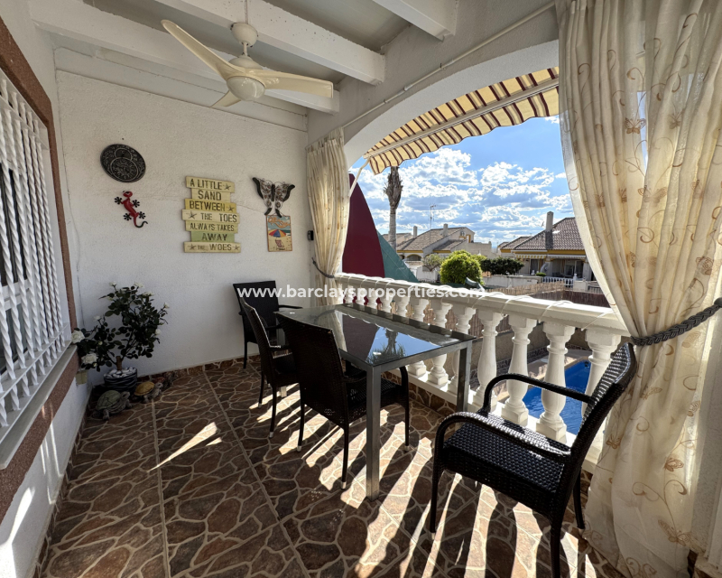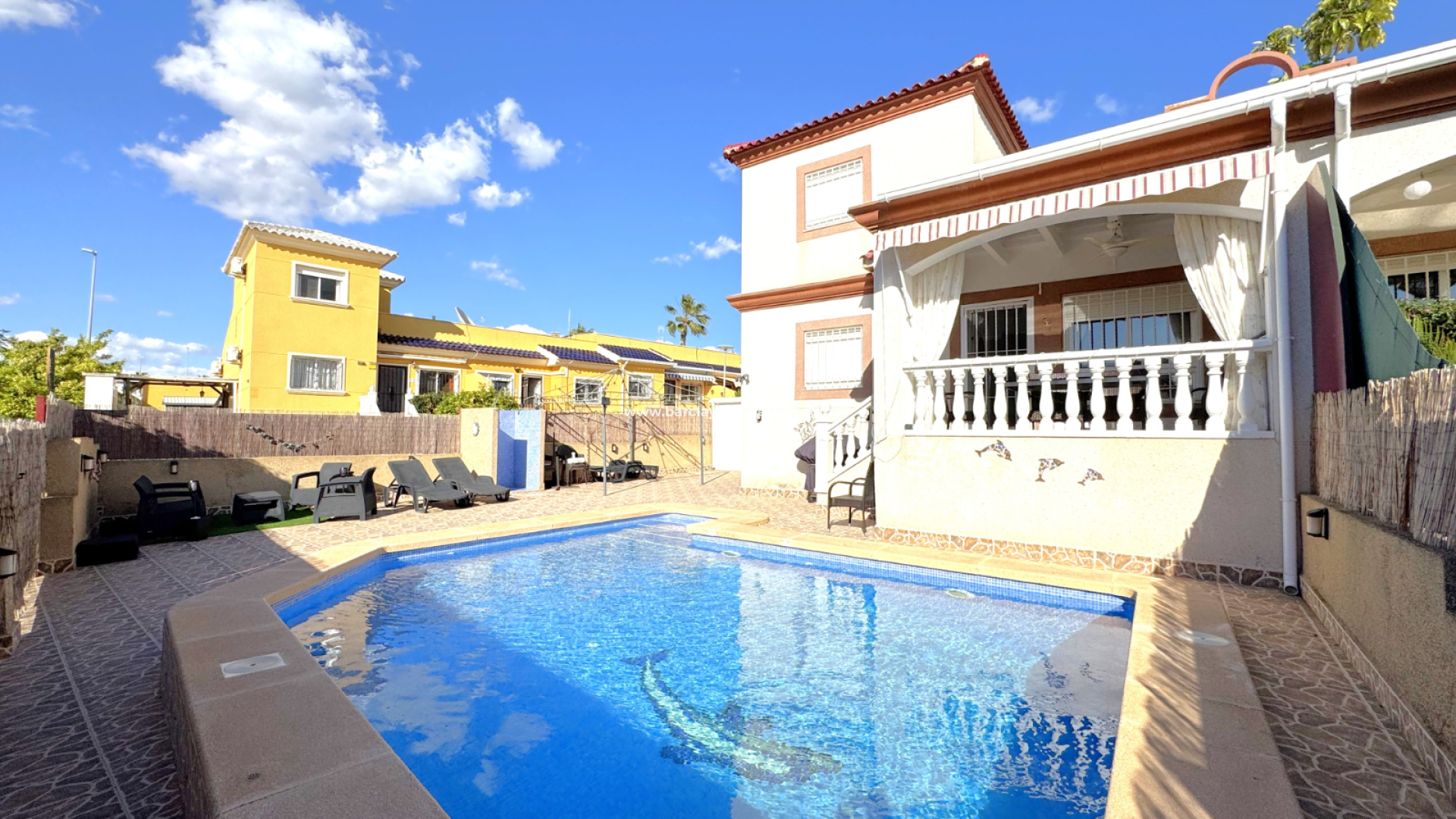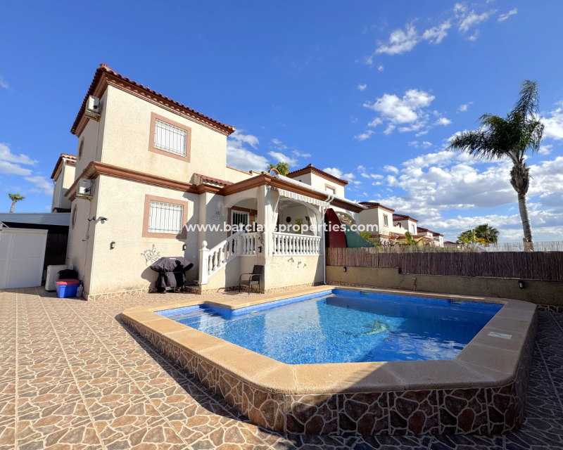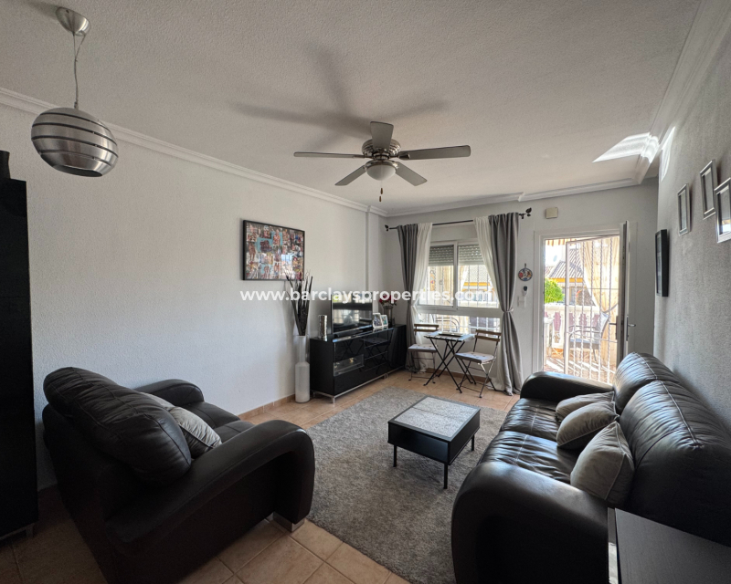 Ubicada en la deseada Urbanización La Marina, esta encantadora villa cuádruple de dos pisos ofrece el equilibrio perfecto entre confort y comodidad. Con 73 m² de espacio habitable, tres dormitorios y dos baños, ofrece un entorno ideal tanto para uso personal como para oportunidades de alquiler.