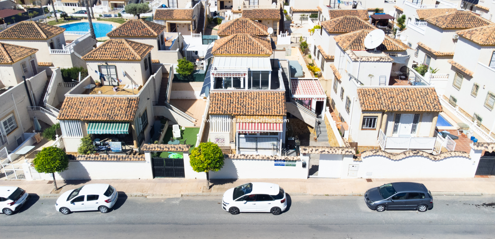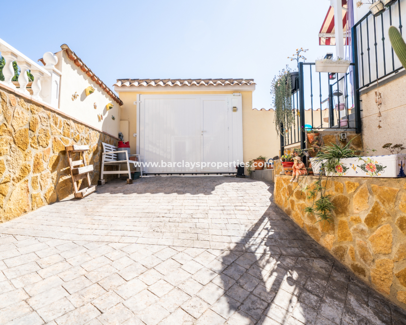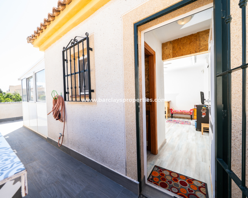 Esta villa independiente bien cuidada, conocida como modelo “Sierra Villas”, está ubicada en la codiciada urbanización de La Marina, a solo cinco minutos a pie de la animada “Plaza Consum”, donde encontrarás tiendas, restaurantes y servicios locales, todo a poca distancia de tu hogar. La playa también está convenientemente cerca, a solo cinco minutos en coche, y el Aeropuerto de Alicante se encuentra a solo 25 minutos.