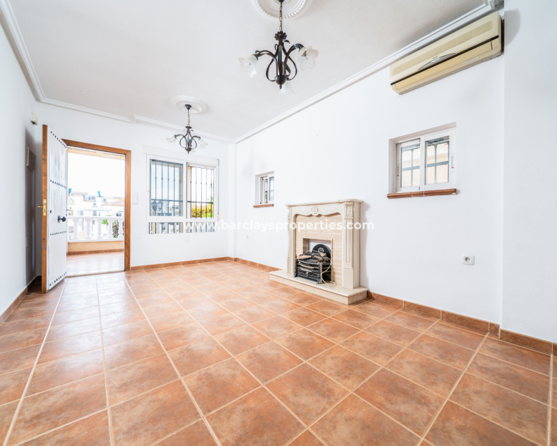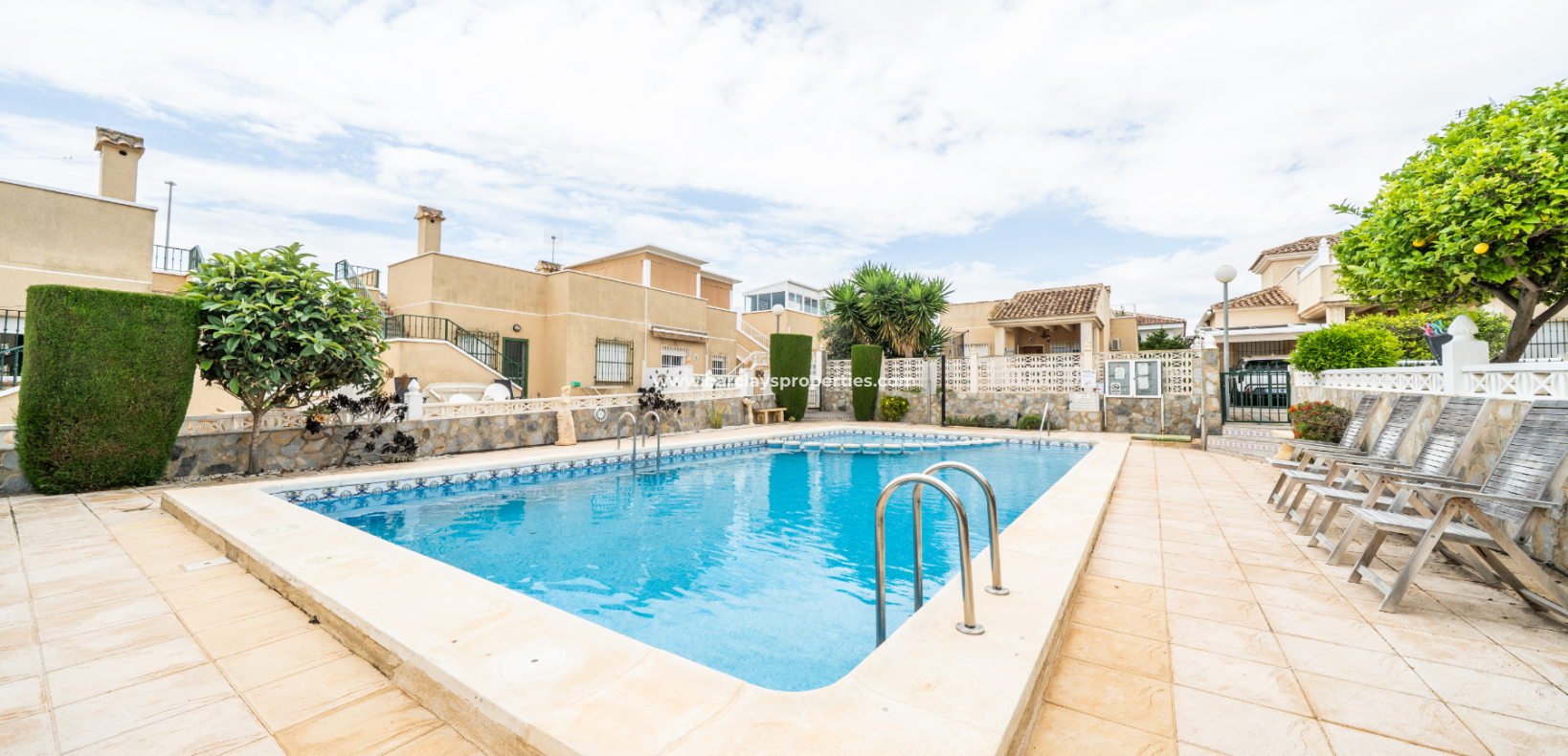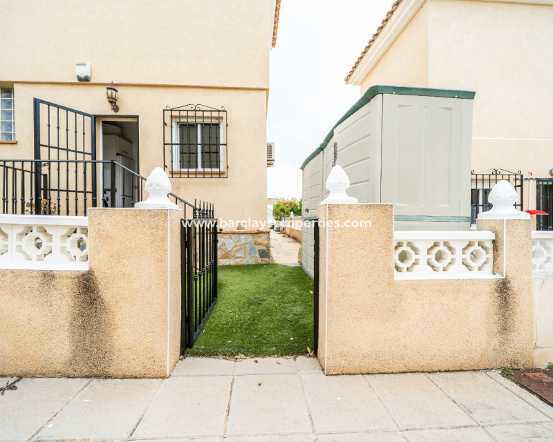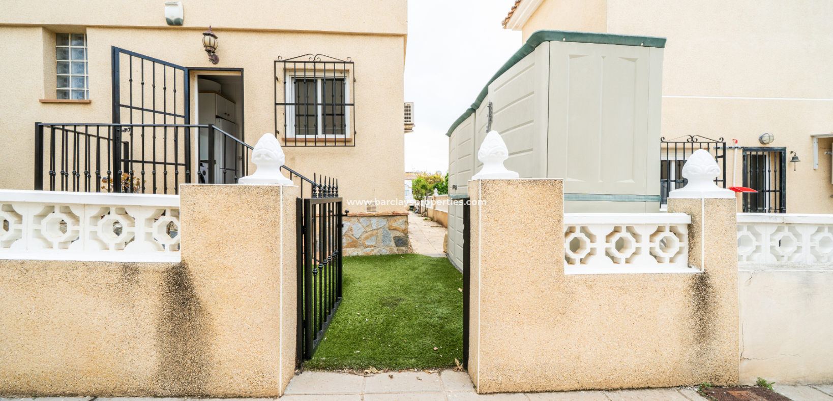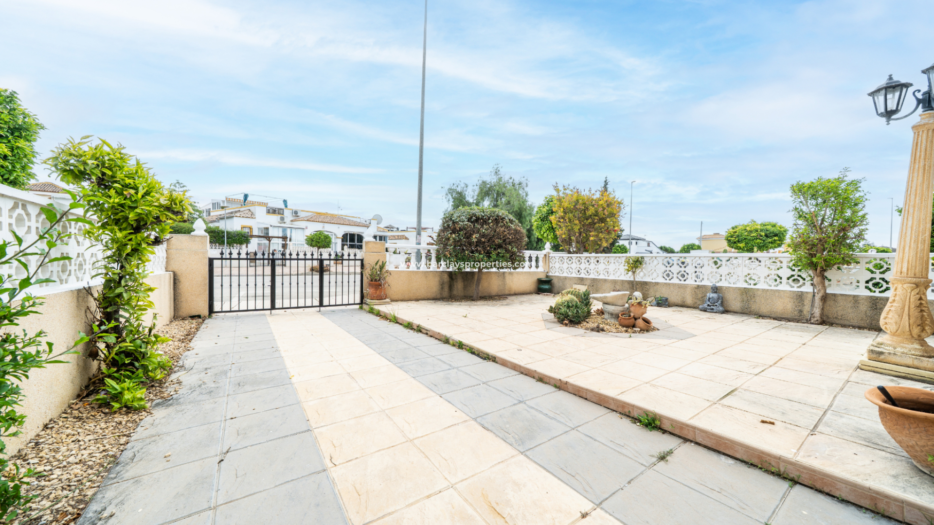 La vivienda forma parte de una comunidad que cuenta con ✅acceso a una piscina comunitaria bien mantenida y tiene potencial para construir una piscina privada. El jardín está completamente pavimentado, ofreciendo aparcamiento privado fuera de la calle y una terraza cubierta en la parte frontal que conduce al interior de la villa.