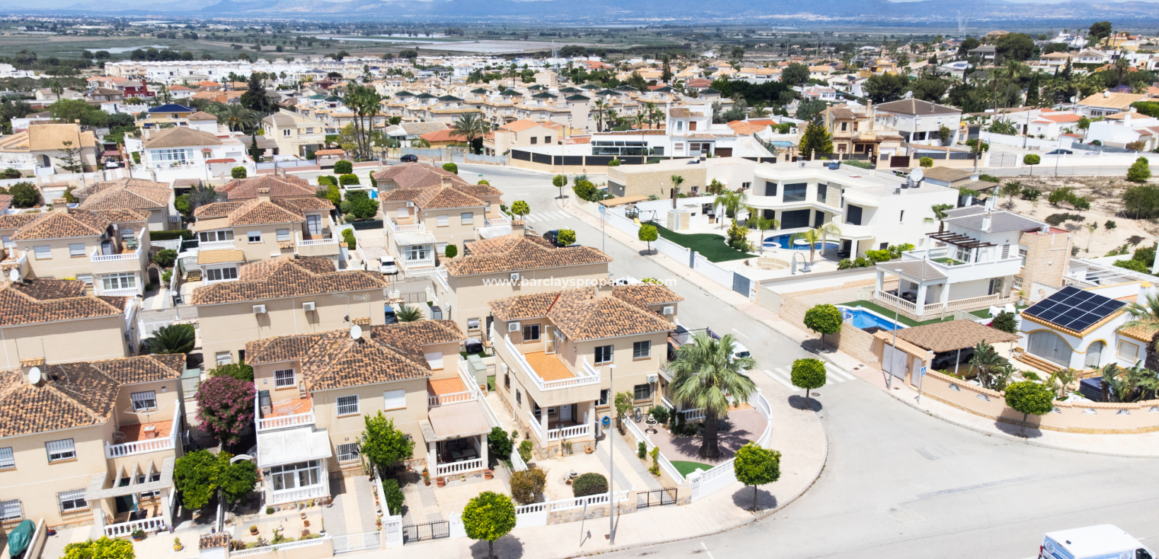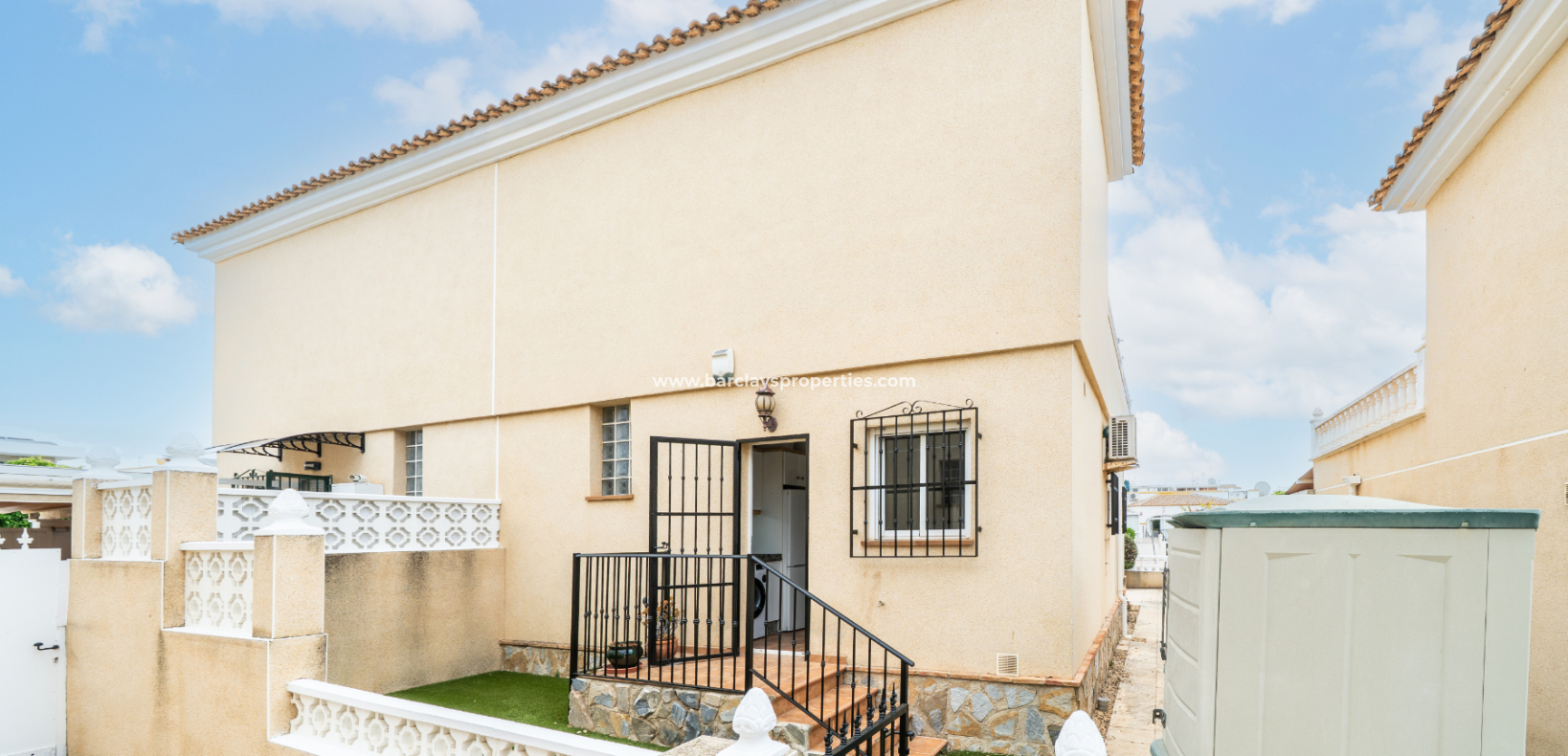 Esta hermosa villa adosada, modelo "Pinewood Valley", ofrece confort, espacio y comodidad en la codiciada urbanización de La Marina. Idealmente ubicada a solo ✅5 minutos a pie de servicios locales, bares y restaurantes, a solo 5 minutos de la playa y a 25 minutos del aeropuerto de Alicante, la propiedad es una fantástica residencia permanente o una escapada vacacional.