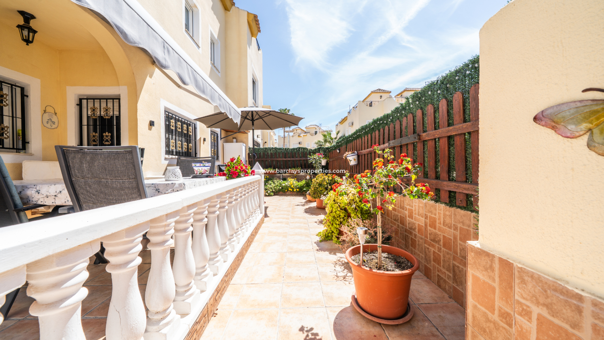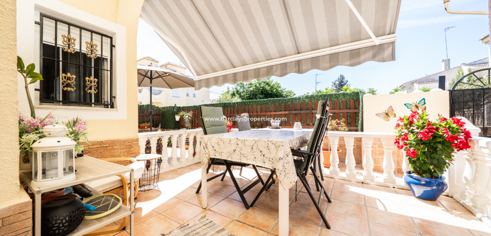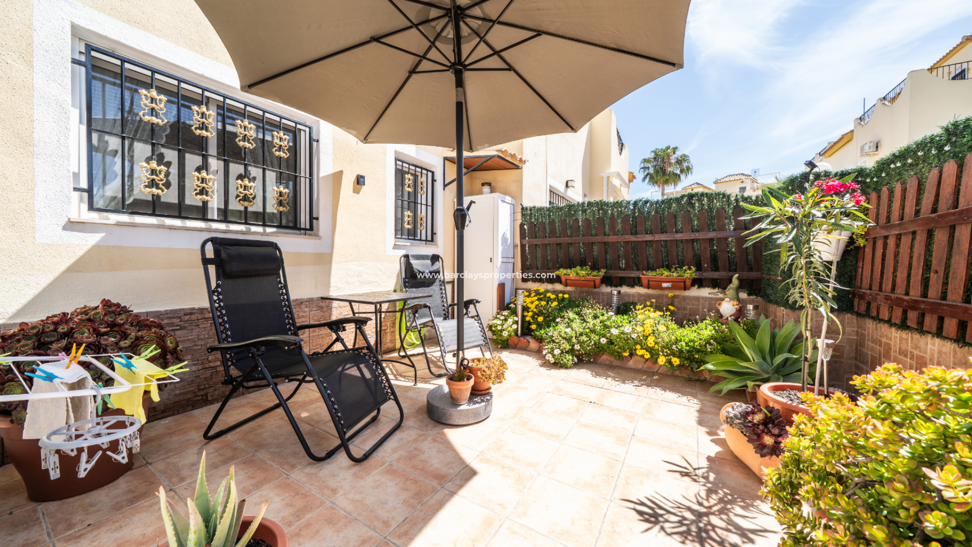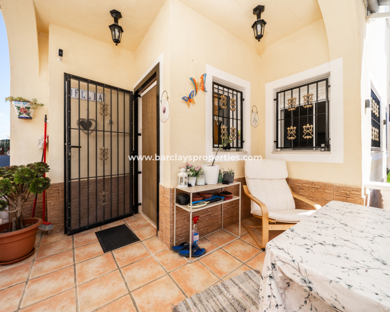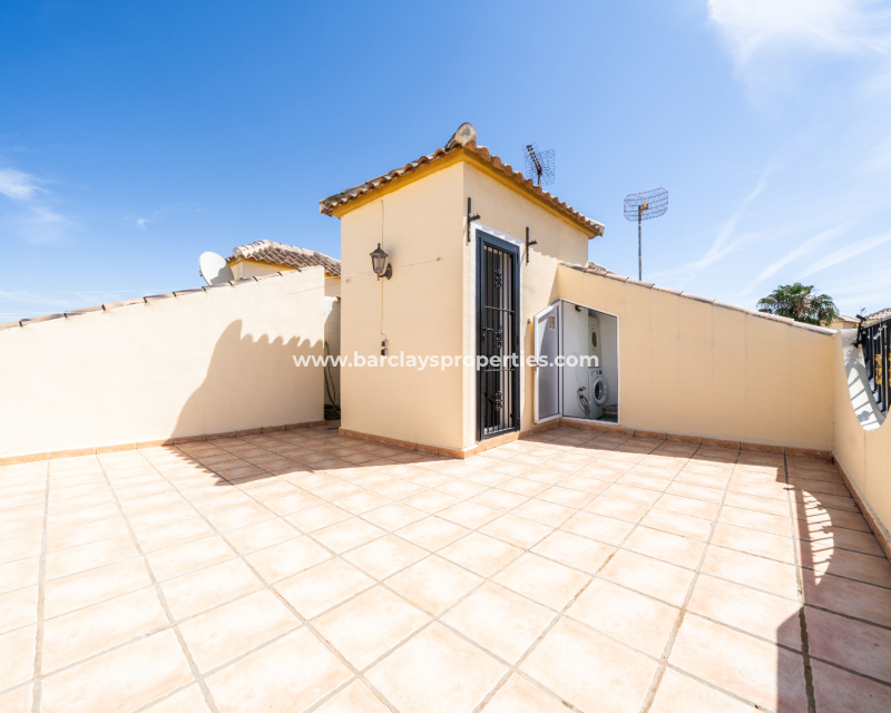 Ubicada en una comunidad amigable, esta villa quad bien presentada, un modelo conocido como (Isla Cristina), se encuentra en Urb. El Oasis, a solo 5 minutos a pie de los servicios cercanos de la Urbanización La Marina, a 5 minutos en coche de la playa y a solo 25 minutos del Aeropuerto de Alicante. Esta villa quad bellamente presentada ➡️ permite a los residentes el acceso a la piscina comunitaria, que se encuentra cerca de la propiedad en el corazón de la comunidad, y está protegida con un sistema de entrada mediante código para la seguridad de su familia. Esta fabulosa villa tiene una construcción de 93m2 y 81m2 de superficie habitable.