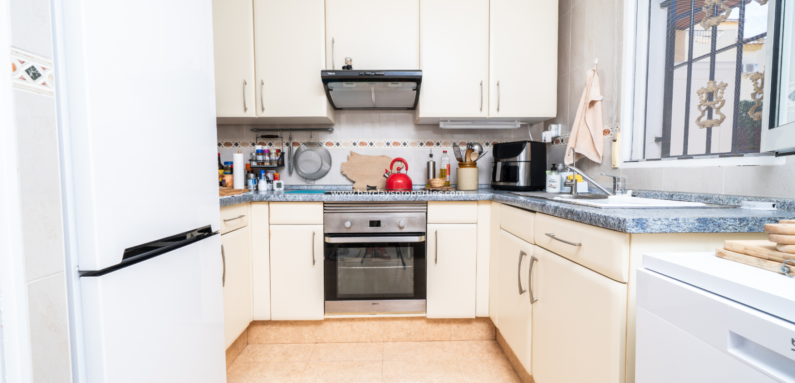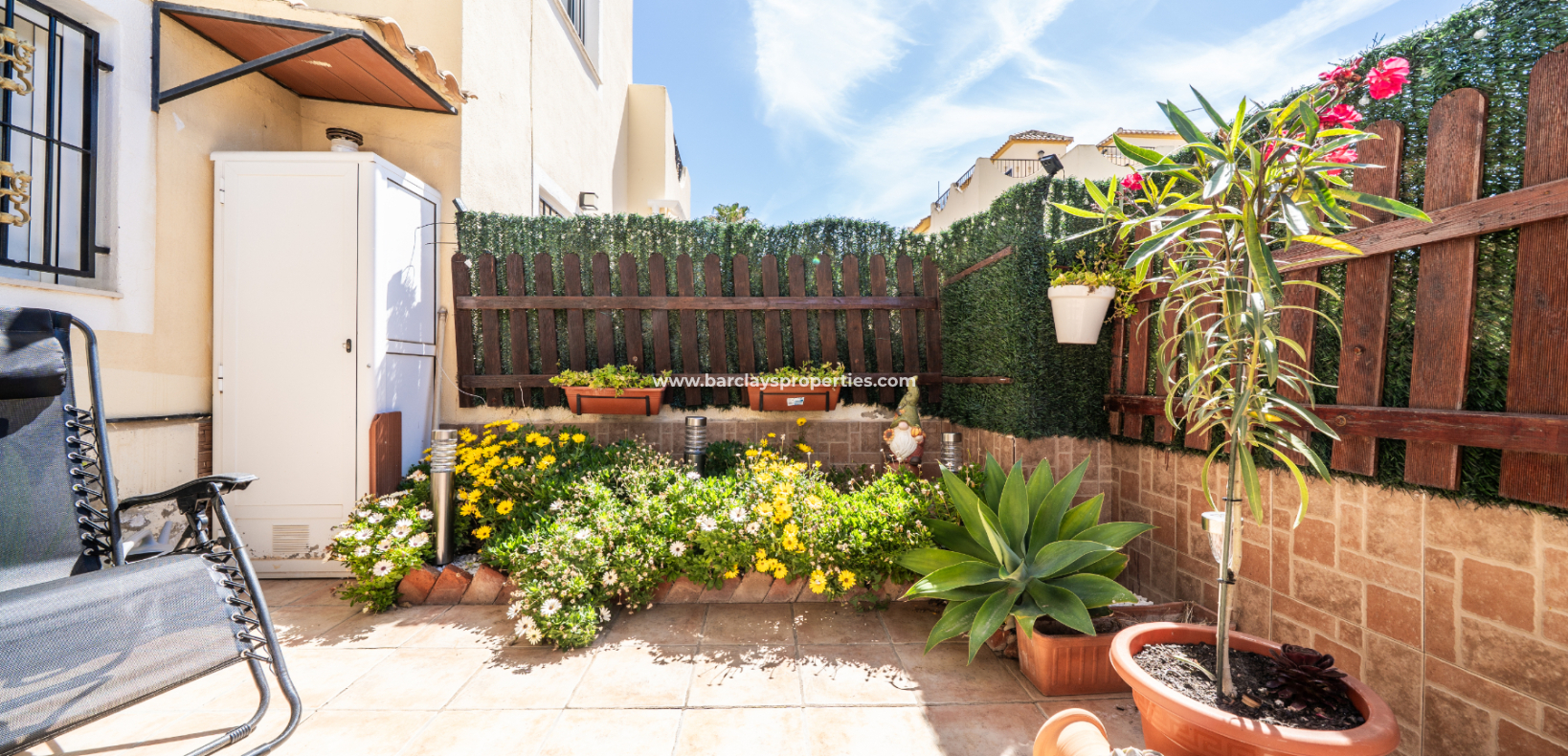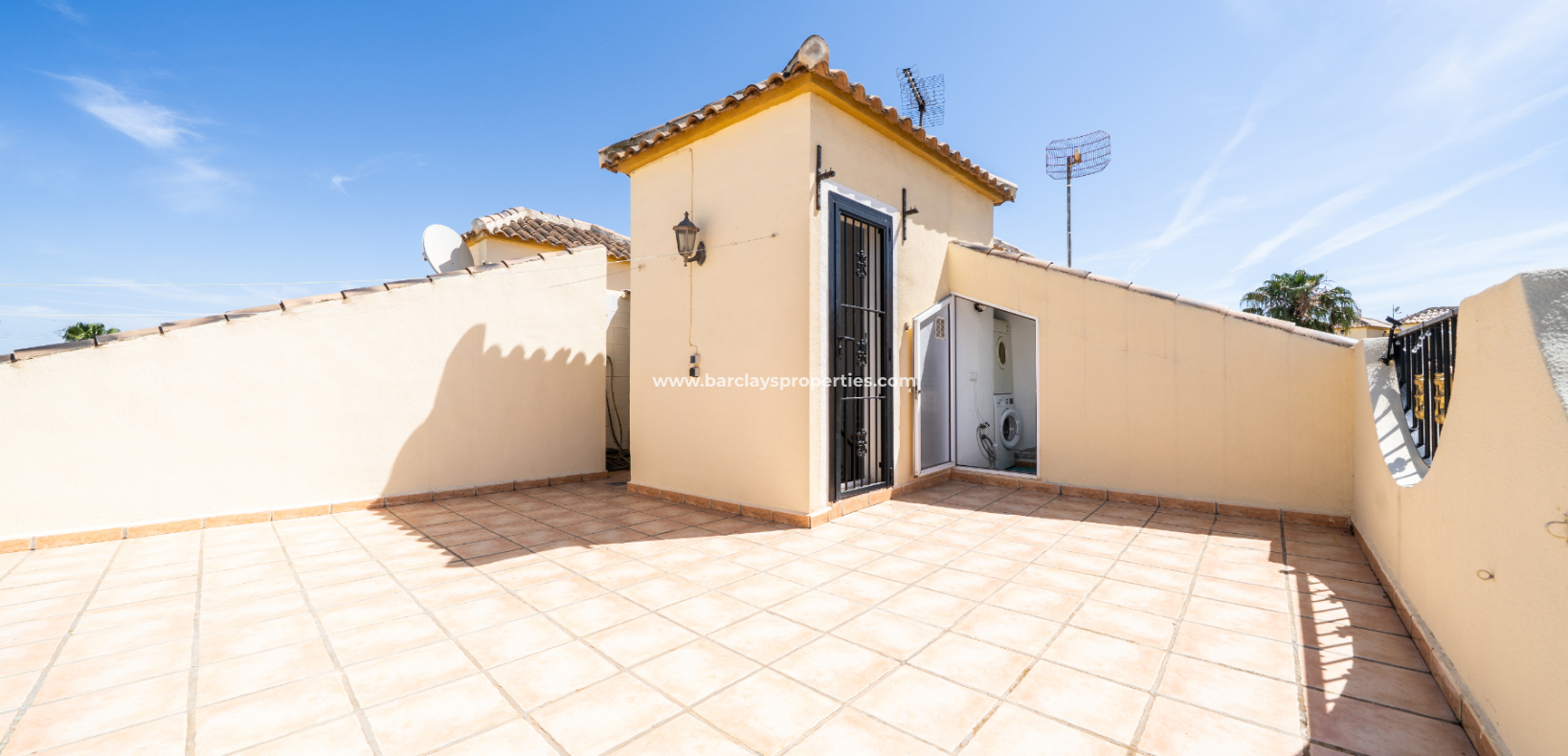Ubicada en una comunidad amigable, esta villa quad bien presentada, un modelo conocido como (Isla Cristina), se encuentra en Urb. El Oasis, a solo 5 minutos a pie de los servicios cercanos de la Urbanización La Marina, a 5 minutos en coche de la playa y a solo 25 minutos del Aeropuerto de Alicante. Esta villa quad bellamente presentada ➡️ permite a los residentes el acceso a la piscina comunitaria, que se encuentra cerca de la propiedad en el corazón de la comunidad, y está protegida con un sistema de entrada mediante código para la seguridad de su familia. Esta fabulosa villa tiene una construcción de 93m2 y 81m2 de superficie habitable.