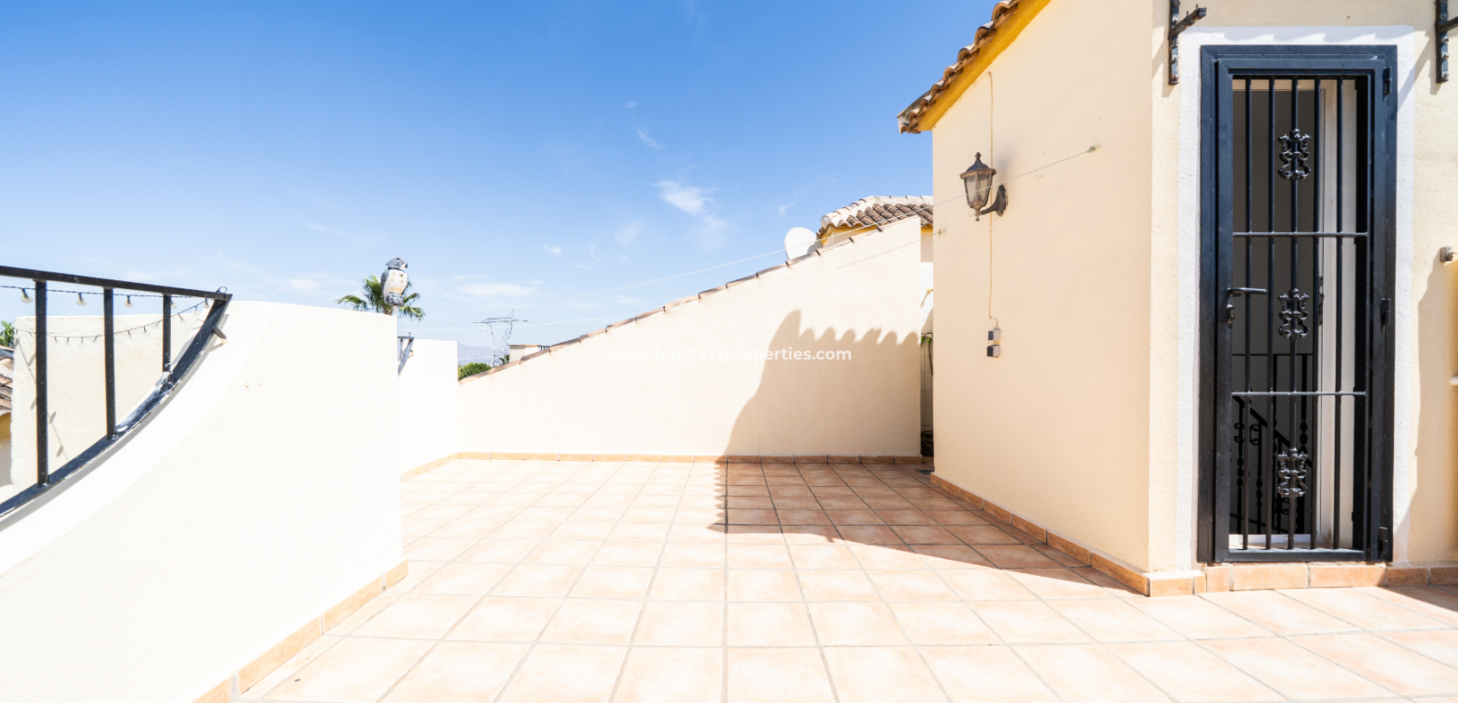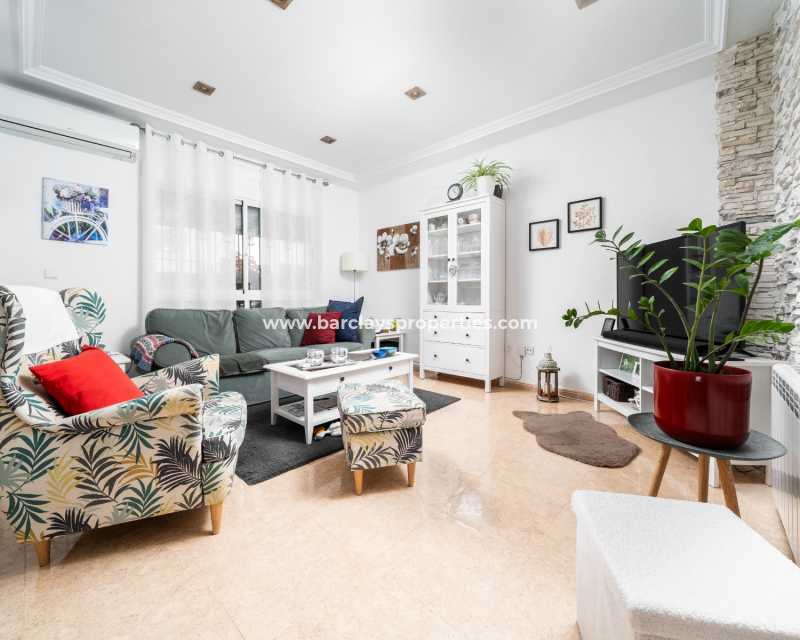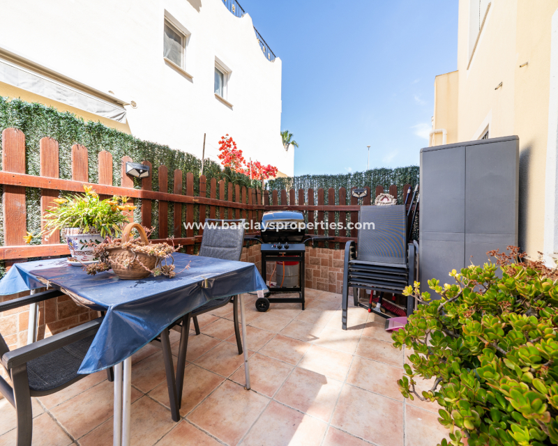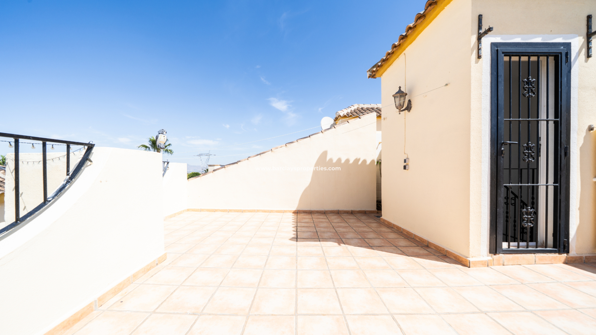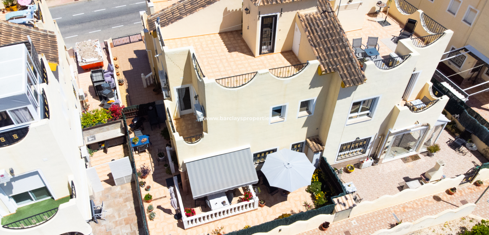 Ubicada en una comunidad amigable, esta villa quad bien presentada, un modelo conocido como (Isla Cristina), se encuentra en Urb. El Oasis, a solo 5 minutos a pie de los servicios cercanos de la Urbanización La Marina, a 5 minutos en coche de la playa y a solo 25 minutos del Aeropuerto de Alicante. Esta villa quad bellamente presentada ➡️ permite a los residentes el acceso a la piscina comunitaria, que se encuentra cerca de la propiedad en el corazón de la comunidad, y está protegida con un sistema de entrada mediante código para la seguridad de su familia. Esta fabulosa villa tiene una construcción de 93m2 y 81m2 de superficie habitable.